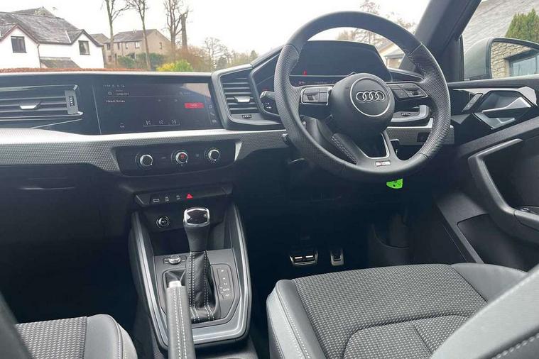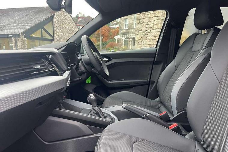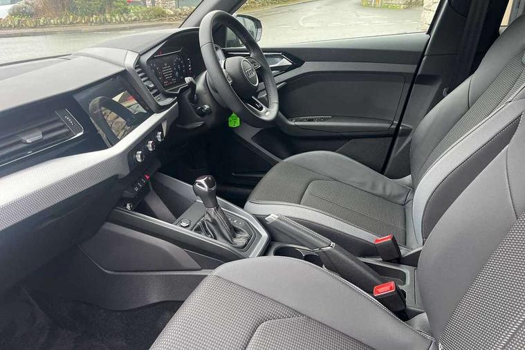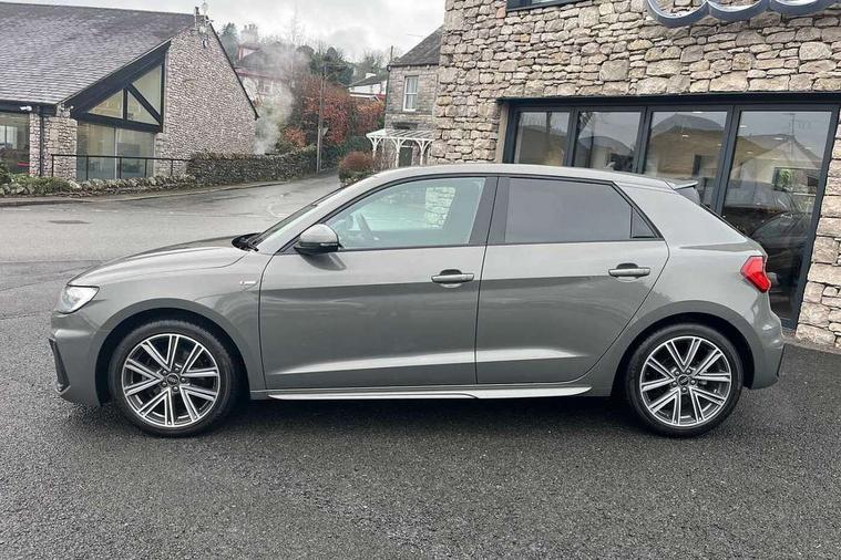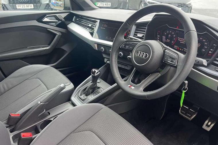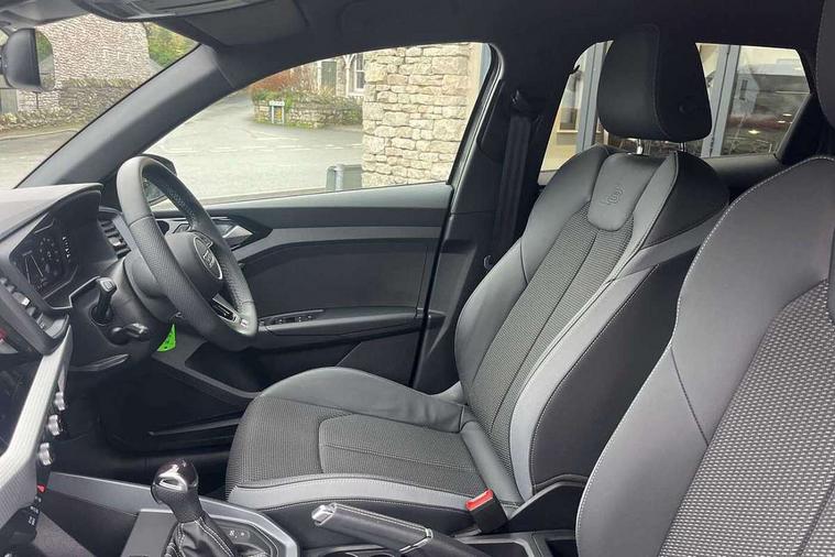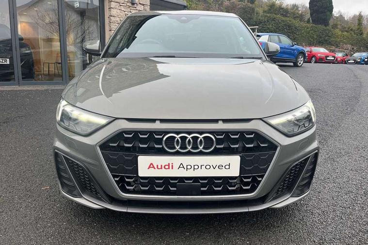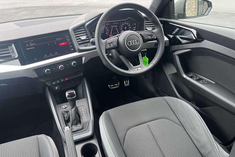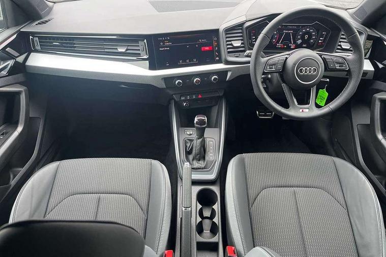 10.25" Digital instrument cluster display classis style instrument dials + speed, odometer, time, outside temperature, telephone menu + fuel level warning, Audi drive select - power steering assistance + engine + gear shift 3 preset modes (auto, dynamic, efficiency and an Individual mode), Audi smartphone interface with connect compatible smartphone via USB directly MMI display + Nav, music, third party apps controlled via MMI controller, Automatic start/stop system, Bluetooth interface, Cruise control, Driver's information system, Electromechanical power steering, Emergency e-call, Lane departure warning system, Rear parking sensor, Service interval indicator, Speed limiter, Voice control system, Washer fluid level indicator, Sports suspension, 2 x USB type C connection points, 6 passive loudspeakers, DAB Digital radio, MMI radio plus with 10.1" colour MMI display screen and MMI touch, Auto dimming rear view mirror, Body coloured door mirrors, Door sills with aluminium inlays and S Line logo, Electric front and rear windows, Electrically adjustable, heated, folding door mirrors with integrated LED side indicator, Front side air inlets in grained matt black and C frame in anthracite black, Heat insulating glass windscreen and side windows, Heated rear windscreen, High level LED brake light, LED headlights with LED rear lights + dynamic rear indicators + headlight adjustment and high beam, turning light + LED daytime running lights, Privacy glass, Radiator grille and rear diffuser in matt anthracite black, Radiator protective grille frame in matt aluminium silver, Rain and light sensors, Rear fog lights, Rear side wing doors, Rear wiper, S line badges on front wings, Side front spoiler lips in grained matt black, 12V socket in centre console with two cup holders, 3 rear seats with headrests, 3 seat bench in 2nd row, 3 spoke leather multi-function plus steering wheel features S badging and grips in perforated leather with contrast stitching, 40:60 Split folding rear seat or folded fully, Black cloth headlining, Driver and passenger seat with manual height adjust with forward and backwards adjustment, Front and rear black floor mats with contrast stitching in fine silver, Front head restraints, Front passenger seat, Height and reach adjustable steering wheel, ISOFIX child seat mounting for front passenger and outer rear seats including top tether attachment point of outer rear seats, Leather gear knob with aluminium trim, Leather handbrake grip, Luggage compartment light with front and rear reading lights, Manual air conditioning, Manually adjustable lumbar support in front seats, Stainless steel pedals, LED interior lighting pack - A1, Luggage compartment pack - A1, S line exterior styling pack - A1 Sportback, 3x3 point rear seatbelts, Audi pre-sense front with pedestrain and cyclist recognition, Brake assist function, Driver and front passenger airbag with front side and head airbags, Electronic Stability Control including ABS, EBD, ASR and EDL, Front passenger airbag deactivation switch, Hill hold assist, Manual rear child locks, Seatbelt height adjustment for front seats, Seatbelt monitoring, Tyre pressure warning light, Warning triangle and first aid kit, Anti theft alarm, Anti theft wheel bolts and loose wheel warning, Immobiliser, Remote central locking with 2 foldaway keys, Aluminium trim for control switches, air vents and digital instrument cluster, Black dashboard, Silver grey inlays polygon structure in diamond paint finish, Structured grey accent areas including air vents, door handle recesses and centre console in quartz paint finish,
