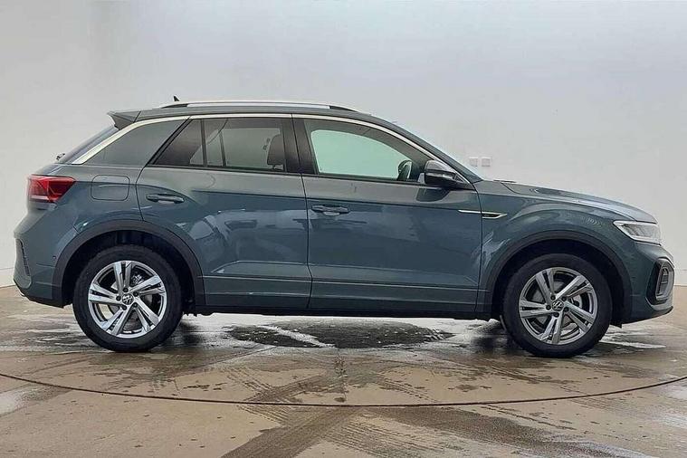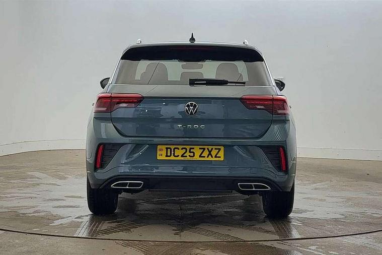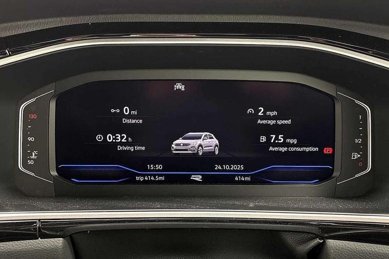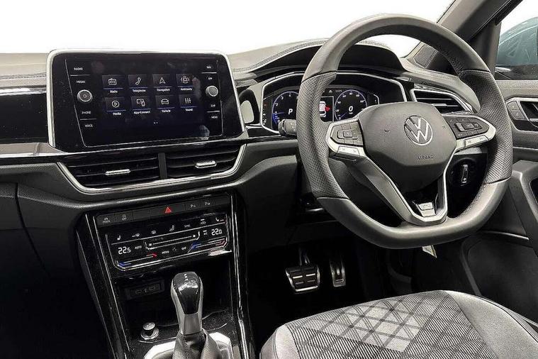 10.25" Digital cockpit pro, Advanced driver attention and drowsiness monitor, Emergency call service, Lane keeping system Lane Assist, Mobile phone interface, Modified key software - reduce switch off time for key status change to Long no motion, Online services, Park assist including front and rear parking sensors, Service interval indicator, Tailgate/trunk lid release from outside, Think blue trainer driver tips and journey analysis, Warning sound and light for front seatbelts unfastened, Wireless app connect, Battery regeneration during braking, Start/stop function with battery regeneration, DAB Digital radio, Diversity antenna for FM reception, Front and rear 6 speakers, Music playback - MP3, WMA and AAC files, Premium USB cable in choice of either Apple or Android smartphone compatibility, SD card slot, Simultaneous pairing of 2 compatible mobile devices, Title and cover art display, We Connect and We Connect Plus functionality, Auto dimming interior rear view mirror, Automatic hazard lights activation under emergency braking, Automatic headlight control with LED separate daytime running lights with coming/leaving home function, Body coloured exterior mirror housings and door handles, Electrically adjustable and heated door mirrors, Extended roof spoiler, Exterior mirrors aspherical on driver side, convex on front passenger side, External USB type C socket and charging sockets, Front windscreen wiper with intermittent wipe and 4 position delay, Heated rear window, LED 3rd brake light, LED rear combination lamps, LED rear number plate lights, Power windows with comfort operation and circuit breaker, Privacy glass for rear side windows and rear window, R-Line design body coloured bumpers, Rain sensor, Rear exhaust tailpipe, Rear fog light on one side and reversing lights on both sides, Rear side wing doors, Rear wash/wipe with intermittent wipe setting, Remote electrically foldable door mirrors, puddle lights and reverse activated passenger's door mirror, 12V power socket in centre console, 3 rear head restraints, 3 seat bench in 2nd row, 4 load lashing points in luggage compartment, Air care climatronic air conditoning system with active combination filter and 2-zone temperature control, Black roof lining, Chrome plated decorative trims, Chrome plated radiator grille inserts, air vent surrounds and light switch surrounds, Door and side trim panel with leatherette insert, Front + rear carpet mats, Front centre armrest, Front cupholders x 2, Front footwell illumination, Front reading light, Front scuff plates with R Line logo, Front seat back storage pockets, Glove compartment door with light, Instrument lighting, white adjustable panel illumination, Interior ambient lighting and surround lighting, Interior light delay, Isofix child seat preparation, Leather gearshift handle, Load-through provision with cup holder when folded down ('Unsplit rear seat bench, split folding backrest, with centre armrest), Luggage compartment lighting, Single front passenger seat, Stainless steel pedals, Storage compartment in left and right luggage area, Storage compartment in rear doors, Storage compartments in driver and front passenger doors, Sunvisors with illuminated vanity mirrors, Variable boot floor, height adjustable and removable, Driver assistance pack without proactive passenger protection - T-Roc, 3 point height adj front seatbelts + pretensioners, 3 point seatbelts in outer rear with ECE label, ABS, Child locks on rear doors, City emergency braking and pedestrian monitoring, Driver and front passenger airbag with front passenger airbag deactivation, Driver and front passenger safety-optimised head restraints, Drivers seatbelt reminder, Electronic parking brake, Electronic Stability Control (ESC) inc EDL (Electronic Differential Lock) and ASR (Traction Control), Front and rear passengers curtain airbag system including front side airbags, Hill start assist, Predictive pedestrian protection, Rear disc brakes, Two tone horn, Tyre pressure loss indicator, Volkswagen roadside assistance, Piano black decorative inserts in dashboard and front door trim panels, Trims for alloy wheels,