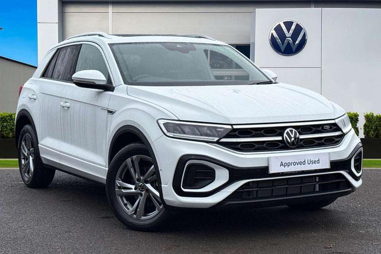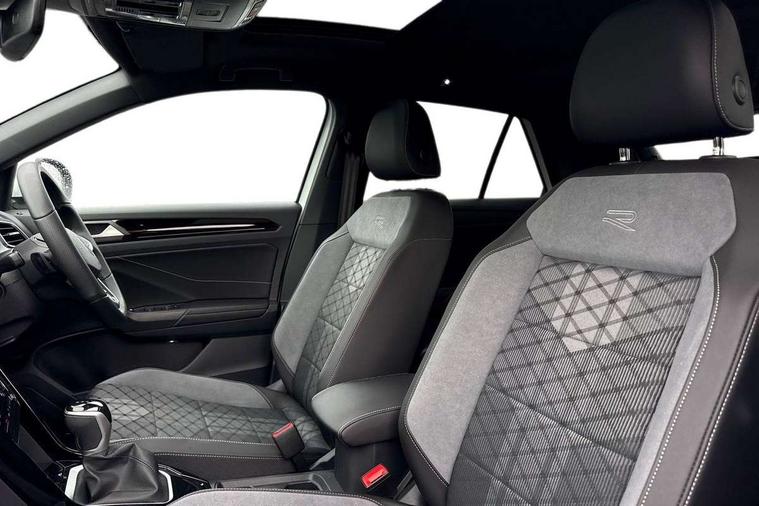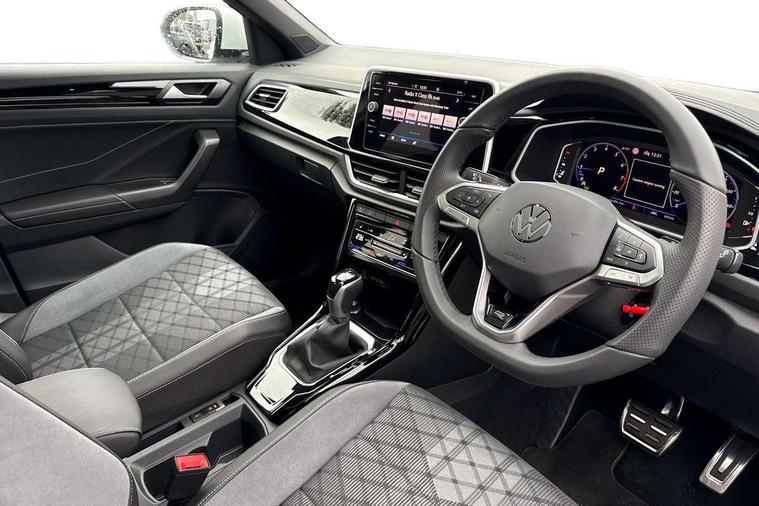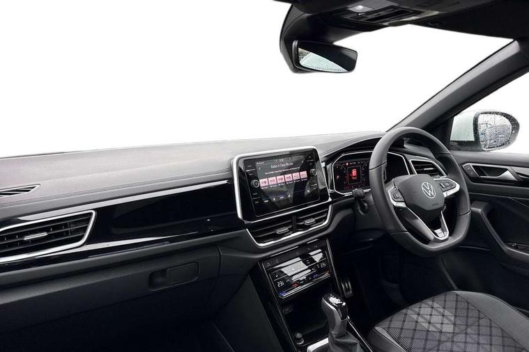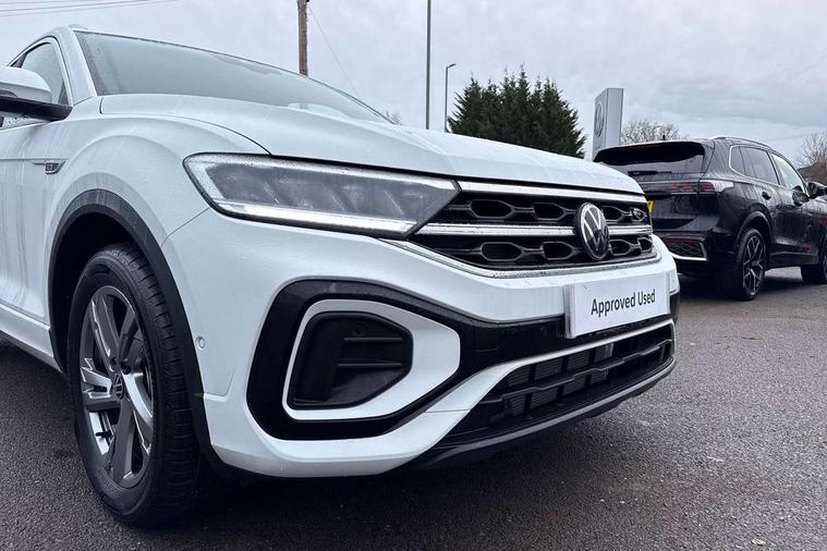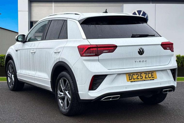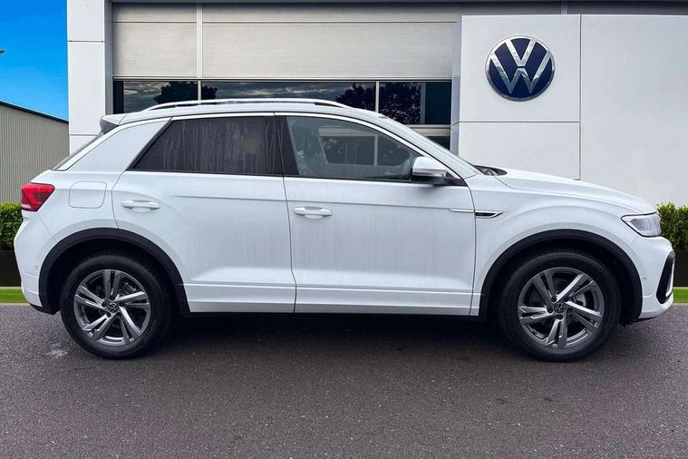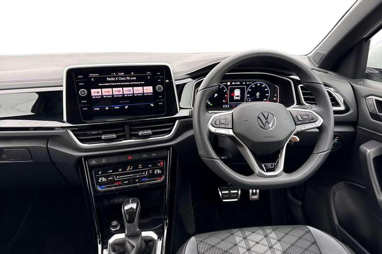 10.25" Digital cockpit pro, Advanced driver attention and drowsiness monitor, Emergency call service, Lane keeping system Lane Assist, Mobile phone interface, Modified key software - reduce switch off time for key status change to Long no motion, Online services, Park assist including front and rear parking sensors, Service interval indicator, Tailgate/trunk lid release from outside, Think blue trainer driver tips and journey analysis, Warning sound and light for front seatbelts unfastened, Wireless app connect, Battery regeneration during braking, Start/stop function with battery regeneration, DAB Digital radio, Diversity antenna for FM reception, Front and rear 6 speakers, Music playback - MP3, WMA and AAC files, Premium USB cable in choice of either Apple or Android smartphone compatibility, SD card slot, Simultaneous pairing of 2 compatible mobile devices, Title and cover art display, We Connect and We Connect Plus functionality, Auto dimming interior rear view mirror, Automatic hazard lights activation under emergency braking, Automatic headlight control with LED separate daytime running lights with coming/leaving home function, Body coloured exterior mirror housings and door handles, Electrically adjustable and heated door mirrors, Extended roof spoiler, Exterior mirrors aspherical on driver side, convex on front passenger side, External USB type C socket and charging sockets, Front windscreen wiper with intermittent wipe and 4 position delay, Heated rear window, LED 3rd brake light, LED rear combination lamps, LED rear number plate lights, Power windows with comfort operation and circuit breaker, Privacy glass for rear side windows and rear window, R-Line design body coloured bumpers, Rain sensor, Rear exhaust tailpipe, Rear fog light on one side and reversing lights on both sides, Rear side wing doors, Rear wash/wipe with intermittent wipe setting, Remote electrically foldable door mirrors, puddle lights and reverse activated passenger's door mirror, 12V power socket in centre console, 3 rear head restraints, 3 seat bench in 2nd row, 4 load lashing points in luggage compartment, Air care climatronic air conditoning system with active combination filter and 2-zone temperature control, Black roof lining, Chrome plated decorative trims, Chrome plated radiator grille inserts, air vent surrounds and light switch surrounds, Door and side trim panel with leatherette insert, Front + rear carpet mats, Front centre armrest, Front cupholders x 2, Front footwell illumination, Front reading light, Front scuff plates with R Line logo, Front seat back storage pockets, Glove compartment door with light, Instrument lighting, white adjustable panel illumination, Interior ambient lighting and surround lighting, Interior light delay, Isofix child seat preparation, Leather gearshift handle, Load-through provision with cup holder when folded down ('Unsplit rear seat bench, split folding backrest, with centre armrest), Luggage compartment lighting, Single front passenger seat, Stainless steel pedals, Storage compartment in left and right luggage area, Storage compartment in rear doors, Storage compartments in driver and front passenger doors, Sunvisors with illuminated vanity mirrors, Variable boot floor, height adjustable and removable, Driver assistance pack without proactive passenger protection - T-Roc, 3 point height adj front seatbelts + pretensioners, 3 point seatbelts in outer rear with ECE label, ABS, Child locks on rear doors, City emergency braking and pedestrian monitoring, Driver and front passenger airbag with front passenger airbag deactivation, Driver and front passenger safety-optimised head restraints, Drivers seatbelt reminder, Electronic parking brake, Electronic Stability Control (ESC) inc EDL (Electronic Differential Lock) and ASR (Traction Control), Front and rear passengers curtain airbag system including front side airbags, Hill start assist, Predictive pedestrian protection, Rear disc brakes, Two tone horn, Tyre pressure loss indicator, Volkswagen roadside assistance, Piano black decorative inserts in dashboard and front door trim panels, Trims for alloy wheels,