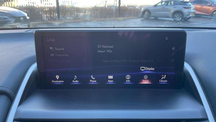 Mark Levinson premium surround sound system with 14 speakers, Space saver spare wheel, 2 x remote key fobs, Anti-theft system with siren, alarm, intrusion sensor, glass breakage sensor, tilt sensor and engine immobiliser, Locking wheel nuts, Smart card key, Smart entry, Speed sensitive auto door locking, Two motion door lock with double lock, VIN Window etching, 2 USB ports, AUX socket with VTR compatibility, DAB Digital radio, DVD System, 2 x Isofix child rear seat restraints, 3 point ELR front seatbelts with pretensioners, 3x3 point rear seat belts, ABS, Adjustable seat belt anchor points, Driver and front passenger 2 stage airbag, Driver/front passenger side airbags, Drivers knee airbag, EBD + Brake Assist, ECB (Electronically Controlled Brake System), Electronic parking brake, Front and rear curtain shield airbags, Front passenger seat cushion airbag, Hill start assist, Hybrid automatic with 6 stage sequential shift and kick down switch, Lexus safety system + includes dynamic radar cruise control, pre collision system day and night, lane tracing assist, road sign, adaptive high beam, Passenger airbag cut-off device, Traction control, Tyre pressure warning, 3 eye LED headlights with adaptive high beam system, Auto dimming interior rear view mirror, Body adhesive, laser screw welding and laser brazed roof structure, Front and rear one touch power windows, with anti-jam protection, Headlight cleaners, Heated, auto-folding, auto-dimming outside mirrors with memory function, reverse tilt function and turn indicators, Hidden exhaust pipe, Illuminated door handles with puddle light, LED brake lights and rear lights with emergency brake signal, LED cornering lights, LED daytime running lights, LED front and rear sequential indicators, LED front fog lights, Panoramic roof, Power back door system, Privacy glass, rear doors and tailgate, Rain sensor windscreen wipers, 12V accessory port centre console and luggage compartment, 2 cupholders in front centre console, 2 map pockets in the rear, 2 way electrical lumbar adjustment for driver, 2 x fixed shopping bag hooks in boot, 2 x sun visors with vanity mirror and lamp, 6 tie down hooks in boot, 60/40 split folding rear seat, 8 way driver/passenger electrically adjustable front seats, Adjustable rear seat backrest, Card holder installed in driver and passengers sun visors, Centre armrest with storage box, Driver seat memory function, Dual climate control air conditioning system, Front and rear head restraints, Front and rear textile carpet mats, Heated and ventilated front seats, Heated rear seats, Heated steering wheel, Leather gear lever, LED interior illumination, Power adjustable leather steering wheel with paddle shifts, Rear air vents, Rear centre armrest with 2 cupholders, Self charging hybrid, Smooth leather upholstery, Whiplash Injury Lessening (WIL) feature (active headrest) for seats, 10.3" display screen with remote touch interface, 360 degree panoramic view camera, 4 driving modes EV/Eco/Normal/Sport, Analogue clock, Apple car play/Android Auto, Blind spot monitoring with rear cross traffic alert, Bluetooth telephone connectivity, Electric speed sensitive power steering, HUD - Head up Display, Intelligent parking sensors - 4 front and 4 rear, Lane change flasher function, Lexus link connected services with available optional wifi, Lexus Premium Navigation with full European map capability, street view and connected services, Push button starter, Wireless Smartphone charger, All wheel drive system, Vehicle Dynamics Integrated Management (VDIM), Vehicle Stability Control (VSC),