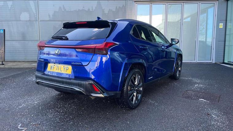 4 driving modes EV/Eco/Normal/Sport, 7" Lexus media display, 8" LFA inspired TFT meters with movable meter ring, Analogue clock with GPS function, Apple car play/Android Auto, Compatible mobile phone bluetooth with audio streaming, E-call, Electric power steering (EPS) with speed sensitive features, Front and rear parking sensor with intelligent clearance sonar, Lane change flasher function, Lexus link connected services, Lexus navigation system, Lexus safety systems + includes dynamic radar cruise control, pre collision system day and night, lane tracing assist, road sign assist, Push button start, Remote touch interface, Reversing camera with back guide lines, Trip computer, F Sport suspension tuning and rear performance dampers, Vehicle Dynamics Integrated Management (VDIM), Vehicle Stability Control (VSC), 2 front USB and 2 rear USB charging points, 6 speakers, AM/FM and DAB radio, AUX socket with VTR compatibility, CD player, Acoustic windscreen, Aero stabilising arch mouldings, Aero stabilising rear lights, Aero ventilated wheels, Aluminium roof rails, Auto dimming interior rear view mirror, Bi-LED (low and high beam) headlights with Auto High Beam (AHB), Black roof drip mouldings, Body adhesive, laser screw welding and laser brazed roof structure, Body coloured bumpers, Colour coded wheel arches, Electric adjustable/heated door mirrors, F SPORT exterior styling consists of black Mesh front grille, enhanced side rockers, metallic coated front bumper and F SPORT badging, Front and rear one touch power windows, with anti-jam protection, Headlight cleaners, LED cornering headlights, LED daytime running lights, LED front and rear fog lights, LED tail lights, LED third brake light, Privacy glass, rear doors and tailgate, Rain sensor windscreen wipers, Rear side wing doors, Rear wiper, Shark fin roof aerial, Single hidden exhaust pipe, Towing preparation, Variable front intermittent wipers, 12V accessory port centre console and luggage compartment, 2 cup holders in the front and rear centre console, 2 way electrical lumbar adjustment for driver, 2 x folding shopping bag hooks in boot, 2 x sun visors with vanity mirror and lamp, 3 seat bench in 2nd row, 4 x tie down hooks in the boot, 5 headrests, 60/40 split folding rear seat, 8 way driver/passenger electrically adjustable front seats, Active sound control, Card holder installed in driver and passengers sun visors, Centre armrest with storage, Driver and passenger door pocket, Dual zone electronic climate control + Nano-E humidity sensor, F Sport aluminium sports pedals, F SPORT dimpled leather gear lever, F SPORT front seat headrest adjustable forwards and backwards, F Sport interior styling, F Sport leather steering wheel with paddle shifts, Fabric/Tahara leather upholstery, Glovebox, Heated front seats, Heated steering wheel, Illuminated entry system, LED interior illumination, Map pockets in the rear of passenger's front seat, Rear air vents with 2 USB chargers, Rear armrest with 2 cupholders, Single passenger seat, Storage tray under audio panel, Textile carpet mats, Tilt/reach adjustable steering column, Under deck storage, Under desk side storage, 2 x Isofix child rear seat restraints, 3x3 point rear seatbelts, Anti-lock braking system (ABS), BAS (Brake Assist System), Driver and front passenger 2 stage airbag, Driver and front passenger knee airbag, Driver/front passenger side airbags, EBD - Electronic brakeforce distribution, ECB (Electronically Controlled Brake System), Electric child locks, Electric parking brake, Front adjustable seatbelt anchor points, Front and rear curtain shield airbags, Front outer seatbelt+pre-tensioners, force limiter+tension reduction: 3-point with active safety link to PCS, Hill start assist control (HAC), Passenger airbag cut-off device, Rear outer seatbelt+pre-tensioners, force limiter+tension reduction: 3-point with active safety link to PCS, Centre belt w/o pre tensioner+force limiter, Secondary Collision Brake (SCB), TRC (Traction Control), Tyre pressure warning, 2 x remote key fobs, Anti theft system : Alarm instruction sensor, glass breakage sensor and engine immobiliser, Locking wheel nuts, Remote central door locking, Speed sensitive auto door locking, Two motion door lock with double lock, VIN Window etching, 18" F Sport alloy wheels with run flat tyres,