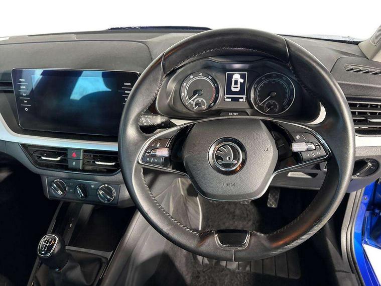 Amundsen satellite navigation with 9.2" glass colour touchscreen display, web radio, voice control and traffic sign recognition, Bluetooth system, E-call, Front assist system, Gesture control, PAS, Service indicator, Speed limiter, Wireless SmartLink for apple car play, android auto and mirrorlink, 8 Speakers, Auxiliary input socket, DAB Digital radio, Body colour bumpers, Body colour door mirrors and handles, Chrome grille surround, Dimming rear view mirror with black surround, Electrically adjustable and heated door mirrors, Front and rear electric windows, Headlight range control, Heated rear window, LED rear lights - low functionality, LED third brake light, Light sensors, Privacy glass, Rear fog lights, Rear side wing doors, Rear wiper, 12V Accessory socket in centre console, 3 seat bench in 2nd row, Chrome inner door handles, Cloth upholstery, Front head restraints, Glove compartment with illumination, Height adjustable driver and front passenger seats - manual, Ice scraper, Isofix child seat fittings on outer rear seats, ISOFIX on front passenger seat, Manual lumbar support for front seats, Rake/reach adjustable steering wheel, Reading lights, Single front passenger seat, Sun visors with illumination on front passenger, Textile floor mats, Third rear headrest, Top tether for front passenger seat, Umbrella in driver's door, 3x3 point rear seatbelts, Airbags - driver and front passenger, ESP, Front passenger airbag deactivation switch, Front side airbags with curtain airbags, Hill hold control, Manual parking brake, Manual rear child locks, One tone horn, Rear disc brakes, Seatbelt reminder for driver an co-driver, Traction control, Tyre pressure monitor, Anti-theft alarm system with interior monitoring, backup horn, towing protection and remote central locking with SAFE system, Anti-theft wheel bolts, Electronic engine immobilizer, Silver haptic decorative insert on the dashboard with hot stamping in glossy black,