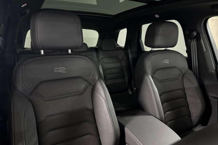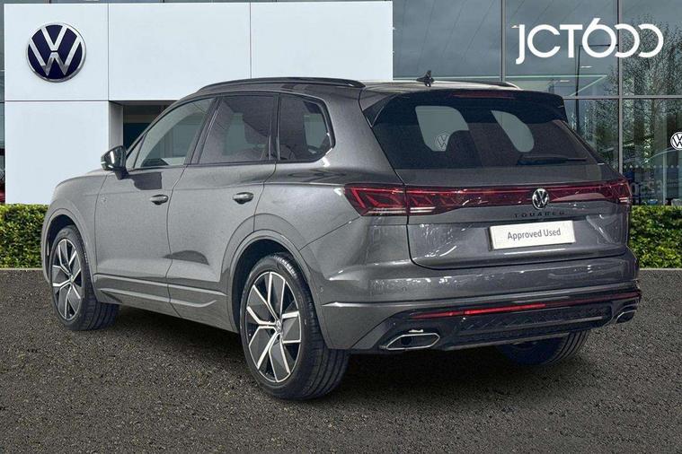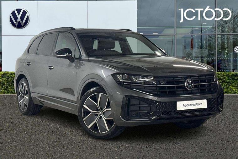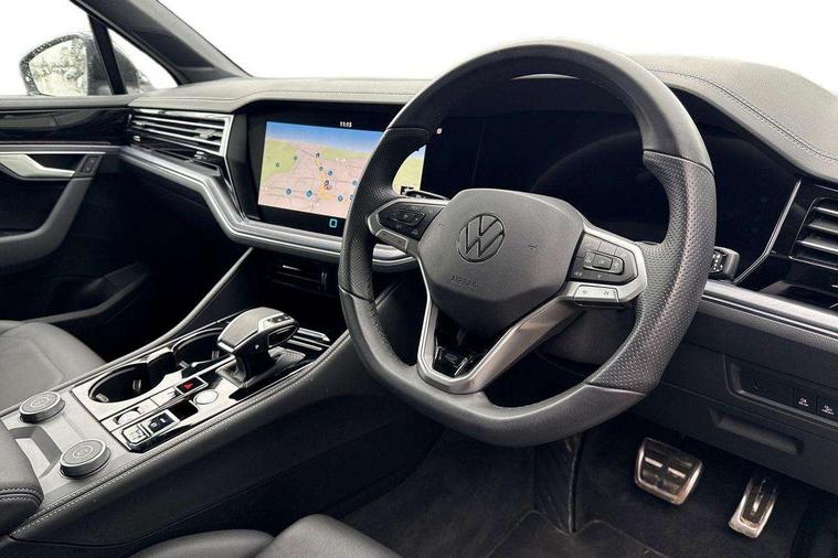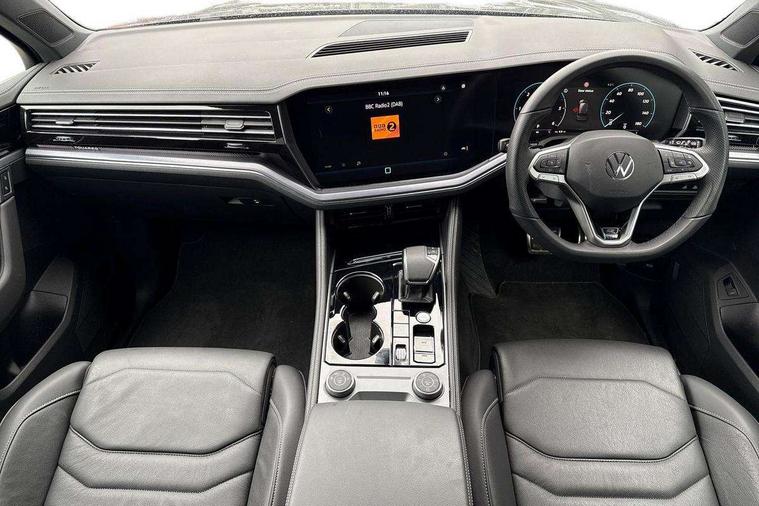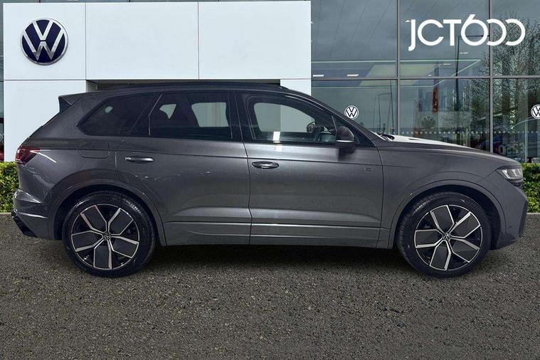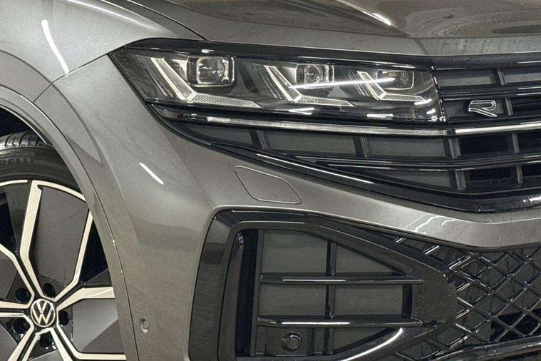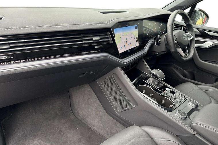 15" Screen Top infotainment system Premium (MIB3), Adaptive cruise control, Advanced driver attention and drowsiness monitor, Driver profile selection, Dynamic road sign display, E-Sim card for online connectivity, eCall emergency system, Innovision cockpit, Intelligent park assist, Mobile phone interface with inductive charging, Multi-colour Active Info display, Park Assist - Sensor controlled steering aid to assist parallel or bay parking, PAS, Warning signal and warning light for front and rear seatbelts not fastened, Wireless app connect, Adaptive chassis control, DAB Digital radio, Diversity antenna for AM/ FM reception, We Connect and We Connect Plus functionality, Automatic coming/leaving home lighting function, Automatic headlights, Black door mirrors, Black style comfort bumpers, Dynamic headlight range control with dynamic cornering light, Electric front tilt/slide panoramic sunroof and fixed rear sunroof, Electrically power adjustable, heated, folding, auto dimming, front passenger exterior door mirror lowering function, External USB type C socket and charging sockets, Gloss black roof rails, HD LED Matrix beam plus digital headlight projection with variable light distribution, Headlight washers, Highway light, LED 3rd brake light, LED daytime running lights, LED rear combination lamp with variable lighting functions and special styling, Poor weather light, Rain sensor, Rear exhaust tailpipe, Rear fog light with back up light on both sides, Rear light bar and illuminated logo, Rear side wing doors, Rear wiper, Stainless steel door sill protection, 12V socket in centre console, 3 rear headrests, 3 seat bench in 2nd row, 4 zone climate control, Airbag label on sun visor and B-pillar, Brushed stainless steel pedals, Double sun visors with illuminated vanity mirrors, Front + rear carpet mats, Front centre armrest, Leather wrapped multifunction sports steering wheel, heated, with touch control and shift paddles, Mechanical rear seat release, Power adjustable lumbar support in front, Power seats in front, right side with memory features and seat cushion depth adjustment, Rear seat backrest and split folding with center armrest, Single front passenger seat, Memory pack plus - Touareg, 3 point seatbelts, outer rear with ECE lable, ABS, Child locks on rear doors, Curtain airbags, Driver and front passenger safety-optimised head restraints, Driver/Front Passenger airbags, Extended pedestrian protection measures, Front assist, Front seat side impact airbags, Generative braking with start and stop system, Height adjustable 3 point front seatbelts with pre tensioners, Passenger airbag deactivate switch, Three 3 point rear seatbelts, Two tone horn, Warning triangle and first aid kit, Alarm system with interior protection, Easy open and close sensor controlled luggage compartment opening and closing with remote unlocking, Keyless Access Keyless locking and starting system with SAFELOCK, Aluminium decorative inserts, Black decorative trims, Gloss black decorative inserts in centre console, Tool kit,