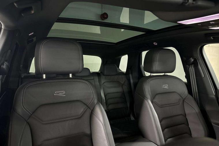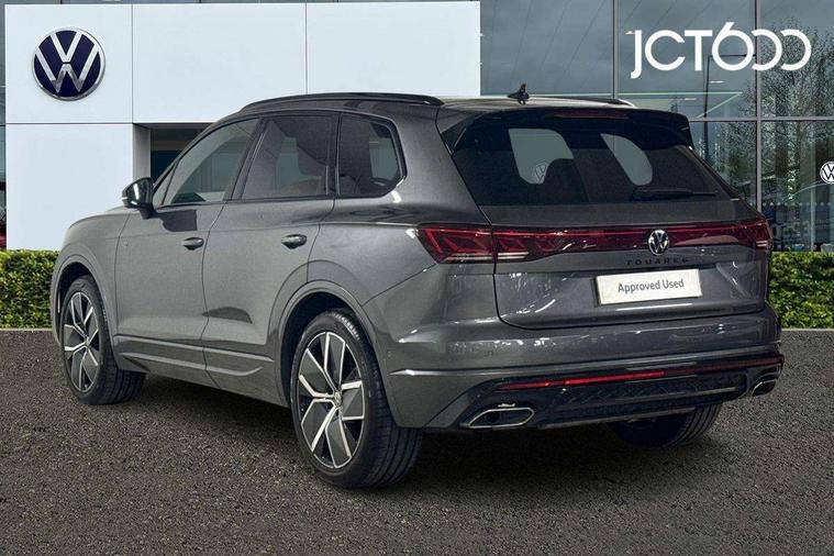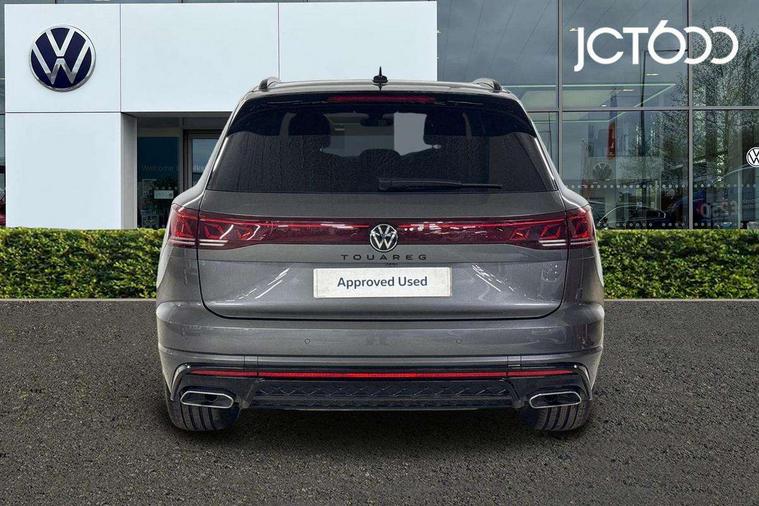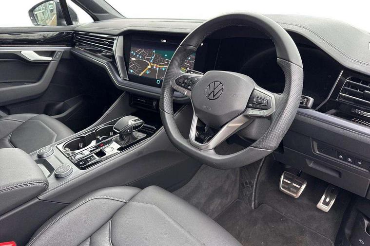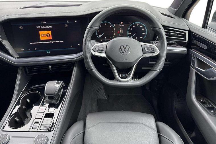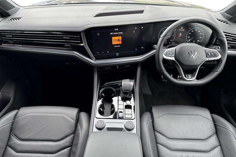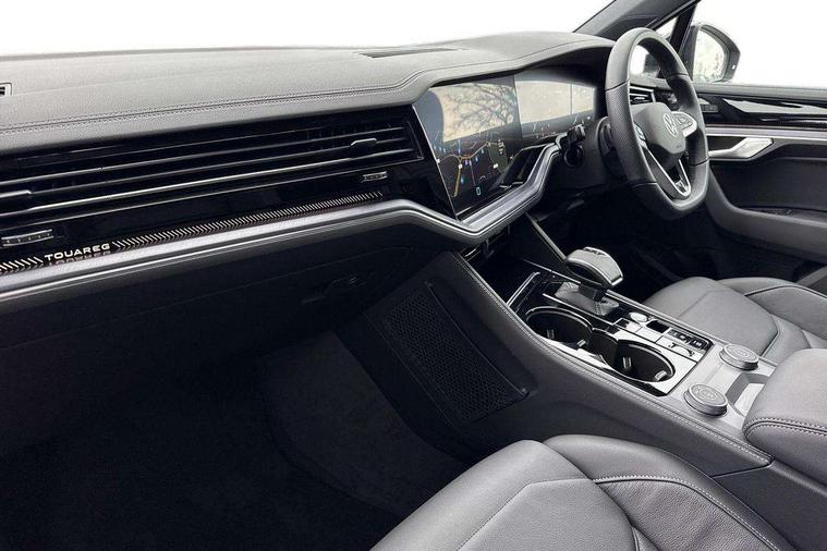 15" Screen Top infotainment system Premium (MIB3), Adaptive cruise control, Advanced driver attention and drowsiness monitor, Driver profile selection, Dynamic road sign display, E-Sim card for online connectivity, eCall emergency system, Innovision cockpit, Intelligent park assist, Mobile phone interface with inductive charging, Multi-colour Active Info display, Park Assist - Sensor controlled steering aid to assist parallel or bay parking, PAS, Warning signal and warning light for front and rear seatbelts not fastened, Wireless app connect, Adaptive chassis control, DAB Digital radio, Diversity antenna for AM/ FM reception, We Connect and We Connect Plus functionality, Automatic coming/leaving home lighting function, Automatic headlights, Black door mirrors, Black style comfort bumpers, Dynamic headlight range control with dynamic cornering light, Electric front tilt/slide panoramic sunroof and fixed rear sunroof, Electrically power adjustable, heated, folding, auto dimming, front passenger exterior door mirror lowering function, External USB type C socket and charging sockets, Gloss black roof rails, HD LED Matrix beam plus digital headlight projection with variable light distribution, Headlight washers, Highway light, LED 3rd brake light, LED daytime running lights, LED rear combination lamp with variable lighting functions and special styling, Poor weather light, Rain sensor, Rear exhaust tailpipe, Rear fog light with back up light on both sides, Rear light bar and illuminated logo, Rear side wing doors, Rear wiper, Stainless steel door sill protection, 12V socket in centre console, 3 rear headrests, 3 seat bench in 2nd row, 4 zone climate control, Airbag label on sun visor and B-pillar, Brushed stainless steel pedals, Double sun visors with illuminated vanity mirrors, Front + rear carpet mats, Front centre armrest, Leather wrapped multifunction sports steering wheel, heated, with touch control and shift paddles, Mechanical rear seat release, Power adjustable lumbar support in front, Power seats in front, right side with memory features and seat cushion depth adjustment, Rear seat backrest and split folding with center armrest, Single front passenger seat, Memory pack plus - Touareg, 3 point seatbelts, outer rear with ECE lable, ABS, Child locks on rear doors, Curtain airbags, Driver and front passenger safety-optimised head restraints, Driver/Front Passenger airbags, Extended pedestrian protection measures, Front assist, Front seat side impact airbags, Generative braking with start and stop system, Height adjustable 3 point front seatbelts with pre tensioners, Passenger airbag deactivate switch, Three 3 point rear seatbelts, Two tone horn, Warning triangle and first aid kit, Alarm system with interior protection, Easy open and close sensor controlled luggage compartment opening and closing with remote unlocking, Keyless Access Keyless locking and starting system with SAFELOCK, Aluminium decorative inserts, Black decorative trims, Gloss black decorative inserts in centre console, Tool kit,