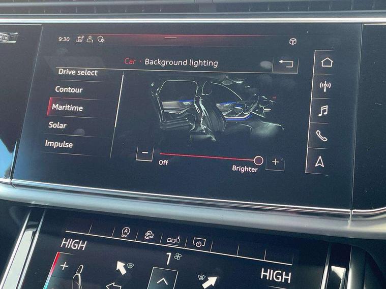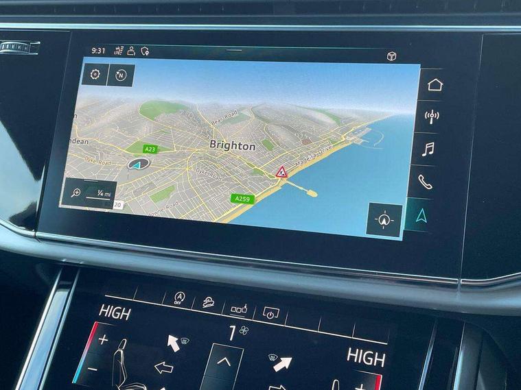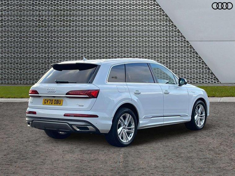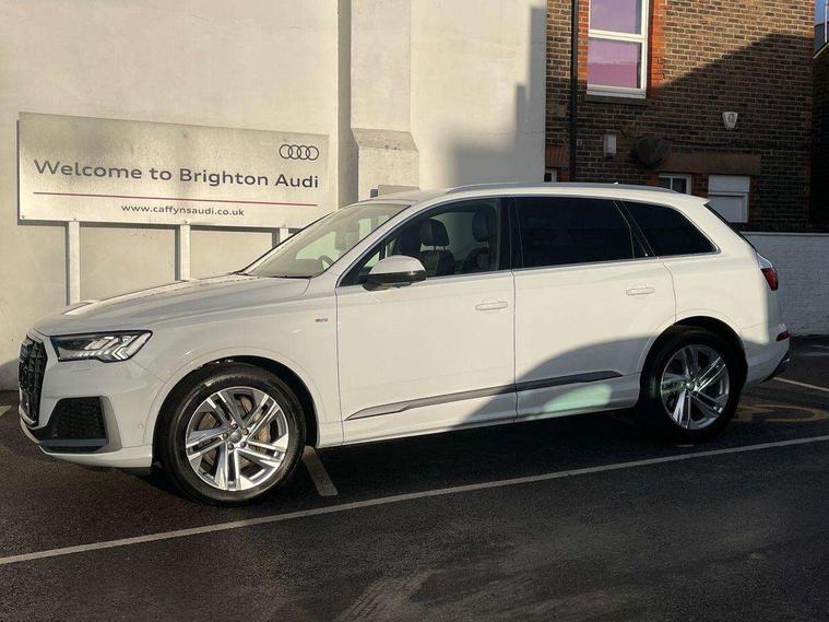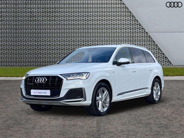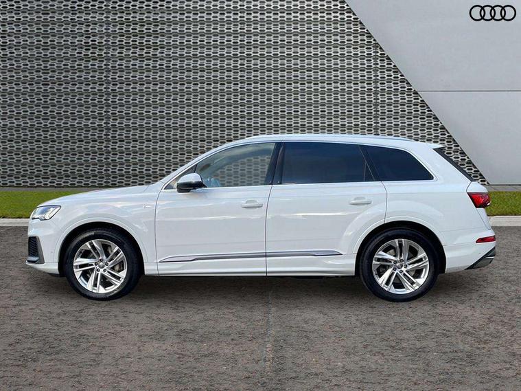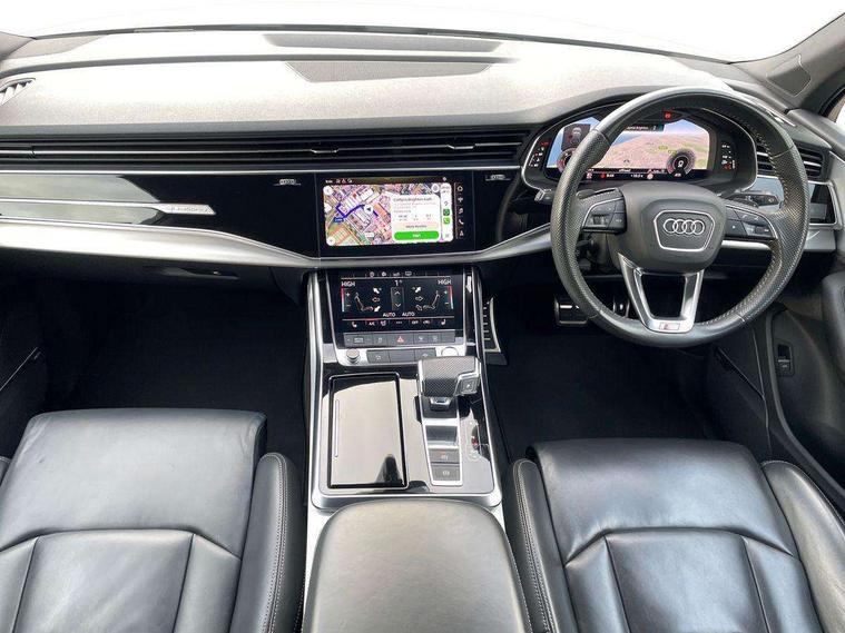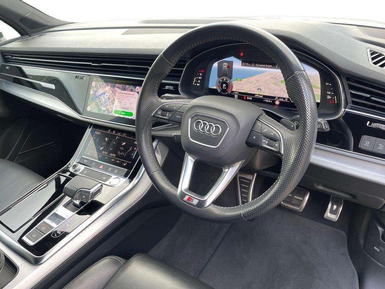 Audi connect safety and service (e-call), Audi drive select (Auto, Comfort, Dynamic, Efficiency, Individual, Off-road and All road), Audi phone box with wireless charging, Audi smartphone interface includes wireless Apple carplay/Android Auto, Camera based traffic sign recognition, Electromechanical steering, MMI navigation plus with MMI touch screens includes 10.1" and 8.6" screens with haptic feedback, Natural voice recognition, Parking system plus - front + rear sensors, Power operated tailgate, Rear view camera, Start/stop system, 48V Mild hybrid technology, Adaptive air suspension, Quattro all wheel drive with self locking centre differential, Audi music interface - front 2 USB-C ports with charger and data functions, Audi sound system with 6 channel amplifier, 180 watt amplifying capacity and 10 loudspeakers including subwoofer, DAB digital radio module, Aluminium roof rails, Aluminium window trim, Audi matrix LED headlights with dynamic front and rear indicators, Auto dimming frameless rear view mirror, Body coloured door mirrors, Electrically adj heated/folding + automatically dimming exterior mirrors with memory + automatic kerb side function for passenger side exterior mirror, Heat insulating glass in windshield, Integrated LED indications in door mirrors, LED daytime running lights, LED rear tail lights, Privacy glass - dark tinted rear and rear side windows from B-pillar backwards, S Line badge on wings, S line bumpers in full body colour paint finish, S line roof spoiler, S line styling side ventilation grilles and side skirts, 2 zone automatic climate control, 7 seat layout with ISOFIX points for the front passenger seat and rear passenger seat, Comfort front centre armrest, Folding rear seats, Front head restraints, Front/rear floor mats, Heated front seats, Illuminated door sill trims with S logo, LED interior ambient lighting, Luggage compartment cover, Luggage compartment sill protection in stainless steel, Rear head restraints, Stainless steel pedals, Tool kit, 3 point seatbelts on all rear seats, Audi pre sense front, Driver and front passenger, front side and curtain airbags, Electromechanical parking brake, Electronic Stabilisation Control (ESC) including ABS, ASR and EDL, Extended pedestrian protection measures, Hill hold assist, Seatbelt monitoring, Tyre pressure loss indicator, Warning triangle and first aid kit, Anti theft alarm, Anti-theft wheel bolts and wheel loosening detection, Keyless go with remote central locking, Darkened matt brushed aluminium inlays, Tyre repair kit,