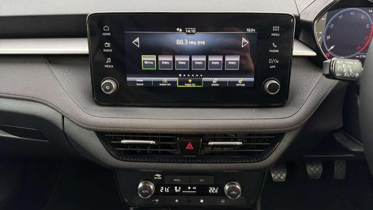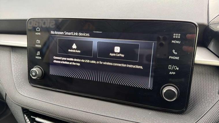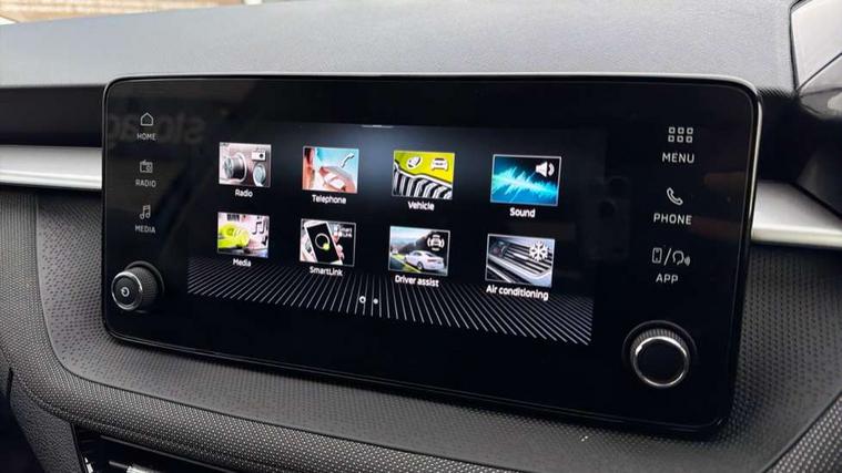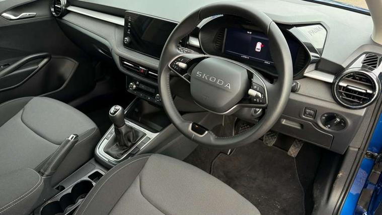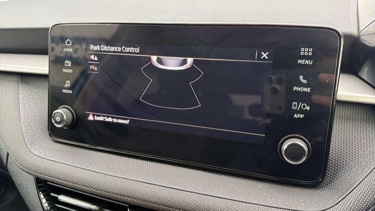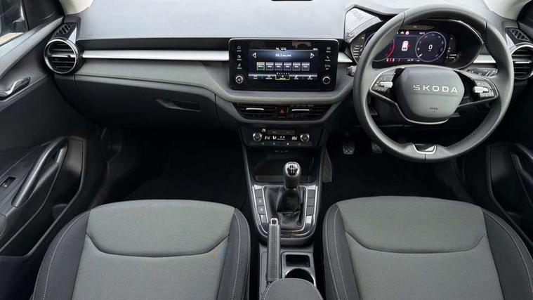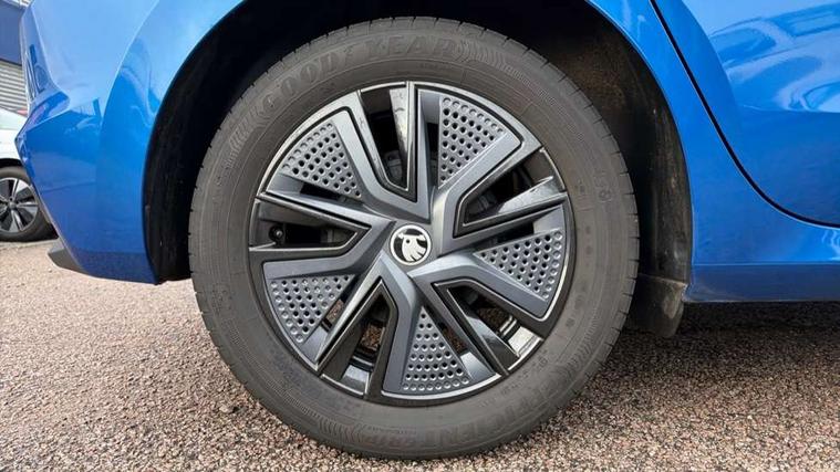 Advanced driver attention and drowsiness monitor, Bluetooth connection, Electromechanical power steering, Exterior temperature gauge, Service interval indicator, Traffic sign recognition, Virtual cockpit with 10.25" colour display, Wireless SmartLink for Apple CarPlay and Android Auto, 6 Speakers (4 in front and 2 in rear), Auxiliary socket for external MP3 player, DAB digital radio reception, Auto dimming rear view mirror, Body coloured bumpers, Door mirror integrated indicators, Front and rear electric windows, Front window wiper intermittent control, Headlight range control - Automatic, Ice scraper in fuel cap, LED 3rd brake light, LED daytime running lights with coming and leaving home feature, LED rear lights, Privacy glass, Rear LED fog light, Rear side wing doors, Rear window wiper with washing nozzles, Roof mounted spoiler, SKODA tailgate lettering in chrome, Unique dark chrome design logo on alloy wheels, 2 reading lights in front and 2 reading lights in rear, 3 rear headrests, Backrest split and folding, Central console with removable cup holder and storage box, Chrome handbrake release button, Dual zone air conditioning with climatronic electronic control, Fabric upholstery, Front centre armrest, Gearshift knob/handle in leather, Grain satin black interior door handles, Hand brake lever handle in leather, Height adjustable front headrests, Height adjustable front seats, Height adjustable steering wheel, ISOFIX and TopTether anchorage points to the outer rear seats, ISOFIX and TopTether on the front passenger seat, Luggage compartment lighting, Manually adjustable lumbar support in front seats, Pollen filter, Rear seat bench unsplit, Single front passenger seat, Skoda lettering on steering wheel, Storm grey headlining, Sun visors with mirror and airbag label on passenger side, Textile floor mats, Ticket holder, Umbrella in drivers door, 3-point height adjustable front seats belts with pretensioner and force limiter, Automatic warning lights in case of crash, Driver and passengers airbag with switch off function, e-Call+, ESC including ABS, MSR, ASR, EDS, HBA and XDS, Front and rear seat belt warning, FRONT ASSIST (AEB City and AEB Inter Urban), Front side airbags, Head airbags, One tone horn, Pedestrian protection, Three rear 3-points safety seat belts with pretensioner and force limiter including stop function for outer rear seat belts, Tyre pressure monitoring system, Anti-theft alarm system including immobiliser, interior monitoring, backup horn, and towing protection, Central locking with radio remote control, interior controls, SAFE function and 2 foldable keys, Black painted air vents, Grain satin black central console cover, Metallic grey upper decorative trim, Satin black door and side trim panel in front, Textile Kota grey lower decorative inserts, Anti-theft wheel bolts protection, Super-low rolling resistance tyres,