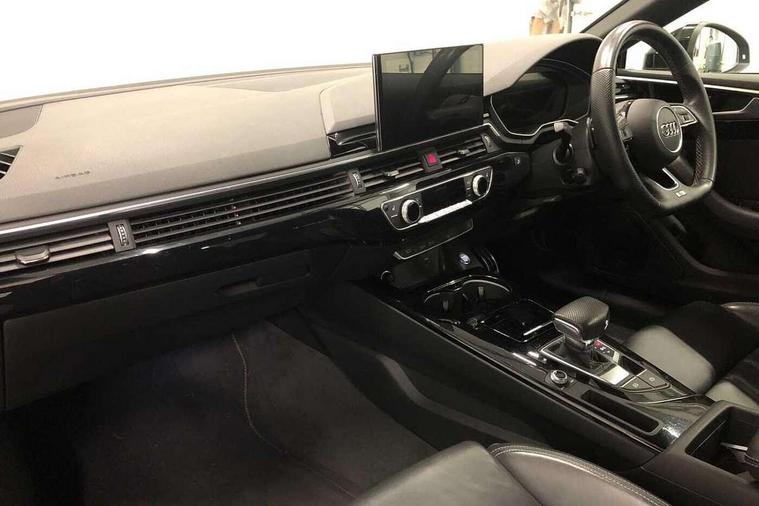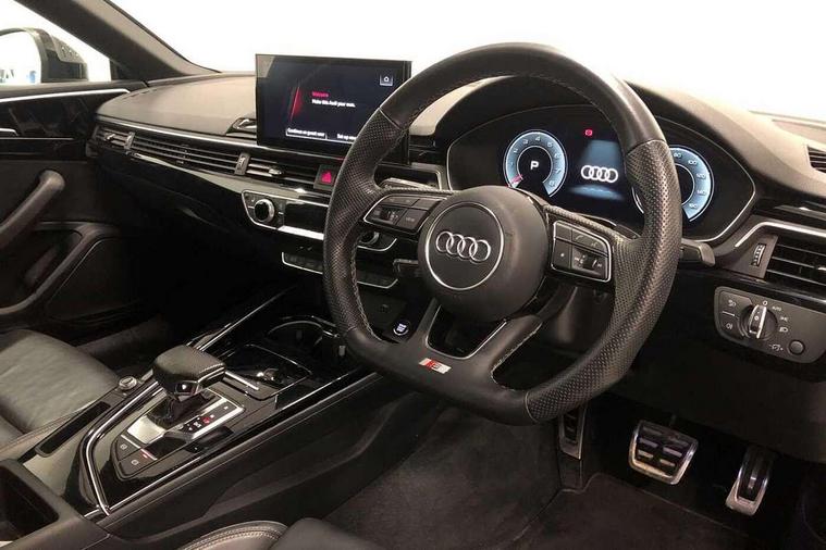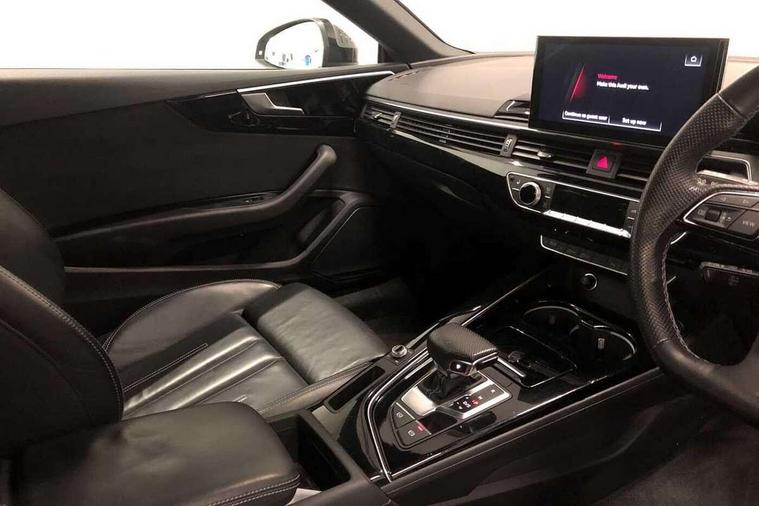 Audi connect safety and service (e-call), Audi connect with Amazon Alexa Integration, Audi drive select (Auto, Comfort, Dynamic, Efficiency and Individual), Audi parking system plus with front and rear sensors, Audi smartphone interface, Audi virtual cockpit - 12.3" full colour digital instrument cluster, vehicle/engine speed, Radio/media information+Driver assistance systems, Automatic start-stop system with coasting functionality and efficiency programme, Bluetooth interface, Electric boot lid release, Electro-mechanical power steering, Email, calendar and text messages displayed via MMI, MMI nav+ with MMI touch - 10.1" high resolution MMI display, touch sensitive, 3D map, route/country info, dynamic route guide, personal route assist, Rear view camera, Service interval indicator, Voice control system, Sports suspension lowered by 23mm, 8 passive loudspeakers, CD player, DAB digital radio reception, Two additional USB ports for rear passenger in rear centre console, Two SDXC card slots, Audi matrix LED headlights with LED rear lights + dynamic front and rear indicators, Auto dimming door mirrors, Auto dimming rear view mirror, Black door mirror housings, Body colour door handles, Body colour front spoiler lip, Body colour side sill trim, Electric adjustable heated door mirrors, Electric folding door mirrors, Electric front windows, Front and rear bumpers with side skirts, Front fog lights, Honeycomb structure radiator grille in grained matt black, Kerb-view function for passenger side, LED daytime running lights, LED side indicator lights integrated into door mirrors, LED third brake light, Matt aluminium silver tailpipe trim, Privacy glass, Rain and light sensors, Rear boot, Rear diffuser in matt titanium black with trim strip in matt aluminium silver, Rear side wing doors, S model rear spoiler in black, Side air inlets in grained matt black with matt aluminium silver inlay, Variable front intermittent wipers, Windscreen with acoustic glazing, 2 seat bench in 2nd row, 4 way electric lumbar support for driver and front passenger, 40/20/40 split folding 2 seater rear seat bench with rear centre armrest, Adjustable steering column, Black cloth headlining, Black perforated leather gearknob, Contrast stitching on seats, steering wheel and gear lever gaiter, Deluxe 3 zone electronic climate control, Front centre armrest, Front head restraints, Front/rear floor mats, Heated front seats, Illuminated door sill trim with S logo, ISOFIX child seat mounting and top tether, Luggage compartment mat, Manual seat adjustment, Rear headrests, Single front passenger seat, Stainless steel pedals, Sunvisors with vanity mirrors, Black styling pack - A5 Coupe/Sportback, LED interior light pack - A5/RS5, 2 x 3-point rear seatbelts, 6 airbags - Driver, front passenger, curtain and side airbags, Electromechanical parking brake, Electronic Stabilisation Control (ESC) including ABS, ASR and EDL, Front passenger airbag deactivation, Height adjustable front seatbelts, Hill hold assist, Multi collision brake assist, Pop-up bonnet for pedestrian protection, Pre sense city, Seatbelt monitoring, Tyre pressure warning, Variable restraint system, Warning triangle and first aid kit, Anti theft alarm system, Anti theft wheel bolts, Immobiliser, Keyless Go, Remote central locking, Piano black finish inlay, 20" 5 twin spoke polygon design alloy wheels in gloss anthracite black and gloss turned finish, Tool kit, Tyre repair kit,