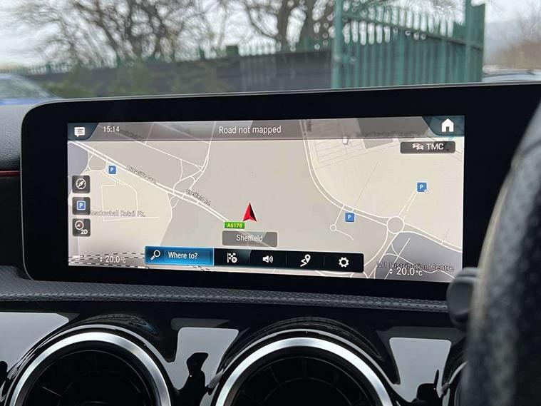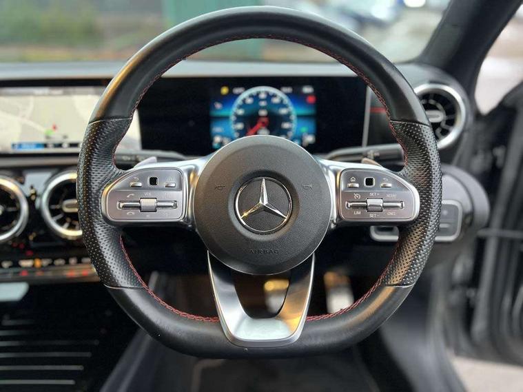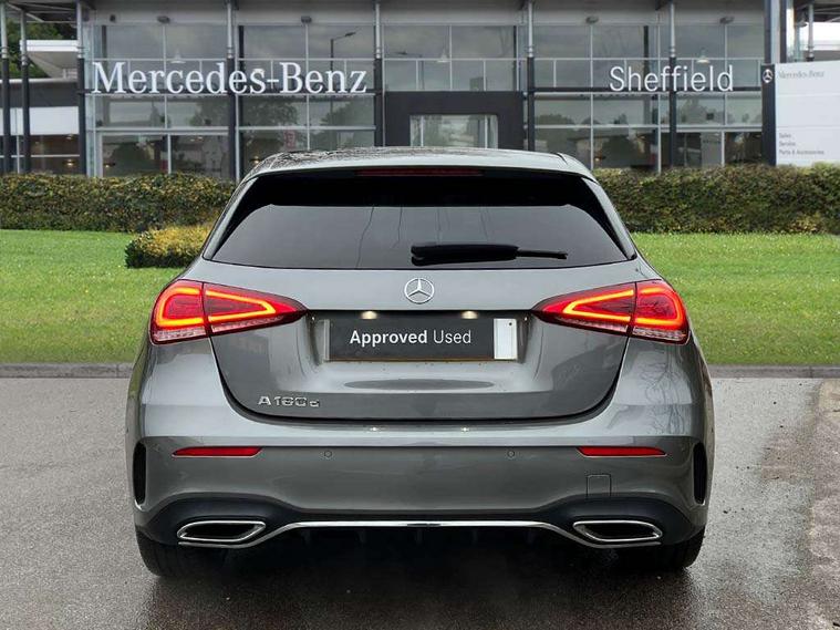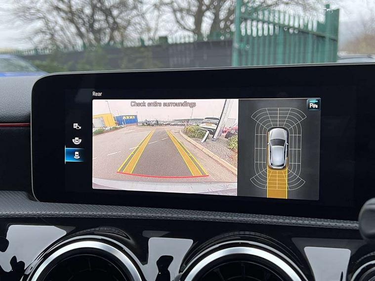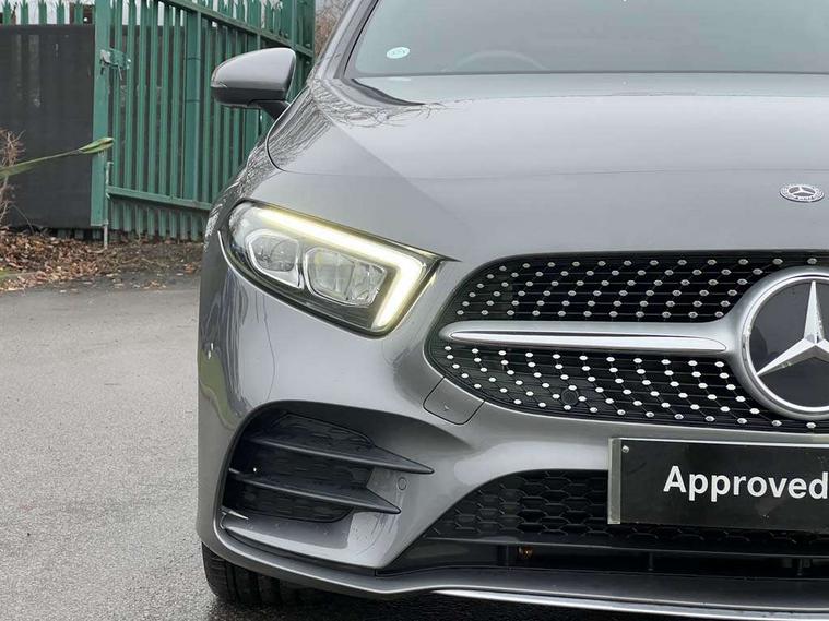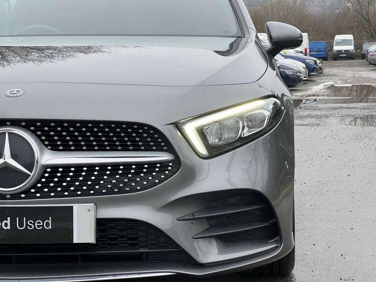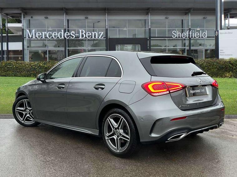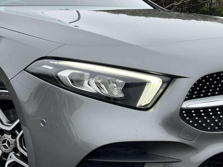 10.25" media display, 180 degree rear view camera with parking guidelines, 7" colour screen in instrument panel, Active lane keep assist, Active park assist with parktronic system including front and rear parking sensors, Attention assist, Brake pad wear indicator warning light, Cruise control + speed limiter, Direct steering, Dual bluetooth interfaces, DYNAMIC SELECT with a choice of driving modes (ECO, Comfort, Sport and Individual), ECO start/stop function, Fluid level warning indicator for fuel, oil, coolant and washer fluid, Hard-disk navigation, Hey Mercedes Voice activation, Lamp failure indicator, Mercedes me connect including emergency call system, accident recovery, breakdown and maintenance management, Outside temperature gauge, Owners manual in English, Pre-installation for private car sharing, Pre-installation for Vehicle Monitoring, Pre-installation for Vehicle Setup, Preinstallation for Mercedes Benz link, Service indicator (ASSYST), Smartphone integration with Apple CarPlay and Android auto, Speed sensitive power steering, Trip computer, Wireless charging, Lowered comfort suspension, Rear axle torsion beam, 2 USB ports (type C) in rear stowage compartment and one in front of center console, 6 speakers, DAB Digital radio, MBUX multimedia system with DAB digital radio and touchpad including satellite navigation, Mercedes-Benz sound system - 100W, 4 Electric Front and Rear windows, Adaptive brake lights, AMG bodystyling - Front apron with splitter in chrome, rear apron with chrome trim and chrome visible trim elements in tailpipe, Black weather strip, Body colour bumpers, Body colour door handles, Body colour side skirt, Body coloured door mirrors, Chrome beltline trim, Diamond radiator grille with chrome pins and silver louvre + chrome insert, Electric adjustable and heated door mirrors with integrated LED side indicators, Exhaust system - Twin visible tailpipes in polished stainless steel, Headlamp assist automatic headlamp activation, Heated glass rear windscreen + timer control, LED high performance headlamps with integrated LED daytime running lights, LED tail lamp, LED third brake light, Privacy glass, Radio aerial, Rain sensing windscreen wipers with two sensitivity settings, Rear fog lights, Rear wiper, Window line trim strip in chrome, 3 Spoke flat bottom leather multi function steering wheel with perforated leather in grip area, 40:20:40 split folding rear seats, Artico man-made leather/Microfibre Dinamica upholstery with red contrast stitching, Auto Mercedes-Benz child seat recognition sensor, Black air vents with surround in silver chrome, Black roof lining, Brushed stainless steel sports pedals with rubber studs, Controller on centre console with chrome surround, Floor mats with stitched edging and AMG lettering, Front centre armrest with storage compartment, Front door sills with Mercedes Benz lettering, Front seat backs luggage nets, Front seat cushion length adjustment, Galvanished gear shift paddles on steering wheel, Heated front seats, Height/reach adjustable steering column, Manual height adjustable front seats, Rear head restraints, Seat occupancy sensor for front passenger seat, Spectacles compartment for driver, Sports seats with integrated headrests, Stowage compartment in centre console with retractable cover, Sunvisors with illuminated vanity mirrors, Touchpad on center console, Twin front cupholders, Two zone thermotronic luxury automatic climate control, Light and sight pack - A Class, Mirror package - A Class, Seat comfort pack - A Class, 3 rear 3 point seatbelts, ABS with Brake Assist, Active bonnet, Active brake assist includes forward collision warning system with autonomous braking, Adaptive brake assist with hold function and hill start assist, Black seatbelts, Childproof locks manually operated for rear doors and electrically operated for rear power windows, Crash responsive emergency lighting, Driver and passenger head and side airbags, Drivers knee airbag, Dual stage driver/passenger airbags, Electronic parking brake, ESP curve dynamic assist, ESP with ASR, Front and rear seatbelt reminder, Front brake callipers with Mercedes Benz lettering, ISOFIX and top tether child seat fixing points in two outer rear seats, Tyre pressure monitoring system, Warning triangle and first aid kit, Window airbags, Alarm system/interior protection/immobiliser, Keyless Go, Remote central locking and crash sensor with emergency opening function, Dinamica microfibre trim in black, 18" AMG 5 twin spoke light alloy wheels in titanium grey with highsheen finish, Summer tyres, Tirefit sealant kit,