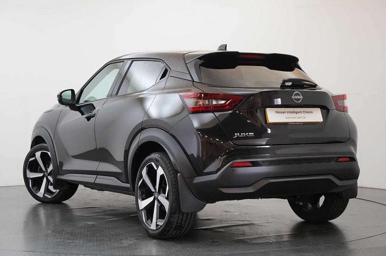 7" full colour TFT screen combimeter, Apple CarPlay and Google Android auto, Drive modes select (Eco, normal and sport), Emergency and breakdown call, Front parking sensor, Idle start/stop system, Intelligent lane intervention, Lane departure warning system, Nissan connect 8" touch screen entertainment system, Nissan connect nav with TomTom traffic, Nissan connect services and Wifi connection, Outside temperature sensor, Power Steering, Rear parking sensor, Traffic sign recognition, Trip computer, Voice recognition, Gasoline particulate filter, 10 Bose speakers 6 speakers and 2 headrest speakers for driver/passenger seats, Bluetooth system, USB, Aux-in and 12V socket, Bose personal sound stage control, DAB Digital radio, Rear console USB port, Auto dimming interior rear view mirror, Auto headlights, Automatic hazard signal with emergency stop signal, Body colour bumpers, Body colour door handles, Electrically adjustable door mirrors with integrated indicators, Follow me home headlights, Front and rear electric window with one touch driver window, Heated and auto folding door mirrors, High beam assist, LED daytime running lights, LED front fog lights, LED headlamps, LED rear fog lamp, LED rear lamps, Rain sensor windscreen wipers, Rear privacy glass, Rear side wing doors, Rear wiper, Thermaclear heated windscreen, Three blink turn signal, 3 height adjustable rear headrests, 3 seat bench in 2nd row, 60/40 split folding rear seat, Automatic climate control, Card holder on driver sunvisor, Door ambient lighting, Driver and passenger sliding and reclining seats, Driver seat back pocket, Driver side rear coat hanger, Driver/passenger sunvisors and vanity mirrors, Front and rear cabin lights, Front armrest, Front door pockets with bottle holders, Front head restraints, Front passenger isofix child seat anchorage point, Front/rear passenger grab handles, Gear console ambient circle lighting, Grey synthetic leather kneepad, Heated front seats, Height adjustable driver's seat, Height adjustable passenger seat, Internal chrome door handles, Leather gearshift knob, Leather steering wheel, Luggage board, Luggage space lighting, Monoform sporty seats, Multifunction steering wheel, Passenger seat back pocket, Rear door bottle holders, Single front passenger seat, Steering wheel mounted gearshift paddles, Synthetic leather upholstery, Telescopic steering wheel adjustment, Two cupholders in front centre console, Two rear isofix child seat anchorage points with top tether, Welcome light and console tray ambient lighting, ProPilot pack - Juke, ABS with EBD and brake assist, Active ride control, Active Trace Control, Driver and passenger airbags, Driver and passenger side airbags, Electric handbrake with auto hold function, Electronic Stability Programme (ESP), Front and rear curtain airbags, Height adjustable seatbelts, Hill start assist, Intelligent emergency braking with pedestrian and cyclist recognition, Rear door child safety locks, Seatbelt reminder for driver/front passenger and rear seats, Single tone horn, Three 3 point rear seatbelts, Traction control, Tyre pressure monitoring system, VDC Dynamic Vehicle Control, Ventilated rear brake discs, Alarm, Immobiliser, Intelligent key and start push button with walk away lock and approach unlock functions, Remote central locking,