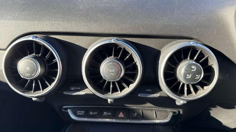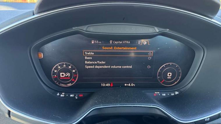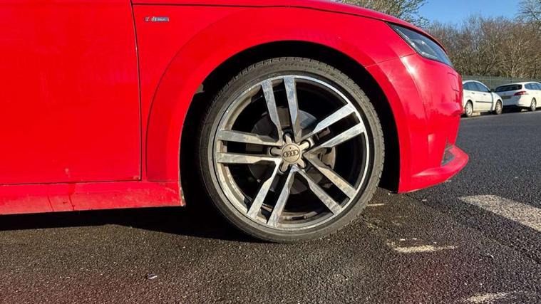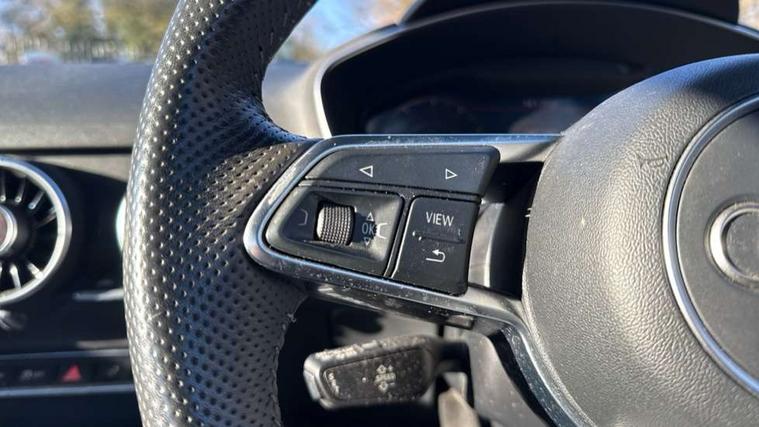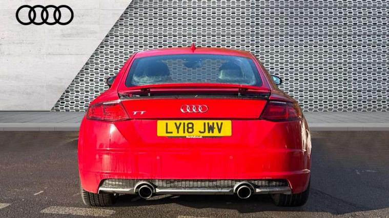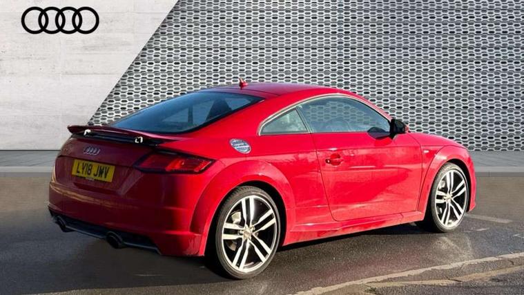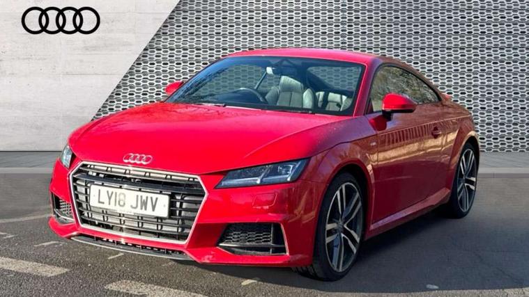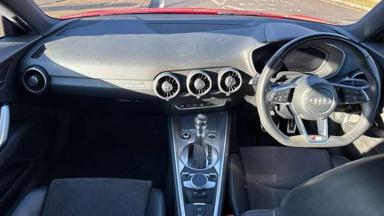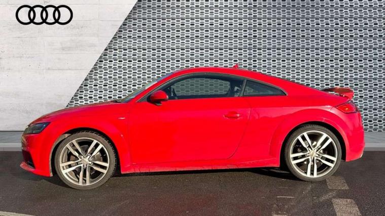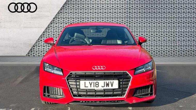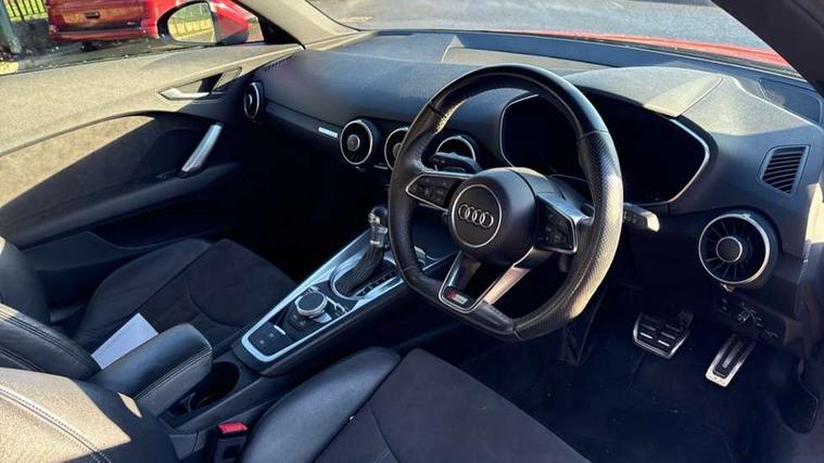 Audi drive select, Audi virtual cockpit - 12.3" high-resolution LCD display with fully customisable instrument cluster, Cruise control + speed limiter, MMI touch panel, Mobile phone preparation with bluetooth interface, Progressive power assisted steering, Service interval indicator, Audi music interface, Auxiliary input socket, Bluetooth audio streaming, DAB Digital radio, MMI Radio with CD player and SD/XC card slot, Auto headlight range control, Body colour bumpers, Body colour door mirrors, Electric front windows, Front fog lights, Green tinted heat insulating glass, High gloss black front grille, LED daytime running lights, Rear diffuser, Retractable rear spoiler, S Line body styling, Sunband for windscreen, 3 spoke flat bottomed high multi-function leather sport steering wheel with gearshift paddles, Aluminium door sill trims, Black headlining, Electric lumbar support, Extended aluminium look with stainless steel pedals, Front centre armrest, Front head restraints, Front passenger seat isofix location point, Height/reach adjust steering wheel, ISOFIX on outer rear seats, Perforated leather gearknob, Split folding rear seat, Top tether anchor plate for isofix child seat, Auto dimming rear view mirror with light and rain sensors pack - TT, Non smoking pack - TT/TT RS, 3 point front seat belts, ABS, ASR traction control, Curtain airbags, Driver/Front Passenger airbags, EDL traction control, Electromechanical parking brake, ESP, First aid kit, Front passenger airbag deactivation, Front side airbags, Head airbags, Seatbelt warning, Tyre pressure warning, Warning triangle, Anti theft alarm, Immobiliser, Keyless Start, Locking wheel bolts, Remote central locking, Matt brushed aluminium inlays, Tyre repair kit,