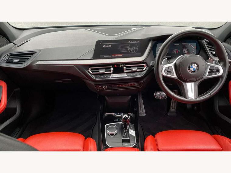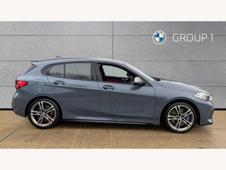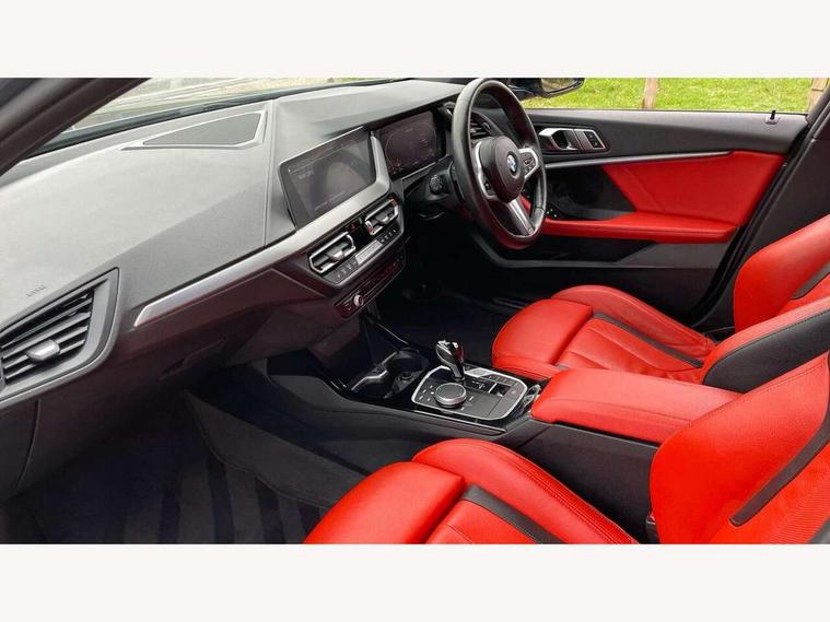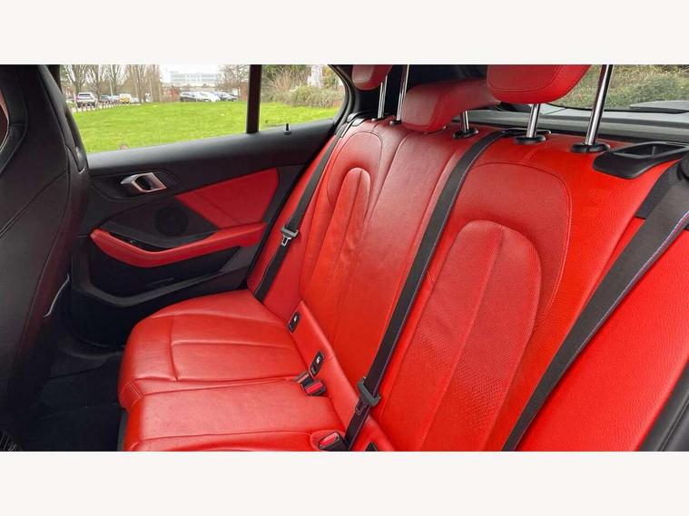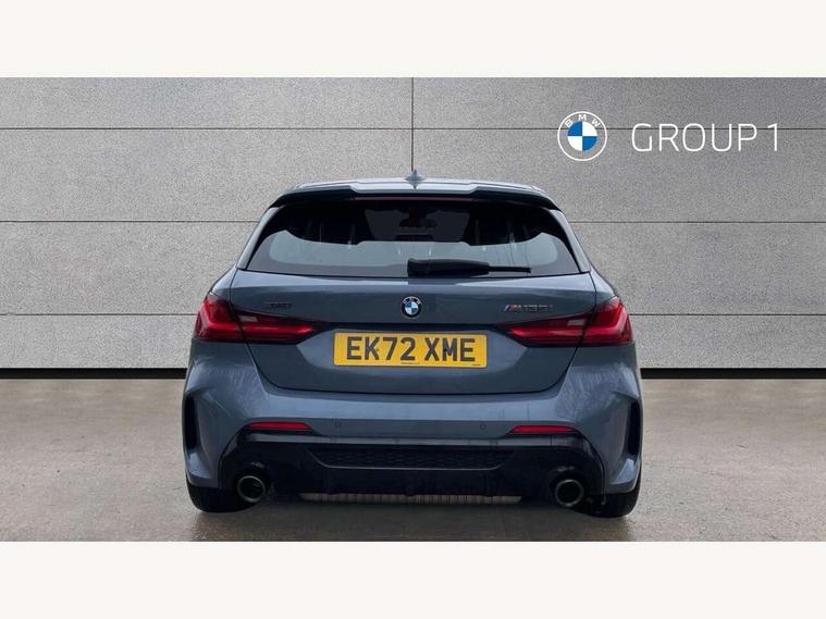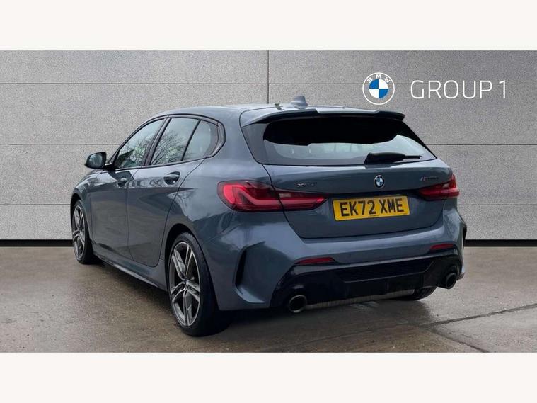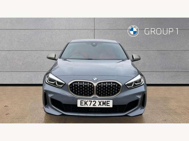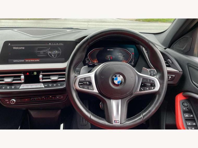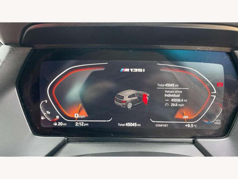Active guard plus, Attentiveness assist, BMW ConnectedDrive online services, BMW Teleservices, Check Control warning system for monitoring of lights and door/luggage compartment open warning, Cruise control with brake assist, Eco pro mode, Electric power steering, Electro hydraulically controlled multi-plate clutch transfers drive to rear axle and with power take-off device located on the front differential., Energy efficient operating strategy, Front axle single joint with specific axle kinematics to minimise drive influences on steering + provide increased rigidity agile driving behaviour, Gearshift time display in manual mode, Integrated owners handbook, Lane departure warning system, M Sports steering with M135i xDrive specific settings, Oil sensor for level and grade, On board computer, Optimum shift indicator, Personal Profile, Pull away assistant, Rigidly mounted rear subframe - Multi link construction with separate spring / damper configuration and excellent driving characteristics, Speed limit Info including no-overtaking indicator, Speed limiter, Sporty fast gear shifting in sport mode, Aluminium lightweight construction, Anti roll bar front and rear, Balancer shaft, Double VANOS, Drive Performance Control, Eight speed sport automatic transmission with gearshift paddle switches, Electronic differential lock, Electronic selector lever, Engine cover with M performance designation, High precision injection, Larger fuel tank capacity (50 litres), Launch control, M135i specific heavily de-throttled engine intake air guide, M135i specific high-performance cooling package, M135i specific larger turbocharger with integrated divert-air valve, Petrol Particulate Filter, Twin tube gas filled shock absorbers with degressive characteristic curve, VALVETRONIC engine management, Variable, stepless and infinitely adjustable distribution of drive torque between the front and rear axles, xDrive intelligent all wheel drive with M135i specific reinforced components, DAB Digital radio, Auto dimming rear view mirror, Automatic headlight beam throw control, Automatic windscreen wipers and automatic headlight, Body colour door handles, Body colour roof trims, Cerium grey exterior mirror caps, Direction indicator side lights in exterior mirrors, Exhaust tailpipe, Cerium Grey with bevelled finish - twin, round 100mm, left and right split, Fading support, Folding side mirrors with auto dimming/folding wing mirrors with auto dimming, Follow me home headlights, Front and rear bumper system with replaceable deformation elements, Front and rear electric windows with open and close fingertip control, anti trap facility and comfort closing, Front door sill finishers with M135i designation, Green tinted heat protection glazing, Heated, electrically adjustable exterior mirror aspheric on driver side, convex on passenger side, High gloss shadowline window frame, Recess cover mirror frames and B/C pillar embelisher trim, High level third brake light, Integrated front windscreen with washer jets, Kidney grille frame in Cerium Grey with Mesh design, LED daytime running lights, LED eyebrow turn indicators, LED front fog lights, Lightweight engineering, M logo designation side in cerium grey, M Performance exhaust system with valve control and minimised exhaust back pressure, M Performance specific setup, M Sport spoiler, Matt black air guide grilles, Matt black wheel arch trim, Model designation on electric bootlid includes xDrive designation for M135i xDrive, Nearside reverse light in rear light cluster, Preparation for high beam assistant, Rear fog lights, Rear side wing doors, Rear window wiper, Reinforced crank drive, new pistons and adapted con rods, Shark fin antenna, Trailer stabilisation logic, Visible VIN plate, Welcome lighting, 12V power socket in front centre console with blanking plug, 3 rear seat head restraints, 3 seat bench in 2nd row, 3 spoke sports leather steering wheel with black leather and stitching, pearl chrome decorative finish, specific M Badge, Ambient interior lighting, Anthracite headlining, Black boot net with lashing eyes, Cargo function on 2nd seat row, Child seat ISOFIX attachment for two outer rear seats and front passenger seat with anchorage points, Conditioned based service, Driver and front passenger seat heating, Folding rear clothes hook, Four grab handles integrated in roof lining, Front and rear door pockets with bottle holders, Front and rear side armrest integrated into door trim, Front armrest, Front integrated head restraints, Front M sports seats, Glove compartment, Luggage compartment for bag hooks on left and right, foldable luggage compartment liner and four lashing eyelets, Manual adjust steering wheel, Multi-function controls for steering wheel, Single front passenger seat, Storage compartment in centre console, Sun visors with vanity mirrors and insert tab, Two front centre console cupholders, Two zone automatic air conditioning, Velour floor mats, Additional interior lighting pack - 1 Series M135i, BMW live cockpit professional pack- 1 Series, Connected pack professional - 1 Series, Interior lights pack - 1 Series, M Sport exterior styling aerodynamics pack - 1 Series 135i, 2 tone horn, 3 point seatbelts on all seats, front pyrotechnic belt tensioners, stopper and belt force limiters, rear coded belt buckles, Airbags - Front driver/passenger, front and rear curtain head protection, front side, manual deactivation of front passenger airbag, Anti lock braking system (ABS) with brake assist, BMW emergency call, Brake drying, Braking readiness, Child proof locking system in rear door, City braking function, Comfort modes, Cornering brake control, Crash sensor activating central locking release, hazard warning lights, fuel cut off, interior lighting + activation of safety battery terminal clamp, Driver and front passenger seat belt security check, Dynamic stability control + (DSC+), Dynamic Traction Control - DTC, Electrically operated hand brake including automatic ho