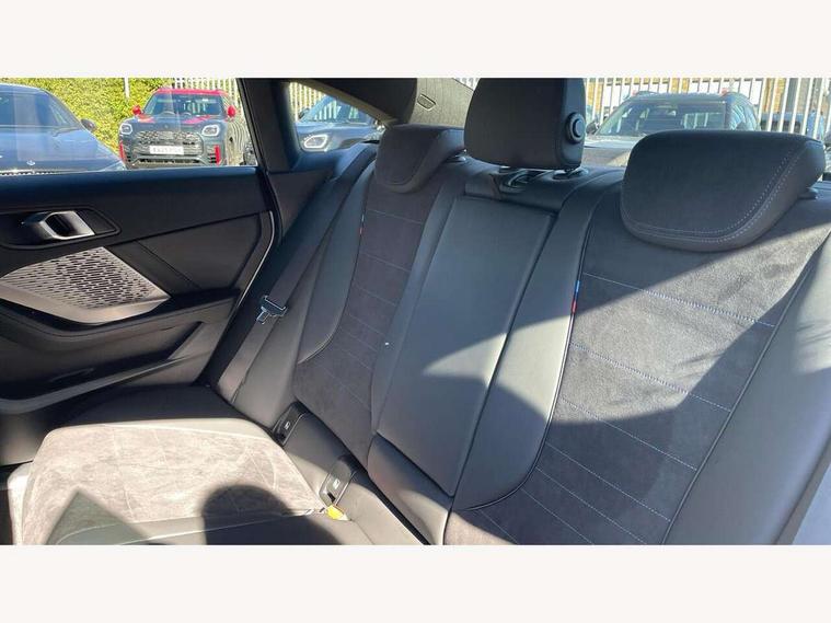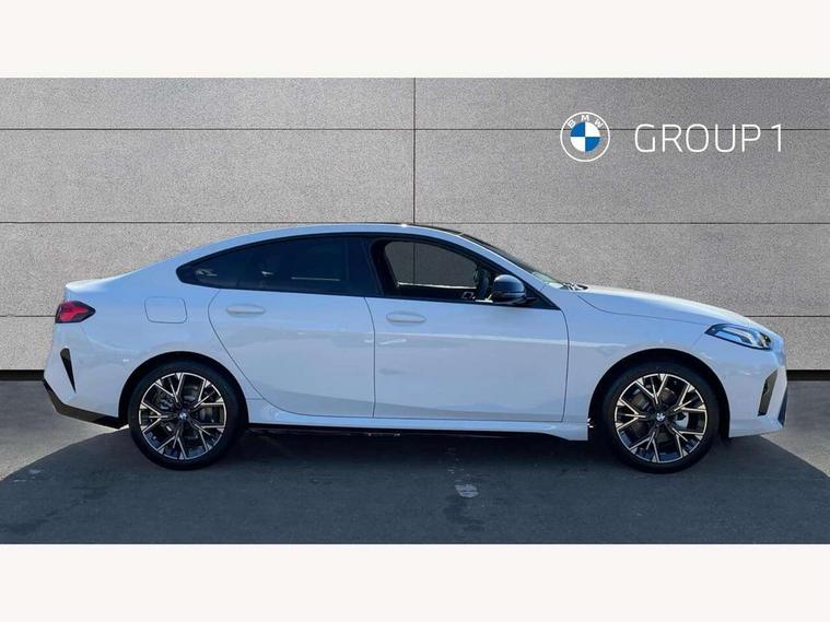 3 driving modes Normal, Eco, Sport, Active guard plus, Attentiveness assist, Auto start-stop, Bluetooth / WiFi interface for wireless connection of mobile terminal devices and audio streaming, BMW ConnectedDrive online services, BMW Intelligent Personal Assistant, BMW Live cockpit plus with widescreen display 10.25" instrument cluster and 10.7" control display, BMW Online services, BMW operating system with 7.0 mid interface, BMW Teleservices, Check Control warning system for monitoring of lights and door/luggage compartment open warning, Cruise control with braking function, Electric power steering, Front and rear parking sensors, Gearshift time display in manual mode, Integrated navigation data with map data via USB +features such as 3D landmarks and micro city models, Integrated owners handbook, Intelligent voice assistant, Lane departure warning system, Oil sensor for level and grade, On board computer - average speed+fuel consumption, service interval, clock/date, odometer/trip meter, outside temperature display and ice warning, Optimum shift indicator, Park assist including reversing assistant, lateral parking aid and reversing assist camera, Personal e-SIM, Personal Profile, Pull away assistant, Speed limit Info including no-overtaking indicator, Speed limiting function, 49 litre fuel tank, Automatic transmission with gearshift paddles, Drive Performance Control, Electronic differential lock, M Adaptive suspension, Performance Control, Petrol Particulate Filter, VALVETRONIC engine management, 2x USB Type C ports (for charging and data transfer), 4G LTE Connectivity with hard wied 4G network sim card, DAB Digital radio, Auto wipers, Automatic headlight beam throw control, Automatically dimming rear view mirror, Body colour door handles, Direction indicator side lights integrated exterior mirrors, Exterior M sport design elements, Folding side mirrors with auto dimming/folding wing mirrors with auto dimming, Follow me home headlights, Front and rear bumper panel with M specific design, in body colour with inserts in black high gloss, Heated door mirrors, High gloss shadow line exterior trim, High level third brake light, Key with M identification, LED daytime running lights, LED eyebrow turn indicators, LED front fog lights, M identification on the sides, Rain sensor with automatic headlight activation, Rear boot, Rear fog lights, Rear side wing doors, Rear window heating, Roof trim strip in vehicle colour, Shark fin antenna, Side sill covers with M specific design in body colour, Trailer stabilisation logic, Visible VIN plate, Welcome lighting, 12V power socket in centre console, 2 cupholders in front centre console, 3 rear seat head restraints, 3 seat bench in 2nd row, 3 spoke sports black walknappa leather steering with black stitching, shift paddled boost inscription, shaped thumb rests, specific M Badge, Anthracite headlining, Child seat ISOFIX attachment for two outer rear seats and front passenger seat with anchorage points, Conditioned based service, Driver and front passenger backrest net on rear, Driver and front passenger seat heating, Four grab handles integrated in roof lining, Front and rear door pockets including bottle trays, Front and rear side armrest integrated into door trim, Front head restraints, Height adjustable front head restraints, Luggage compartment lighting, Rear seat backrest with manual 60:40 split folding with 3 top tether clips integrated on rear of seat panels, Single front passenger seat, Sun visors with vanity mirrors and insert tab, Connected pack professional - 2 Series Gran Coupe, 2 tone horn, Airbag - Front driver and passenger, front and rear head, front side, curtain head protection, manual deactivation of front passenger airbag possible, Anti lock braking system (ABS) with cornering brake control, BMW emergency call, Brake drying, Braking readiness, City braking function, Crash sensor activating of airbags, Unlocking doors, hazard warning lights, interior light, safety battery terminal, Dynamic stability control + (DSC+), Dynamic Traction Control - DTC, Electrically operated hand brake, Front and rear disc brakes, PC iBrake (Post crash approach control warning with light braking function), Rear brake discs, Rear child proof door locks, Seat belt security check for driver and front passenger, Seatbelt warning, Side impact protection, Three point seat belts on all seats including front belt stopper, pyrotechnic belt tensioners and belt force limiters, Trailer stability control, Tyre pressure monitoring system, Ventilated front disc brakes, Warning triangle and first aid kit, Central locking switch for all doors, fuel filler cap and luggage compartment, Deadlocking function system to all doors, Drive away locking system on all doors and luggage compartment, Locking wheel bolts, Start/Stop button (illuminated) in centre console with keyless engine start and Auto Start-Stop deactivation button, Thatcham Cat.1 alarm and immobiliser, Two remote control key with integrated key - open/close doors/fuel flap/tailgate +1 button for unlock compartment with M design high gloss black inlay, Reduced rolling resistance tyres, Tyre repair kit,