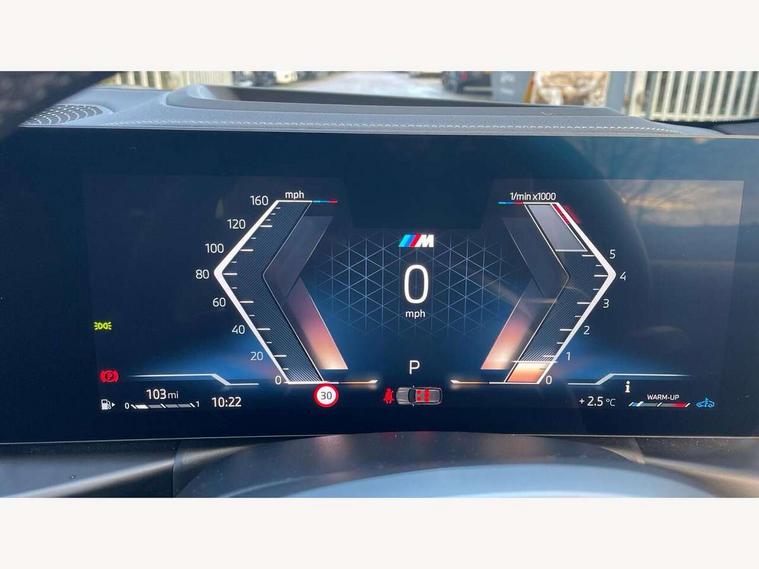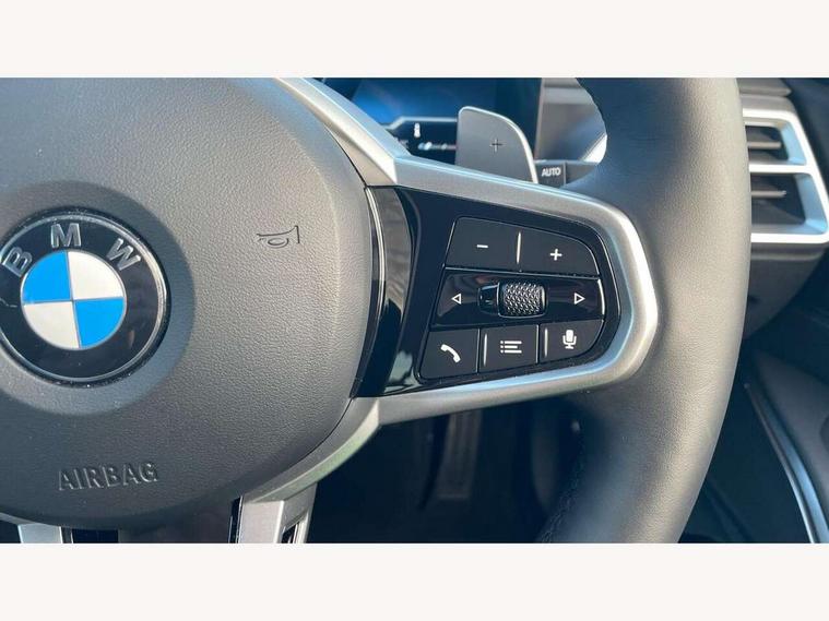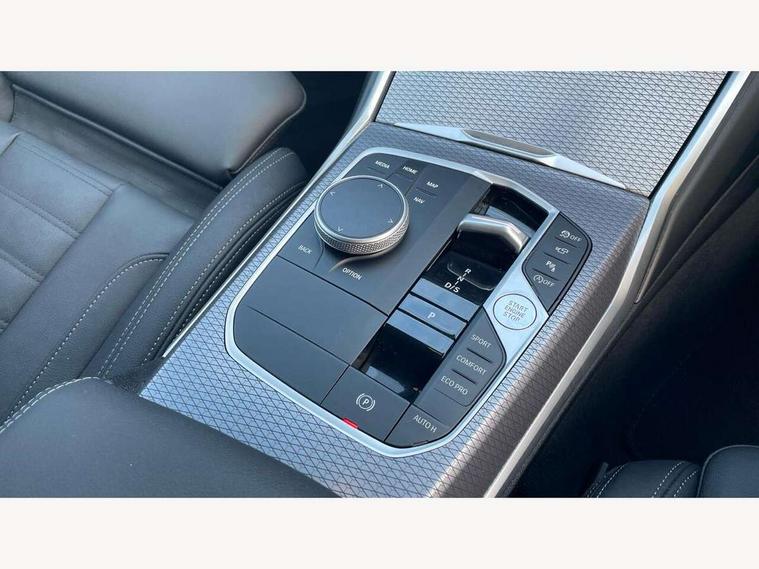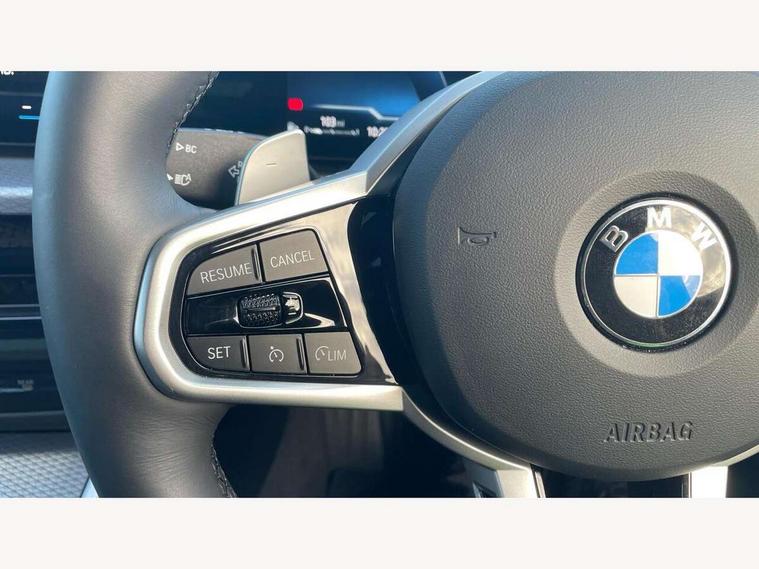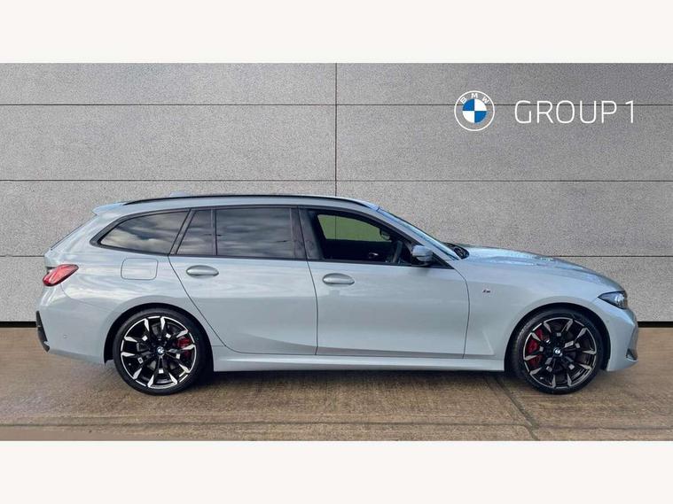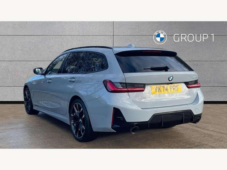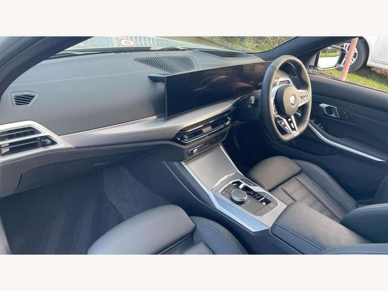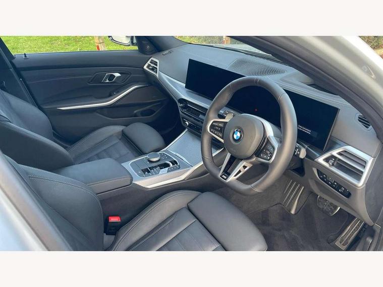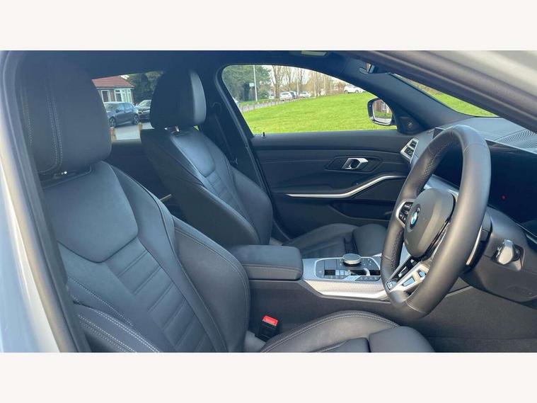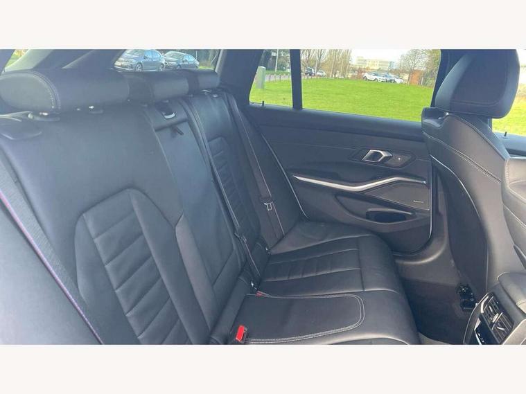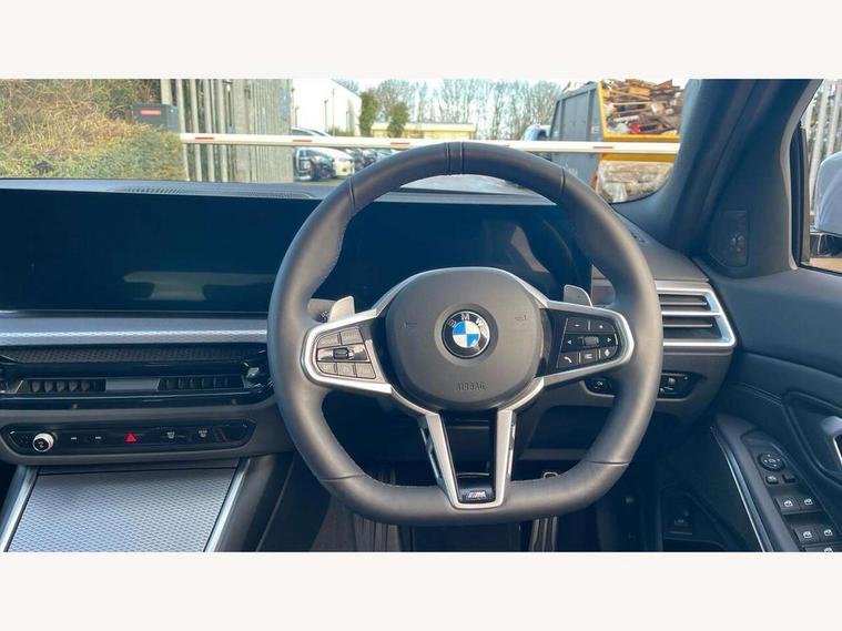 Active guard plus, Attentiveness assist, Automatic Start/stop button, Bluetooth Wi-Fi interface, BMW iDrive, BMW Teleservices, ConnectedDrive Services - last state call, Electric bootlid, Live cockpit plus with Navigation + 12.3" instrument display + 14.9" display, Intelligent voice assist, 2 USB, 4G LTE connect, Oil sensor for level and grade, Personal e-SIM, Shifting point display, Variable sport steering, Double joint spring strut front axle, Fuel tank breather system, Steptronic Sport automatic transmission with steering wheel mounted gearshift paddles launch control and xtreme drive lever control, DAB tuner, 3rd brake light, Auto dimming rear view mirror, Automatic headlight beam throw control with load dependent regulating reaction, dynamic compensation of braking dive and acceleration squat, Bi-LED Low and high beam headlights, BMW emblem, engine compartment lid and tailgate, Body colour roof fin, Door sill strips, Electric windows - front and rear, with open/close fingertip control, anti-trap facility and comfort closing, Fading support, Follow me home headlight function, Front and rear bumper system with replaceable deformation elements, Front apron plastic in body colour, Fuel filler flap - right rear in body colour, Heat protection glazing on front windows and windscreen, Heated washer jets, High gloss chrome kidney frame with high gloss black kidney struts, High gloss shadow line roof rails, LED daytime running lights, LED rear lights, LED turn indicator, Licence plate panel integrated into front bumper and tailgate, M high gloss shadow line exterior trim, Matt black B-pillar finsher, Matt black window recess cover, One piece front bumper cover including towing eye cover in body colour, Rain sensor with automatic headlight activation, Rear side wing doors, Rear wiper, Reversing lights, Side frame decorative moulding black matt, Trailer stabilisation logic, Visible exhaust tailpipe finisher, Welcome lights in interior and door handle area, 12V power socket in front storage compartment, 2 front cupholder in centre console with clamping elements and matt black inlay, 3 seat bench in 2nd row, 3 spoke M Sport multifunction flat bottom leather steering wheel, 3 zone automatic air conditioning, 40:20:40 split folding rear seat with loading system, Anthracite headlining, Armrest integrated in front and rear door trim + front centre console armrest, BMW ID, Cruise control operation in steering wheel, Driving experience mode switch, Folding rear centre armrest with 2 cupholders, Front and rear headrests, Front and rear velour floor mats, Front reading light, Heated front seats, Height adjustable mechanically and infinitely variable steering column, Illuminated armrest storage compartment, Illuminated glove compartment, Illuminated luggage compartment, Lashing eyelets in luggage compartment, Single front passenger seat, Sunvisors with illuminated vanity mirrors and ticket pocket, Toolkit located in luggage compartment, Connected pack professional - 3 Series Saloon/Touring, Interior and exterior mirror pack - 3 Series Touring/Saloon, M sport exterior styling pack - 3 Series Saloon/Touring, Parking assistant pack - 3 Series, 3x3 point rear seatbelts, BMW emergency call, Child locks on rear doors, Crash sensor activating of airbags, Unlocking doors, hazard warning lights, interior light, safety battery terminal, Drive-off assistant, Driver and front passenger with seat occupancy detection for driver's and passenger side, Driver and passenger side airbags, body protection at side and airbags deploy from seat backrests, Dry braking, Dynamic brake control, Dynamic stability control + (DSC+) - Anti-lock Braking System (ABS) with brake assist and cornering brake control + Automatic Stability Control (ASC), Dynamic Traction Control - DTC, Electric parking brake including automatic hold function and automatic release of the parking brake when driving off, Electronic differential lock control (EDLC), Front airbag deactivation, Front airbags for driver and front passenger, Head airbags in 1st and 2nd row, head protection at side, curtain airbags open from headliner above 1st and 2nd row, Plastic fuel tank, Side impact protection, Tyre pressure sensors, Ventilated front and rear disc brakes, Warning triangle and first aid kit, Alarm system, Centre lock switch, Closing system with central locking, Electronic vehicle immobiliser, Locking wheel bolts,