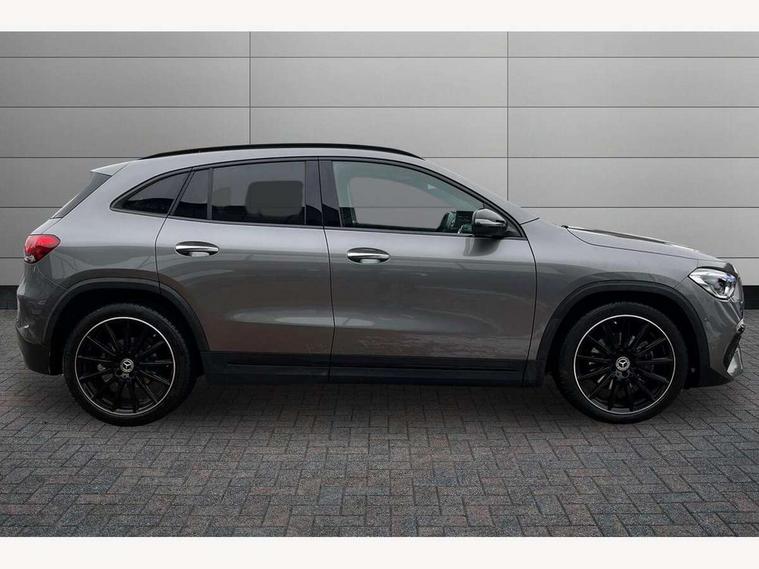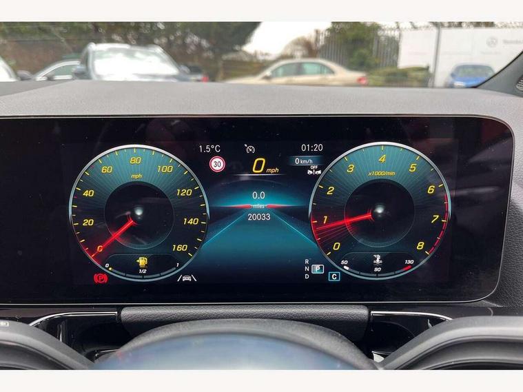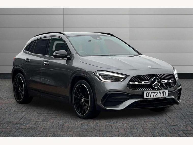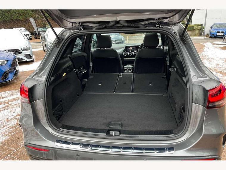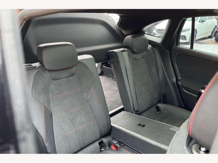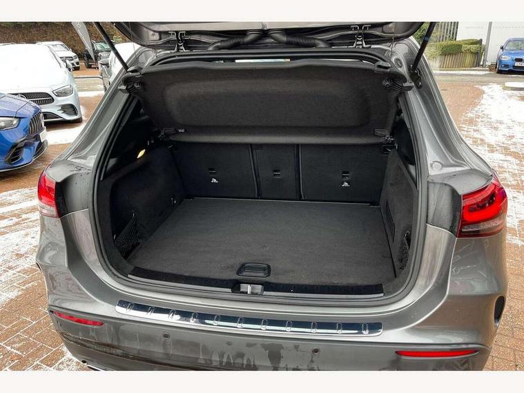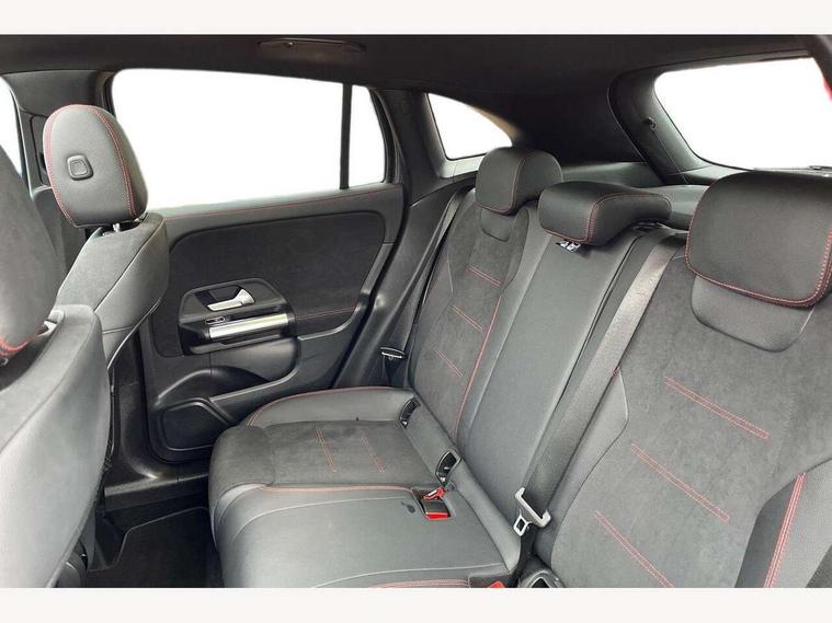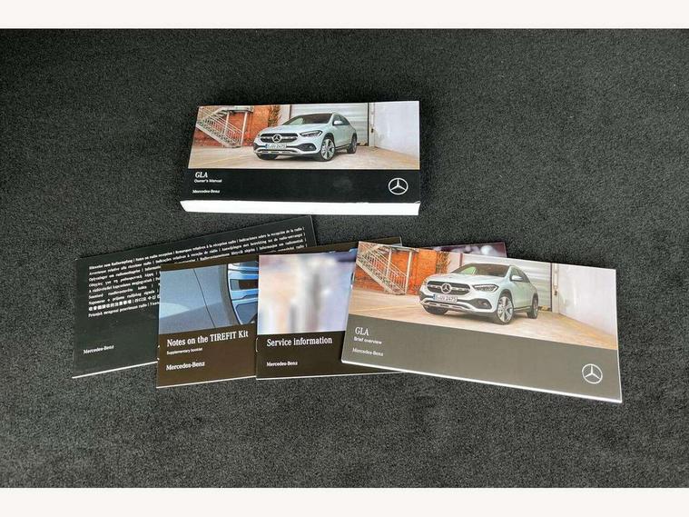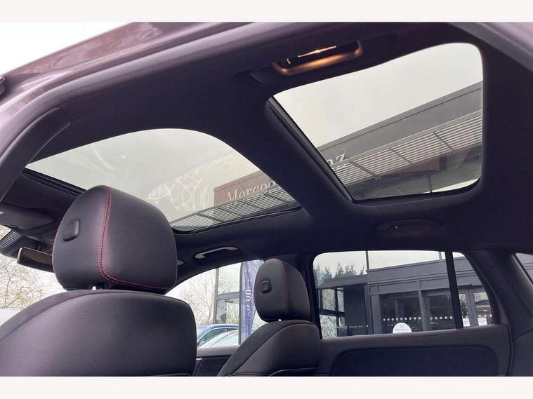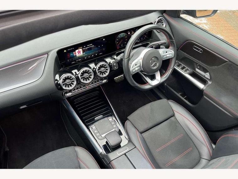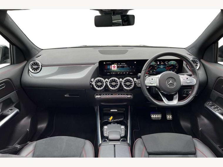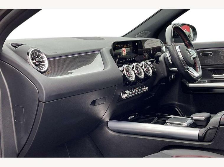 10.25 inch touchscreen central media display, 10.25" Digital instrument cluster display screen, Active lane keeping assist, Attention assist, Cruise control + speed limiter, Direct steering, DYNAMIC SELECT with a choice of driving modes (ECO, Comfort, Sport and Individual), ECO start/stop function, Fluid level warning indicator for fuel, oil, coolant and washer fluid, Hard-disk navigation, Hey Mercedes Voice activation, Lamp failure indicator, Mercedes me connect including emergency call system, accident recovery, breakdown and maintenance management, Mercedes me remote services, Multi function trip computer, Outside temperature gauge, Owners manual and service booklet in English, Pre-installation of private car share, Radio aerial integrated into front and rear windshields, Service indicator (ASSYST), Smartphone integration with Apple CarPlay and Android auto, Speed limit assist, Status display for rear seat belts in instrument cluster, Traffic sign assist, Lowered comfort suspension, Rear axle multi-link, 2 USB ports (type C) in rear stowage compartment and one in front of center console, Bluetooth connectivity including audio streaming, DAB Digital radio, MBUX multimedia system, Media interface, Mercedes-Benz (225w) sound system with 10 speakers, Adaptive brake lights, Adaptive LED tail lights, Aerial for GPS, AMG front and rear apron, AMG specific/dual flow exhaust pipes in chrome (non-functional), Automatic headlamp activation, Beltline strips and weather strip in chrome, Black grained claddings with chrome parts, Body colour bumpers, Body coloured door handles with chrome insert for keyless entry, Car wash function, Dark privacy glass from B-pillar backwards, Electric front windows, Electric rear windows, Electrically adjustable and heated door mirrors with integrated LED indicators, Front bumper with underride guard in high gloss chrome, Heated glass rear windscreen + timer control, Heated windscreen wash system, Interior mirror with black reading lamps and frameless, LED third brake light, Matt titanium grey front and rear apron trim, Multibeam LED headlamps with adaptive highbeam assist and cornering function, Panoramic sunroof, Rain sensor windscreen wipers, Rear fog lights, Rear side wing doors, Rear wiper, Roof spoiler, Single lamella raditor grille with chrome dotted diamond grille and inlay, 12V power socket in centre console, 3 seat bench in 2nd row, 3 spoke multifunction sports steering wheel in nappa leather with flattened bottom and perforated grip area, 4 way lumbar support, 40:20:40 split folding rear seat backrests, Adjustable head restraints, Air conditioning - Two zone thermotronic luxury automatic climate control with display, Ambient lighting in front headrests, AMG floor mats in black with AMG lettering in front, Artico man-made leather/Microfibre Dinamica upholstery with red contrast stitching, Auto Mercedes-Benz child seat recognition sensor, Black roof lining, Brushed door pulls in silver chrome, Courtesy light in boot, Floor mats in velour, Front centre armrest with stowage, Galvanished gear shift paddles on steering wheel, Heated front seats, illuminated door sills with changeable cover, Illuminated glovebox, Interior lighting - 64 colour Ambient lighting, Leather trimmed gearknob, Luggage net on driver/front passenger seat backrest, Manually height and reach adjustable steering column, Multi-gesture touchpad control on center console, Single front passenger seat, Sports pedals in brushed stainless steel with black rubber studs, Sports seats, Stowage compartment in centre console, Stowage compartment with retractable cover, Sunvisors with illuminated vanity mirrors, Twin front cup holders, Two outer rear seat isofix and top tether child seat fixing points, AMG body styling pack - GLA, Comfort seat pack - GLA Class, Interior lighting with light and sight pack - GLA, Load compartment pack - GLA, Mirror pack - GLA Class, Night package - GLA, Parking pack - GLA, 3 rear 3 point seatbelts, ABS with Brake Assist, Active bonnet pedestrain safety measure which detects an impact and raises bonnet by 65mm, Active brake assist includes forward collision warning system with autonomous braking, Adaptive brake assist with hold function and hill start assist, Bonnet with power domes, Brake pad wear warning indicator, Childproof locks manually operated for rear doors and electrically operated for rear power windows, Crash responsive emergency lighting, Driver and passenger head and side airbags, Drivers knee airbag, Dual stage driver/passenger airbags, Electronic parking brake, ESP curve dynamic assist, ESP with ASR, Front and rear seatbelt reminder, Front brake callipers with Mercedes Benz logo lettering on front, Front brake discs internally ventilated and perforated, Front passenger seat occupancy sensor, Sports braking system, Tyre pressure monitoring system, Warning triangle and first aid kit, Window airbags, Alarm system with immobiliser and interior protection -Thatcham category 1, Keyless entry lock/unlock, Keyless Go starting function, Remote central locking and crash sensor with emergency opening function, Urban guard vehicle protection, Vehicle key with decorative surround in chrome, Carbon structure trim, Chrome air vent surrounds, 20" AMG multi spoke light alloy wheels painted in high gloss black with high sheen rim flange, Summer tyres, Tirefit tyre sealant kit,