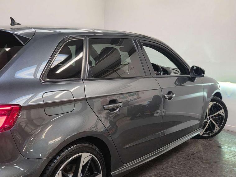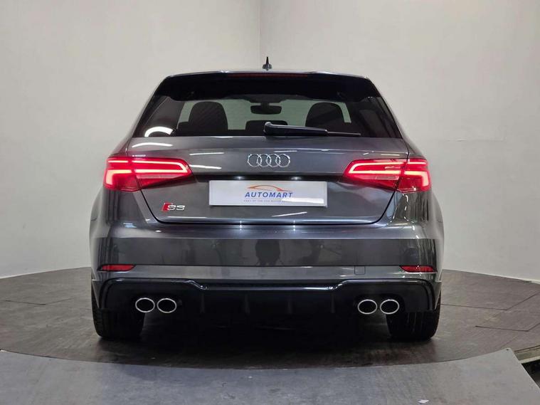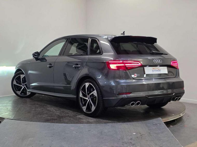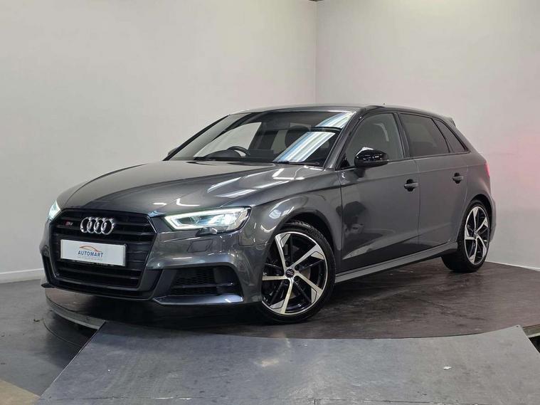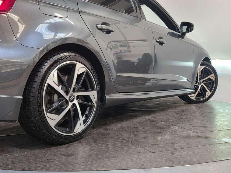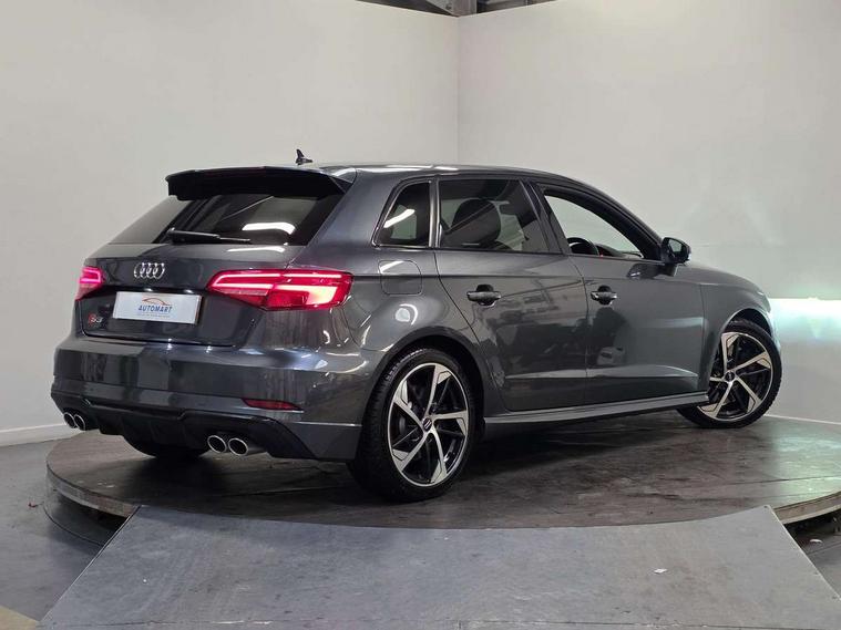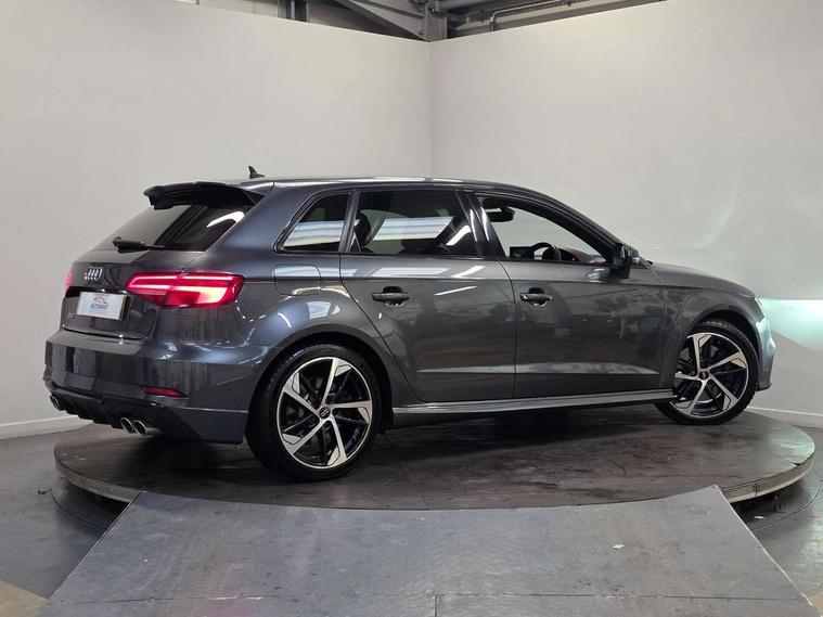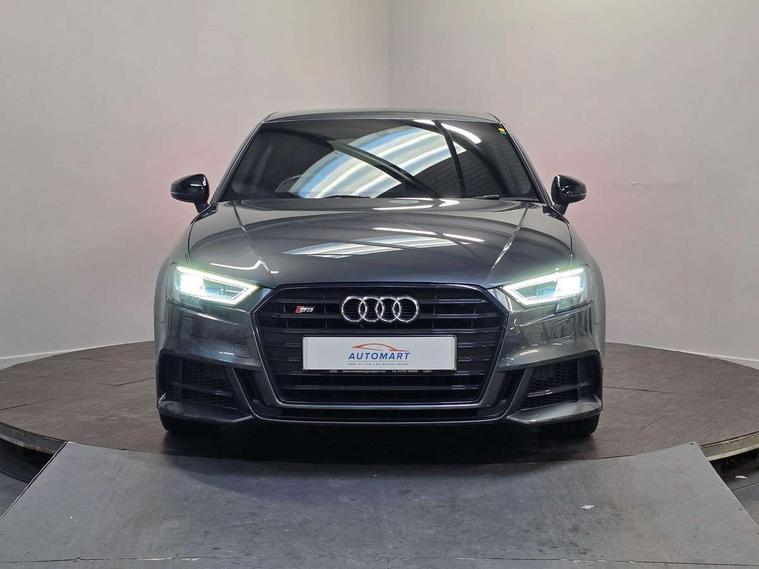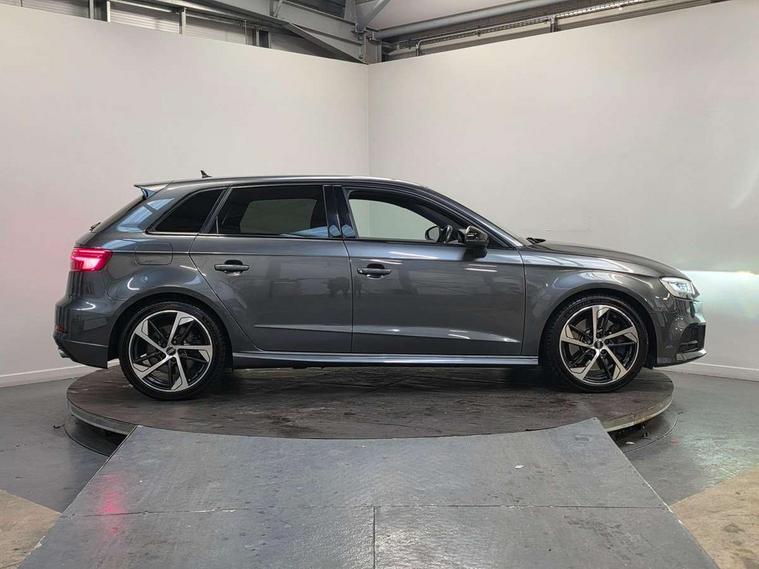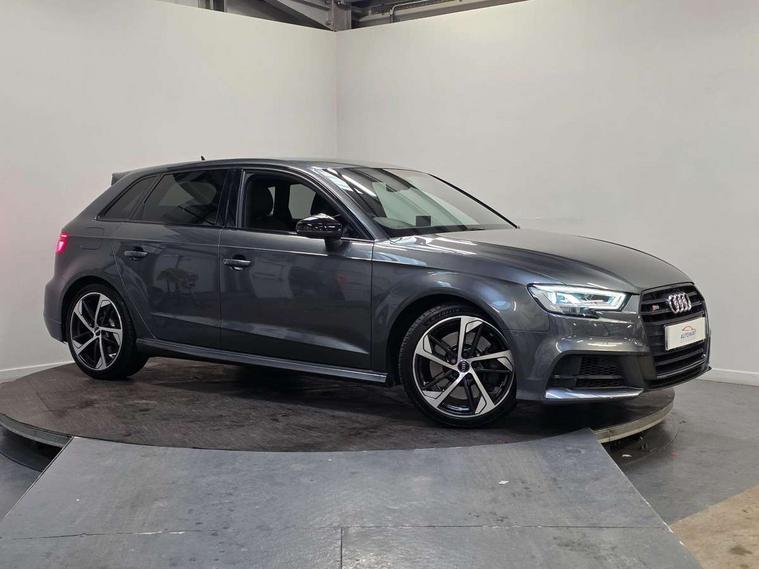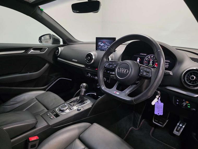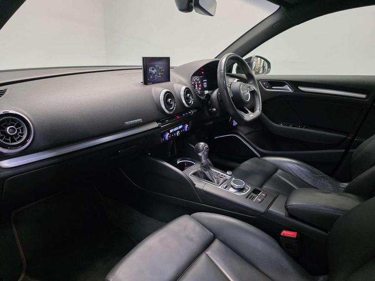 Audi drive select, Audi smartphone interface, Automatic start/stop system, Colour driver's information system display, Instrument dials with S3 logo, Mobile telephone preparation - bluetooth interface, Progressive power assisted steering, SD card based MMI navigation, Service interval indicator, Speed limit display, Voice control system, Voice recognition for navigation system, S sports suspension, 2 USB interfaces and Aux-In jack, Audi music interface, Bang and Olufsen sound system, CD player, DAB Digital radio, MMI radio plus with 7" colour MMI screen and MMI controller, Online entertainment, Audi Beam uses LEDs to project the Audi Sport logo, Auto dimming interior rear view mirror, Body colour roof spoiler with aerodynamic inserts in high gloss black, Electric front windows, Electric rear windows, Electrically adjustable and heated door mirrors with integrated LED side indicators, Headlight washers, Heated windscreen washer jets, LED daytime running lights, Light and rain sensors, Privacy glass - dark tinted rear and rear side windows from B-pillar backwards, Rear wiper, Sport specific side air inlet grille and diffuser insert, Twin oval chrome trimmed exhaust tailpipes, 3 adjustable rear headrests, 3 spoke leather multifunction sports steering wheel with paddle shift gear change controls, 60/40 split folding rear seat, Adjustable front centre armrest, Black cloth headlining, Dual zone electronic climate control, Front and rear interior lights with delay, Front/rear floor mats, Heated front seats, Height and reach adjustable steering wheel, Illuminated door sill trims with S logo, Isofix child seat preparation for front passenger/outer rear seats inc passenger airbag deactivation including top tether, Lashing point in luggage compartment, Manual height adjustable front seats, Stainless steel pedals, Storage compartments in doors side trims, centre console and under front drivers seat, Black styling pack - A3/S3, LED interior light pack - A3/RS3, Non smoking pack - A3, Storage and luggage pack - A3/RS3, 3 point seatbelts on all seats, ABS/EBD, Active bonnet, Active front headrests, Airbags - front driver/passenger, front & rear side, curtain, drivers knee, ASR, EDL, Electromechanical parking brake, ESC - Electronic Stability Control + traction control, Front passenger airbag deactivation, Hill hold assist, Manual rear child locks, Multi-Collision braking, Seatbelt warning, Tyre pressure warning, Warning triangle and first aid kit, Anti theft alarm, Anti-theft wheel bolts, Remote control central locking, Thatcham category 1 alarm + immobiliser, Aluminium air vent surrounds, Aluminium trim elements, Matt brushed aluminium inlays, Tool kit, Tyre repair kit,