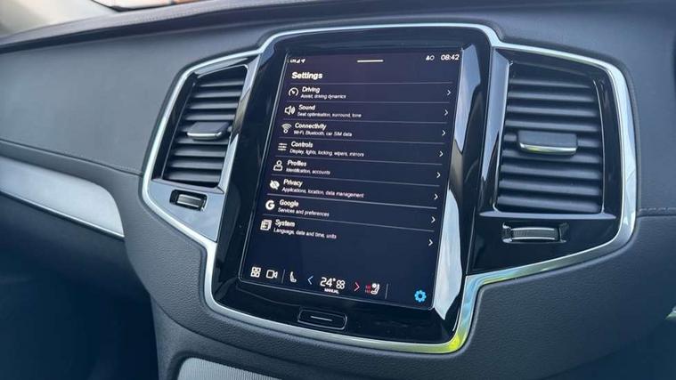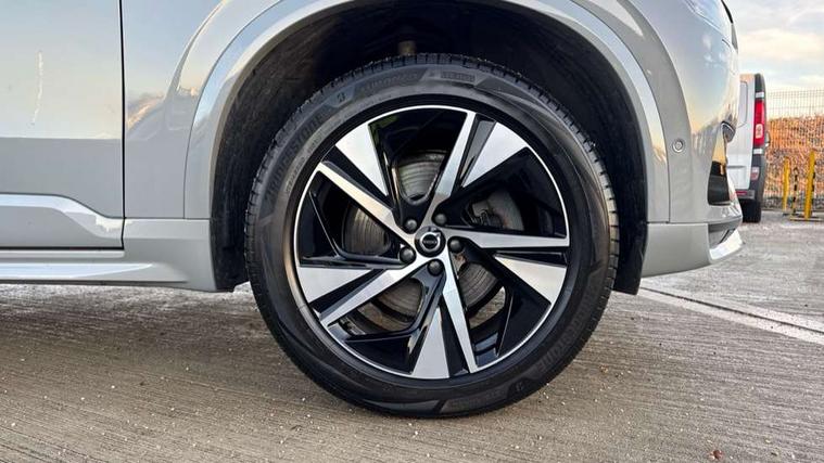 12.3" Progressive Driver Display, 360 degree surround view parking camera with side proximity sensors, 9" centre console portrait touch screen, Adjustable steering wheel force, Bluetooth hands free telephone connection, Driver alert control with lane keeping aid, Driver assistance (pilot assist and adaptive cruise control), Driver awareness - Blind spot information system with steer assist, cross traffic alert with autobrake and rear collision warning and mitigation, Emergency call service, Front and rear park assist, Google Automotive Services - Navigation with Voice recoginition and google assistant, Handsfree power tailgate opening and closing, Oncoming Lane Mitigation, Power operated tailgate, Service interval indicator, Speed limiter, Speed sensitive steering, Trip computer, Volvo on call, Wireless Mobile Phone Charger, 8 speed automatic transmission with start/stop + manual change functions, Touring chassis, DAB Radio (Digital Audio Broadcasting), Premium Sound by Harman Kardon, dirac unison, dolby pro logic II surround sound, 13 speakers/600W output and fresh air subwoofer, Steering wheel remote infotainment controls, Active bending headlights with adaptive shadow technology, Adaptive brake lights with high level LED brake lights, Auto dimming interior + exterior mirrors, Auto folding and heated power door mirrors, Automatic headlight levelling system, Automatic LED Headlights + Active high beam incorporating daytime running lights, Body colour bumpers, Front and rear power windows, Headlight cleaning system, Heated front windscreen, High gloss black door mirrors and window surround, High gloss black front and rear bumper deco, High gloss black mesh front grille with surround, Home safe and approach lighting, Integrated roof rails in high gloss black, LED front fog lights with cornering light function, Power glass tilt and slide panoramic sunroof with sun curtain, Puddle lights, Rain sensor with automatic windscreen wiper activation, Rear side wing doors, Rear wash/wipe with intermittent wipe setting, Roof antenna, Roof spoiler, Visible VIN plate, 12V socket front tunnel console, rear passenger compartment and cargo area, 2 seat bench in 3rd row, 2nd Row centre armrest with and cupholders, 3 seat bench in 2nd row, 4 zone electronic climate control with Clean zone air quality system + pollen filter, A-pillar parking ticket holder, Advanced interior air cleaner PM2.5, Air conditioning for 3rd row of seats, Ambient door and instrument panel lighting, B Pillar ventilation, Bright metal luggage threshold, Centre console cupholders and storage, Floor mats, Front and rear door pocket and front cupholder illumination, Front and rear reading lights, Theatre lighting and centre armrest storage illumination, Front footwell and side step illumination, Front headrests, Front seat cushion extensions, Heated front seats, Heated rear seats, Heated steering wheel, Height/reach adjustable steering column, Illuminated front and rear tread plates, Illuminated luggage compartment, Illuminated tailgate, Illuminated vanity mirrors + ticket holder, Illumination lockable glovebox compartment, Integrated sun curtains in rear doors, Isofix outer rear child seat preparation in 2nd row, Load protection net, Luggage compartment divider with grocery bag holder, Outboard armrest with cupholder and storage for third row passengers, Power driver seat with multi directional lumbar support and memory for seat and exterior mirrors, Power folding 2nd row headrests, Power passenger seat with multi directional lumbar support and memory, Rear footwell and side step illumination, Rear headrests, Semi automatic load cover, Single front passenger seat, Underfloor luggage compartment storage, 7 three point seatbelts, City safety with steering support includes pedestrian, cyclist and large animal detection and front collision warning with full auto brake, Drivers knee airbag, Dual stage driver/passenger airbags, First aid kit, Front seats SIPS airbags, Hill descent control - off drive mode, Hill start assist, IC (Inflatable Curtains) - Full Length, Passenger airbag cut-off switch, Power child locks on rear doors, Power parking brake with auto hold function, Road sign information display, Run off Road Mitigation, Run off Road Protection, Seatbelt reminder and pretensioners for all seats, SIPS (Side Impact Protection System), Slippery road and hazard light alert, Stability and Traction Control with Spin control, Engine Drag Control and Corner Traction Control, Tyre pressure monitoring system, Vehicle deceleration control with Anti-lock Brake System, Electronic Brake Distribution and Emergency Brake Assist, Warning triangle, WHIPS whiplash protection system - front, Anti-theft alarm including immobiliser/volume sensor + level sensor, Care key with user defined top speed, Key integrated remote control central locking + fuel flap with deadlocking system and auto open/close power windows, Keyless drive includes keyless entry and keyless start, Locking wheel nuts, Private locking for glovebox and tailgate, Tailored Instrument Panel and Door Tops with Contrast Stitching, Tempa spare wheel and jack,