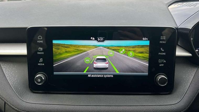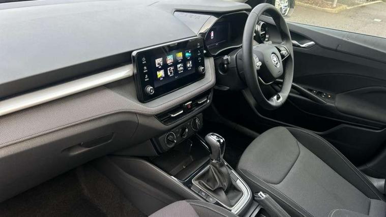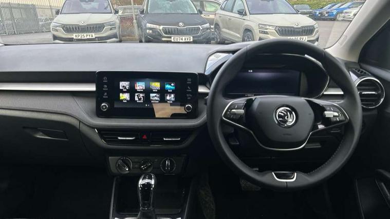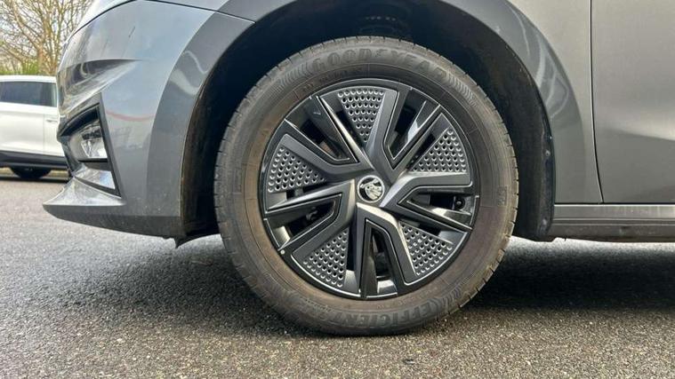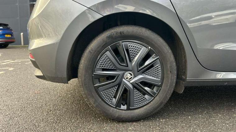 Advanced driver attention and drowsiness monitor, Bluetooth connection, Electromechanical power steering, Exterior temperature gauge, Service interval indicator, Traffic sign recognition, Virtual cockpit with 10.25" colour display, Wireless SmartLink for Apple CarPlay and Android Auto, 6 Speakers (4 in front and 2 in rear), Auxiliary socket for external MP3 player, DAB digital radio reception, Body coloured bumpers, Dimming rear view mirror with black frame, Door mirror integrated indicators, Front and rear electric windows, Front window wiper intermittent control, Headlight range control - Automatic, Ice scraper in fuel cap, LED daytime running lights with coming and leaving home feature, LED rear lights, Privacy glass, Rear LED fog light, Rear side wing doors, Rear window wiper with washing nozzles, Roof mounted spoiler, SKODA tailgate lettering in chrome, Third brake light, 2 reading lights in front and 2 reading lights in rear, 3 rear headrests, Backrest split and folding, Central console with removable cup holder and storage box, Chrome handbrake release button, Fabric upholstery, Front centre armrest, Gearshift knob/handle in leather, Grain satin black interior door handles, Hand brake lever handle in leather, Height adjustable front headrests, Height adjustable front seats, Height adjustable steering wheel, ISOFIX and TopTether anchorage points to the outer rear seats, ISOFIX and TopTether on the front passenger seat, Luggage compartment lighting, Manually adjustable lumbar support in front seats, Pollen filter, Rear seat bench unsplit, Single front passenger seat, Storm grey headlining, Sun visors with mirror and airbag label on passenger side, Textile floor mats, Ticket holder, Umbrella in drivers door, 3-point height adjustable front seats belts with pretensioner and force limiter, Automatic warning lights in case of crash, Driver and passengers airbag with switch off function, e-Call+, ESC including ABS, MSR, ASR, EDS, HBA and XDS, Front and rear seat belt warning, FRONT ASSIST (AEB City and AEB Inter Urban), Front side airbags, Head airbags, Hill hold control, One tone horn, Pedestrian protection, Three rear 3-points safety seat belts with pretensioner and force limiter including stop function for outer rear seat belts, Tyre pressure monitoring system, Anti-theft alarm system including immobiliser, interior monitoring, backup horn, and towing protection, Central locking with radio remote control, interior controls, SAFE function and 2 foldable keys, Colour Edition air vents, Grain satin black central console cover, Metallic grey upper decorative trim, Satin black door and side trim panel in front, Textile Kota grey lower decorative inserts, Anti-theft wheel bolts protection, Super-low rolling resistance tyres,