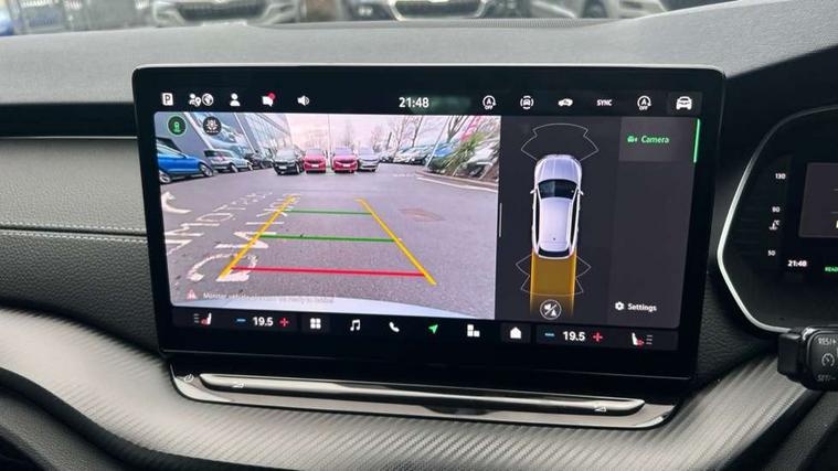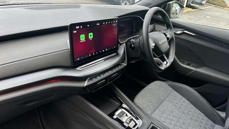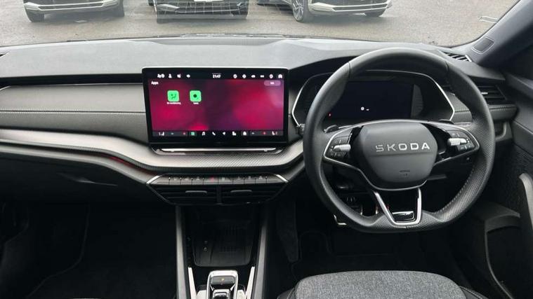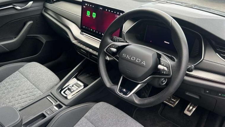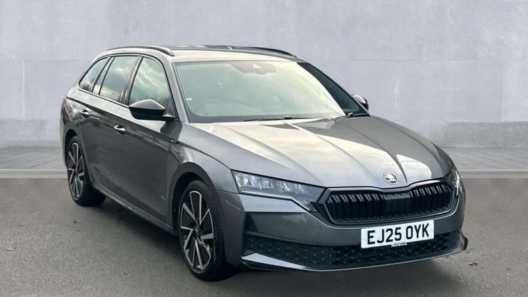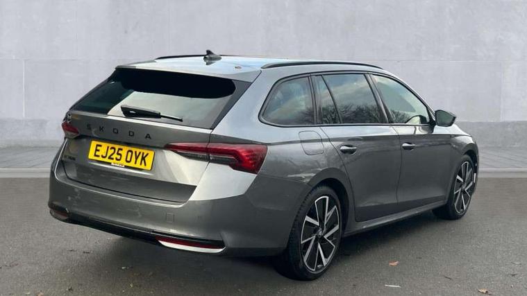 1x USB Typc C port in rear view mirror, 4x USB Type C ports - 2x in front centre console and 2x in rear (45W), Drive mode selection, Driver fatigue sensor, eCall emergency system, Front assist system, Progressive dynamic steering, Traffic sign recognition, Turn Assist, Virtual Cockpit - 10.25" digital display, Voice control system, Wireless charging (15W) with cooling function, Wireless SmartLink for Apple CarPlay and Android Auto, Sports suspension with 15mm lower, 13" touchscreen display with navigation, DAB Digital radio, Aero front windscreen wipers with intermittent function, Auto dimming rear view mirror, Body colour bumpers, Body colour door handles, Electric front and rear windows, Exterior gloss black sports styling including front grille, window surrounds, door mirrors and badging, Gloss black diffuser, Gloss black roof rails, Gloss black spoiler, Heated rear windscreen, High beam control, High level third brake light, Ice scraper in fuel cap, LED daytime running lights, Logo projection in front doors, Rain and light sensors, Rear fog light on one side, Rear privacy glass, Rear side wing doors, Rear window wiper, 12 volt socket in boot, 3 rear headrests, 3 seat bench in 2nd row, 4 foldable roof handles, Aluminium pedals, Front head restraints, Front sport seats, Heated front seats, Illuminated glovebox, Interior door handles in dark chrome, Jumbo Box storage, Luggage compartment lighting x2 lights, Mechanical rear seat release from boot, Single front passenger seat, Steering wheel in black leather with black stitching, Storage compartments in left and right of boot, Sun visors with mirrors, Sunglasses storage, Ticket holder, Umbrella in door panel, Unsplit rear bench seat, split folding backrest with centre armrest with cupholder, SportLine Design Selection pack - Octavia, 3x3 point rear seat belts, Alarm with interior monitoring, tilt sensor and back up horn, Curtain airbags and front side airbags, Driver and front passenger airbags, Drivers knee airbag, Electronic parking brake, ESC including ABS, EBV, MSR, ASR, EDS, HBA, DSR, Front central airbag, Hill hold assist, ISOFIX on front passenger seat and outer rear seats, Passenger airbag deactivate switch, Three point seat belts in front and rear, Two tone horn, Tyre pressure monitor, Visual and acoustic seat belt reminder, Warning reflectors in front door, Anti-theft wheel bolts, Keyless start/stop, Remote central locking, Gloss black air vent surrounds,