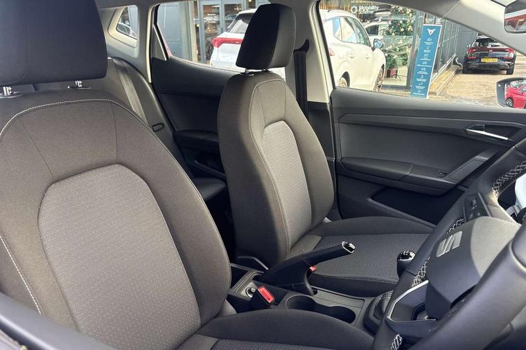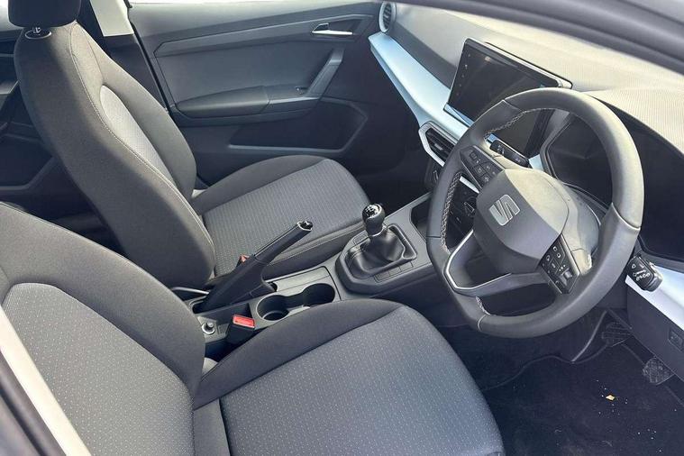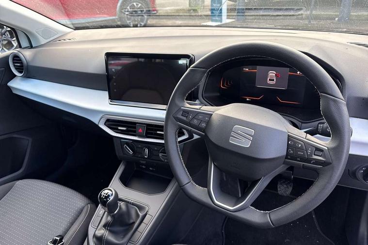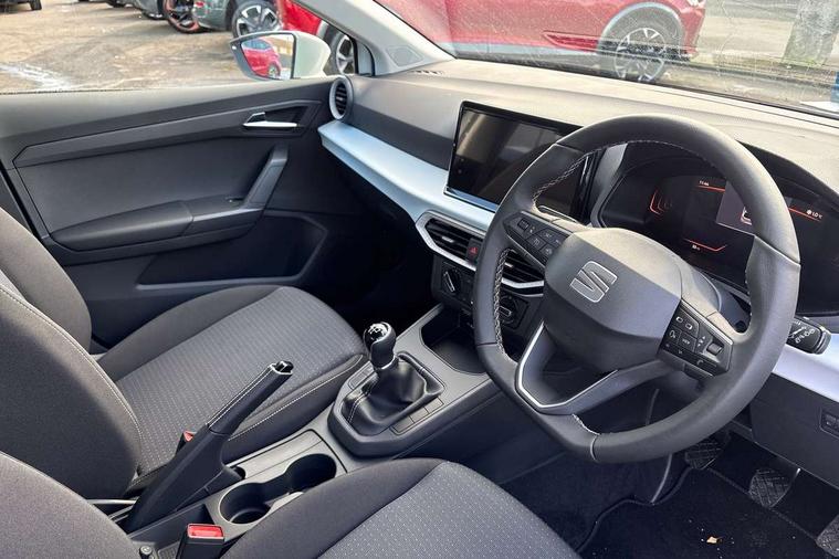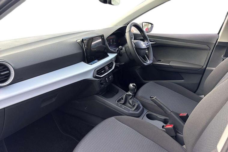 'Lights On' Reminder warning buzzer, 8" Digital cockpit, 9.2" touchscreen navigation system with type C USB socket, Voice control and DAB/AM/FM radio, Auto start and stop system, Bluetooth audio streaming with handsfree system, Cruise control, Digital clock, E-call, Full link smartphone integration with mirror link, wireless apple carplay, Google android auto + USB Type C cable for apple and android devices, Lane assist, Low fuel warning light, Outside temperature gauge, Power Steering, Rear parking sensor, Seat connect plus with safety, service, remote and online, SEAT logo boot release, Speed limiter, Traffic sign recognition, Trip computer, Comfort suspension, Auxiliary input socket, Radio/MP3 player, SD card slot, Steering wheel mounted controls, Anti theft roof antenna, Body colour bumpers, Body colour door handles, Body colour door mirror caps, Dimming interior rear view mirror, ECO LED automatic headlights and LED daytime running lights, Electric front windows, Electric headlight adjustment, Electrically adjustable door mirrors, Front/rear fog lights, LED tail lights, Rain sensor, Rear side wing doors, Rear wiper, Third brake light, 3 seat bench in 2nd row, 60/40 split folding rear seat, Air conditioning with dust and pollen filter, Chrome interior detailing and grey headlining, Cloth upholstery, Comfort seats, Front courtesy lights, Front cupholders x 2, Front reading lights, Gear shift indicator, Glovebox, Grey interior air vents, Height adjustable front and rear headrests (five), Height adjustable front seats, Height/reach adjust steering wheel, Illuminated boot, Instrument lighting with brightness control, Isofix, Leather multifunction flat bottomed sports steering wheel, Passenger sunvisor, Single front passenger seat, Sunvisors with mirror and driver side card holder, Safety and driving pack (S) - Ibiza, 3 point seatbelts on all 3 rear seats, ABS, Active front headrests, Child locks on rear doors, Electronic stability control, Energy recovery system, Front assist forward collision warning and autonomous emergency braking, Front driver and passenger side airbags with curtain airbag and front passenger airbag deactivation, Hill hold control, Multi-Collision braking, Seat belt reminder for front and rear seats, Tiredness recognition system, Tyre pressure monitoring system, Electronic engine immobiliser, Locking wheel bolts, Remote central locking + deadlocks, 16" Design machined alloy wheels in Nuclear grey,