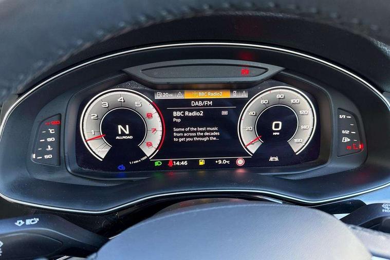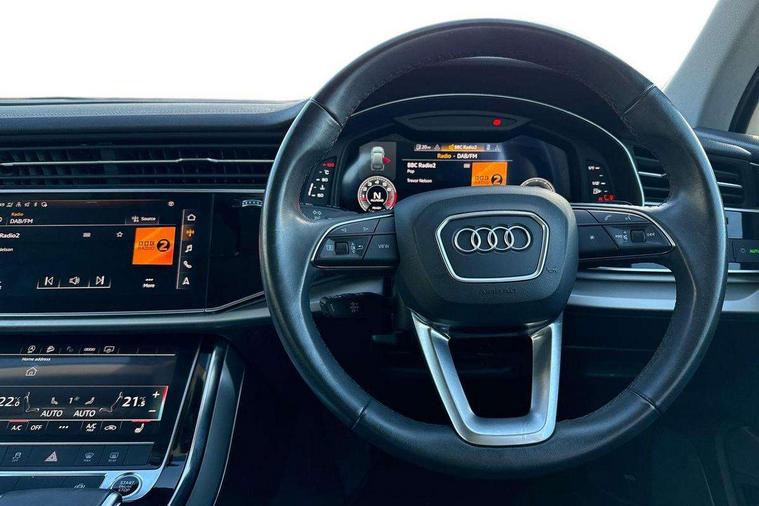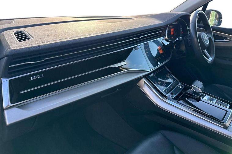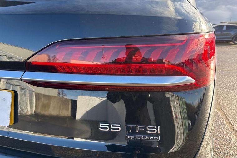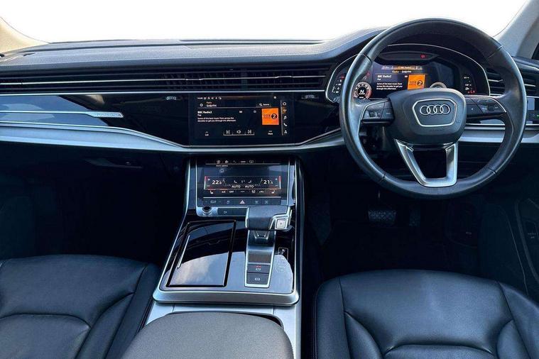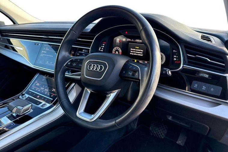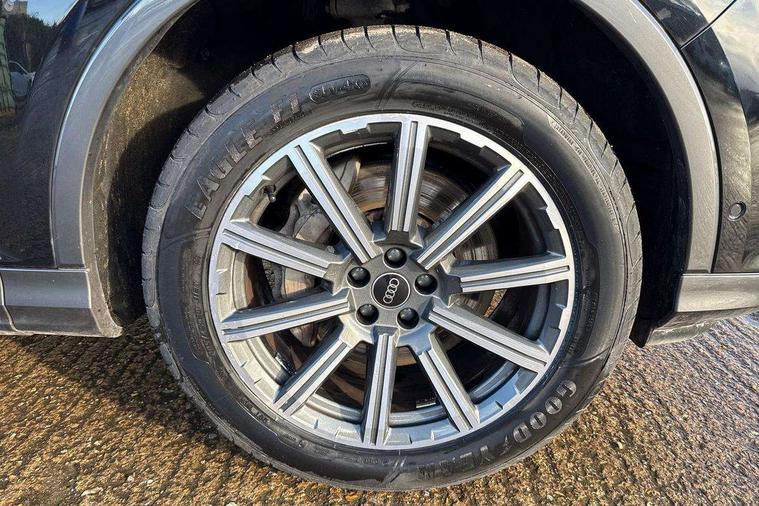 Audi connect safety and service (e-call), Audi connect with Amazon Alexa Integration, Audi drive select (Auto, Comfort, Dynamic, Efficiency, Individual, Off-road and All road), Audi virtual cockpit - 12.3" high-resolution LCD display with fully customisable instrument cluster, Bluetooth interface, Camera based traffic sign recognition, Electromechanical steering, MMI navigation plus with MMI touch screens includes 10.1" and 8.6" screens with haptic feedback, Natural voice recognition, Parking system plus with 360 degree display (front, rear and side sensors) - acoustic and visual park assist system, Power operated tailgate, Rear view camera, Smartphone interface includes wireless Apple carplay/Android Auto, Start/stop system, 48V Mild hybrid technology, 85 litre fuel tank, Adaptive air suspension, Quattro all wheel drive with self locking centre differential, Audi music interface - front 2 USB-C ports with charger and data functions, Audi sound system with 6 channel amplifier, 180 watt amplifying capacity and 10 loudspeakers including subwoofer, DAB digital radio module, 3rd brake light, Aluminium roof rails, Aluminium window trim, Auto dimming frameless rear view mirror, Body coloured door mirrors, Bumpers in contrast paint scandium grey finish includes door trim and wheel arch trim strips, inlays in door strip contain quattro embossing, Dark tinted Matrix LED headlights with dynamic front and rear indicators, Electrically adj heated/folding + automatically dimming exterior mirrors with memory + automatic kerb side function for passenger side exterior mirror, Heat insulating glass in windshield, Integrated LED indications in door mirrors, LED daytime running lights, LED rear tail lights, Rear side wing doors, Rear wiper, 2 seat bench in 3rd row, 2 zone automatic climate control, 3 seat bench in 2nd row, 7 seat layout with ISOFIX points for the front passenger seat and rear passenger seat, Comfort front centre armrest, Electric adjustable front seat with 4 way lumbar support, driver memory functionality, Folding rear seats, Front head restraints, Front/rear floor mats, Heated front seats, LED interior ambient lighting, Luggage compartment cover, Lunar silver fabric headlining trim, Rear head restraints, Single front passenger seat, Sunvisors with illuminated vanity mirrors, Twin leather upholstery, 3 point seatbelts on all rear seats, Audi pre sense front, Child locks on rear doors, Driver and front passenger, front side and curtain airbags, Electromechanical parking brake, Electronic Stabilisation Control (ESC) including ABS, ASR and EDL, Extended pedestrian protection measures, Hill hold assist, Seatbelt monitoring, Tyre pressure loss indicator, Warning triangle and first aid kit, Anti theft alarm, Anti-theft wheel bolts and wheel loosening detection, Keyless Go, Remote central locking, Silver grey interior inlays, Tool kit, Tyre repair kit,