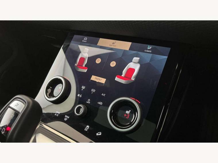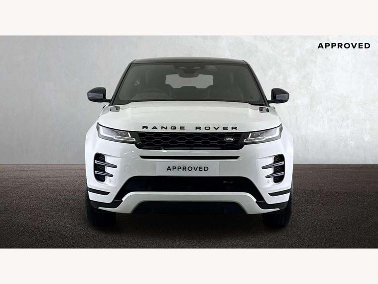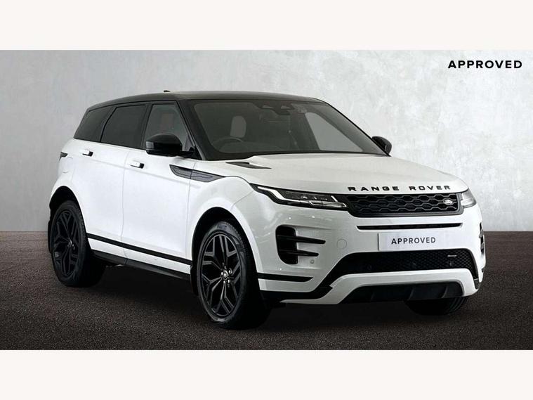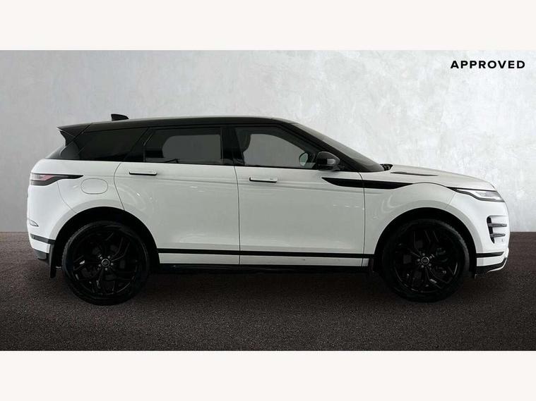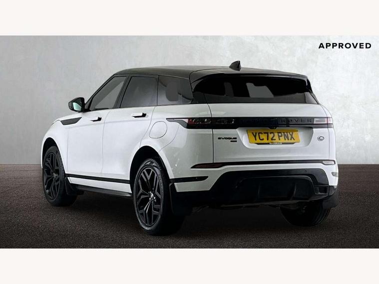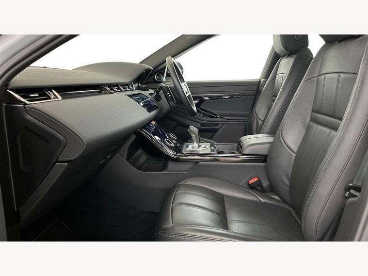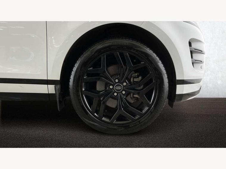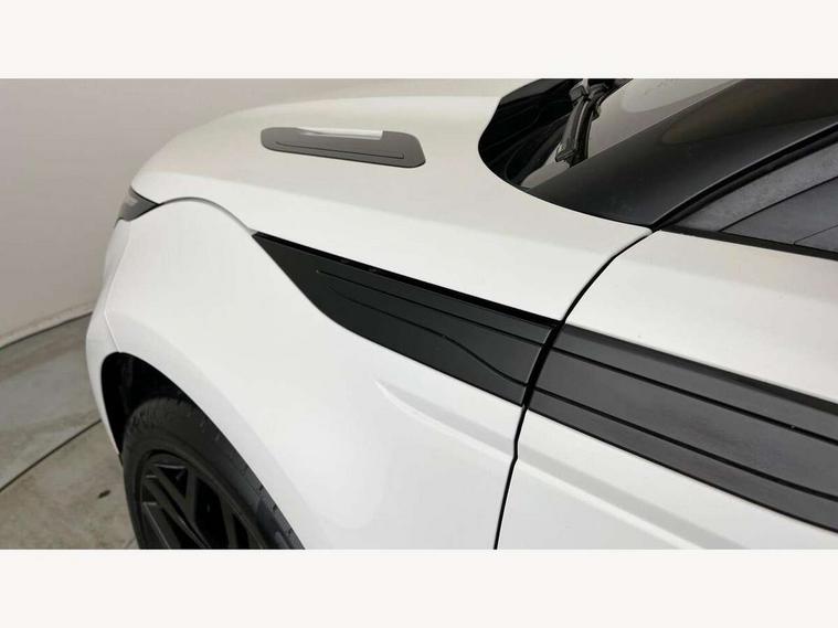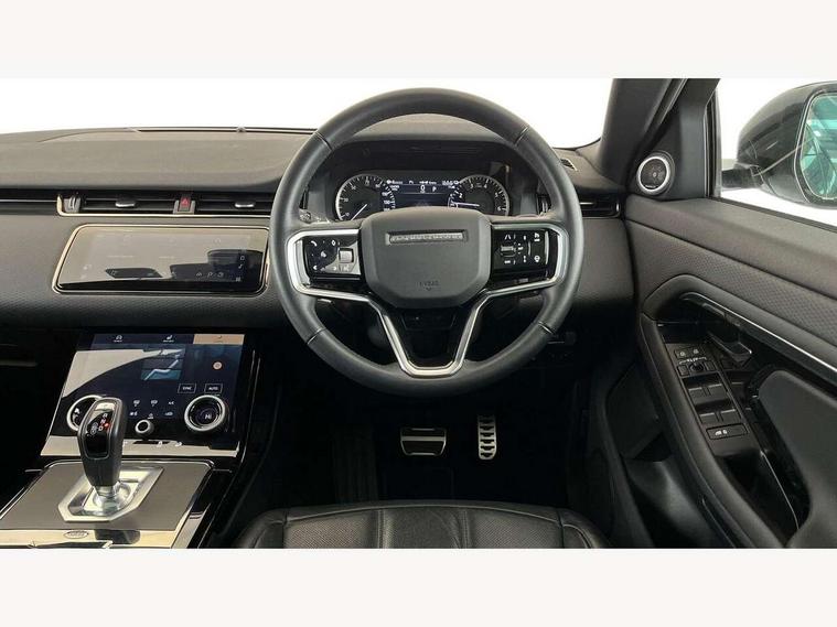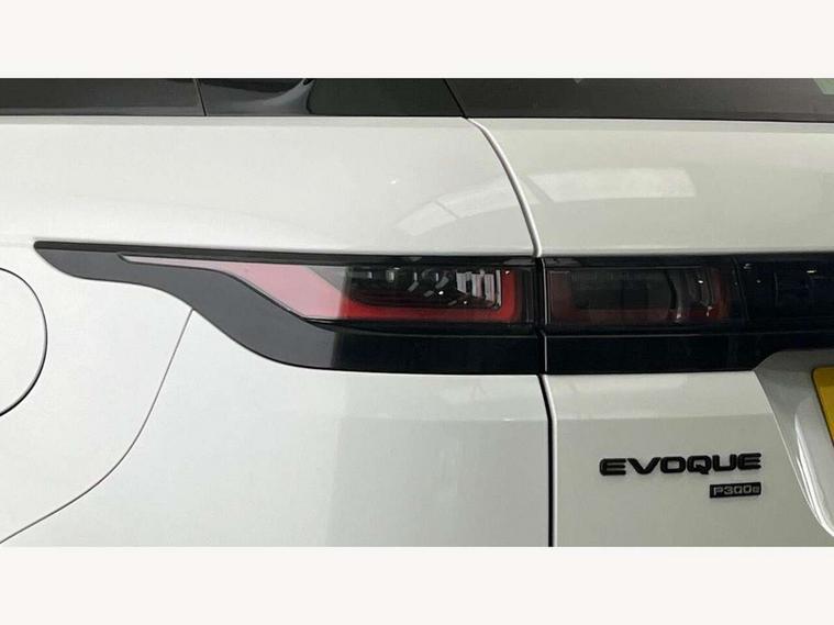 Adaptive cruise control, Android Auto, Apple car play, Bluetooth connectivity, Brake pad wear indicator warning light, Driver condition monitor, eCall emergency system, Electronic power assisted steering (EPAS), Front and rear parking aid, InControl remote, Land Rover InControl apps, Lane keep assist, Pivi pro connected includes upgraded infotainment, connected navigation pro, Nuance speech licence, Push button starter, Traffic sign recognition with adaptive speed limiter, Voice control system, 7 kW onboard charger, All terrain progress control, Electric rear axle drive, Home charging cable, Large fuel tank, Passive suspension, Public charging cable, Terrain Response 2 Auto, Digital Audio Broadcast radio-DAB, Steering wheel mounted controls, Auto headlights, Daytime running lights, Electric windows with one touch open/close and anti trap, Evoque and R-Dynamic badge, Flush deployable exterior door handles, Heated rear window with timer, Heated washer jets, Heated windscreen, P300e badge, Power fold, auto-dimming, heated door mirrors with approach lights and auto dimming driver side, Privacy glass, Rain sensing windscreen wipers, Rear fog lights, Rear side wing doors, Rear wiper, Tailgate spoiler, Third brake light, 40:20:40 split folding rear seats with centre headrest and armrest, Ambient interior lighting, Bright metal pedals, Heated steering wheel, Isofix system on outer rear seats, Overhead lighting console, Overhead stowage for sunglasses, Passive front head restraints, Rear air vents, Rear centre headrest, Rear head restraints, Satin chrome gearshift paddles, Single passenger seat, Sunvisors with illuminated vanity mirrors, Twin sliding front centre armrest, 3 rear 3 point seatbelts, Anti-lock braking system (ABS), Customer configurable autolock, DSC - Dynamic Stability Control, Electronic brake force distribution, Electronic parking brake, Electronic traction control, Emergency braking, Front and rear seatbelt reminder, Hill descent control, Hill launch assist, Low traction launch, Power operated child locks, Roll stability control, Six airbags - Driver and passenger airbags/driver knee airbag/front side airbag and curtain airbags, Torque vectoring brake, Tyre pressure monitoring system, Alarm, Immobiliser, Intrusion sensor, Locking wheel nuts,