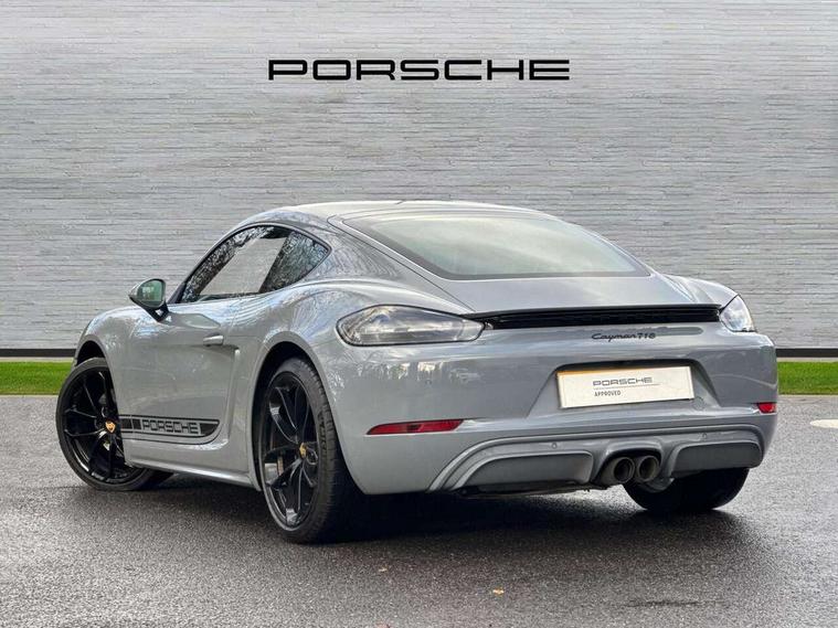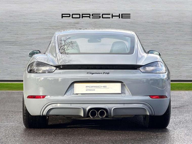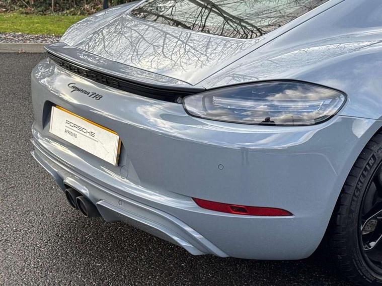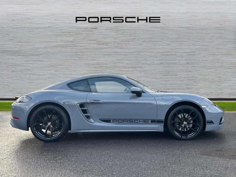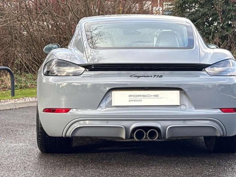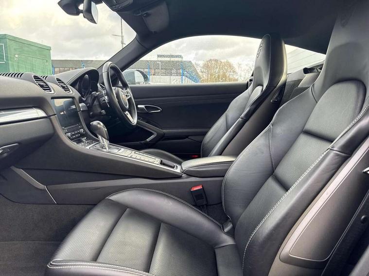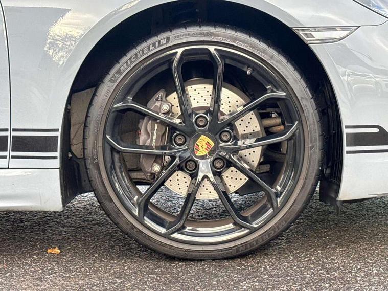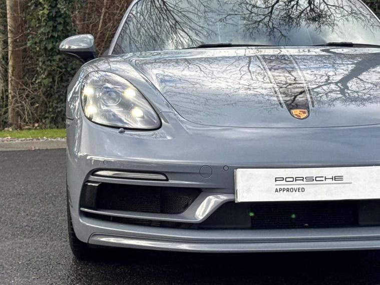 Auto start and stop system, Digital displays for vehicle speed, chosen gear, odometer, trip odometer and clock, eCall emergency call system, Instrument cluster with central rev counter and high-resolution 4.6 inch colour display, Porsche Communication Management (PCM) including online navigation module, mobile phone preparation, audio interfaces and voice control system, Reversing camera including front and rear park assist, 3-way catalytic converters and on-board diagnostics for monitoring emission control system and coated particulate filter, 4 valves per cylinder, Aluminium block and cylinder heads, Direct fuel injection (DFI), Gasoline particulate filter, Integrated dry-sump lubrication with an on-demand oil pump, Porsche Doppelkupplung (PDK), Porsche Stability Management (PSM) with ABS, advanced brake functions, Rear wheel drive, Turbocharger with intercooler, Two seater vehicle with mid mounted engine, Water cooled with thermal management, DAB Digital radio, Integrated 4G/LTE compatible SIM including data for the Porsche Connect Services, Integrated compatible SIM including Porsche Connect Services, Navigation incl porsche + Apple Carplay, connect module, wireless internet access, carfinder, remote vehicle status, remote service and vehicle track, Wifi and music streaming, 3rd brake light, Auto deploying rear wing, Automatic headlight activation including welcome home lighting, Automatically dimming mirrors with integrated rain sensor, Automatically extending rear boot spoiler, Body colour bumpers, Body colour door handles, Electrically adjustable heated exterior mirrors on door waist rails, aspherical on driver's side, Green tinted heat insulating glass, Grey top tinted windscreen, Heated rear windscreen, Intelligent lightweight body in Aluminium/Steel composite construction, Power windows with one touch operation and door seal protection, Rain sensor, Rear boot, Separate auxiliary lights in the front end with LED indicators and position lights, Twin tailpipe with special look in highly polished chrome plated stainless steel in black, Wide opening rear hatch with heated screen, Windscreen washer system with two wiper speeds and washer jets, 12V sockets in passenger footwell and centre console storage compartment, 718 logo on gear lever, Adjustable fan with air recirculation and defroster functions, Ascending centre console with uncovered storage compartment and closed storage compartment, Clothes hooks on front seat backrests, Footwell illumination, Front and rear luggage compartments, Front headrests, Heated seats, LED reading lights, orientation, ignition lock, additionally luggage compartment and glove compartment lighting, Lockable glovebox, Porsche crest embossed in headrests, Single front passenger seat, SPORT button to activate dynamic driving settings for engine, transmission (with PDK), Storage compartments in each doors, Two individual cup holders (Passenger side, integrated into dashboard trim strip), Two zone automatic climate control, 3 point automatic seatbelts, ASR, Electrically controlled parking brake, Front and rear 4 piston aluminium monobloc fixed calipers, disc internally vented and cross drilled, front/rear disc diameter, brake calipers in black, Front and rear lightweight spring strut axle, Front seatbelt pretensioners + load limiters, Full size driver and passenger airbags, Passenger airbag deactivate switch, Porsche side impact protection doors with thorax airbag in outer backrest side bolster and head airbag for driver/passenger in door panel, Tyre pressure monitoring system, Alarm system with interior surveillance, Anti-theft wheel bolts, Dashcam prep, Engine immobiliser with in key transponder, central locking and remote control, Tyre repair kit, Wheel centres with full colour Porsche crest,