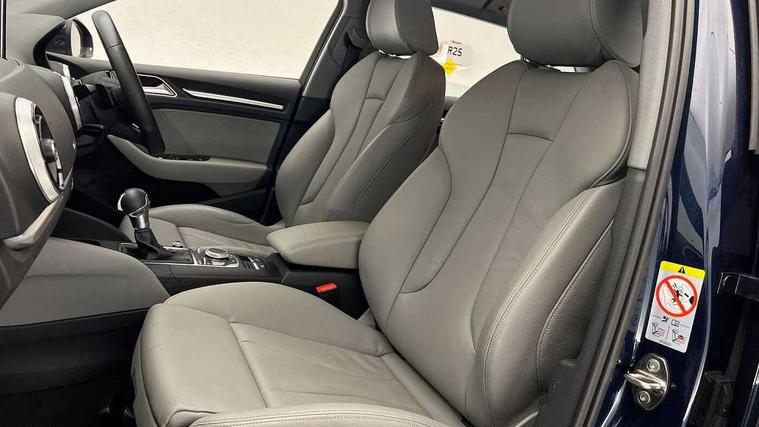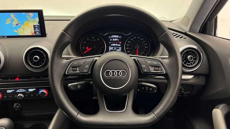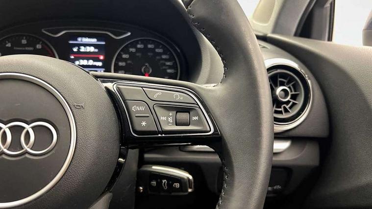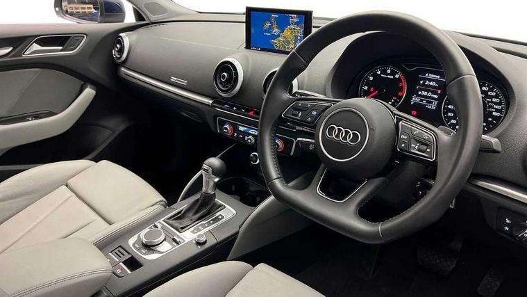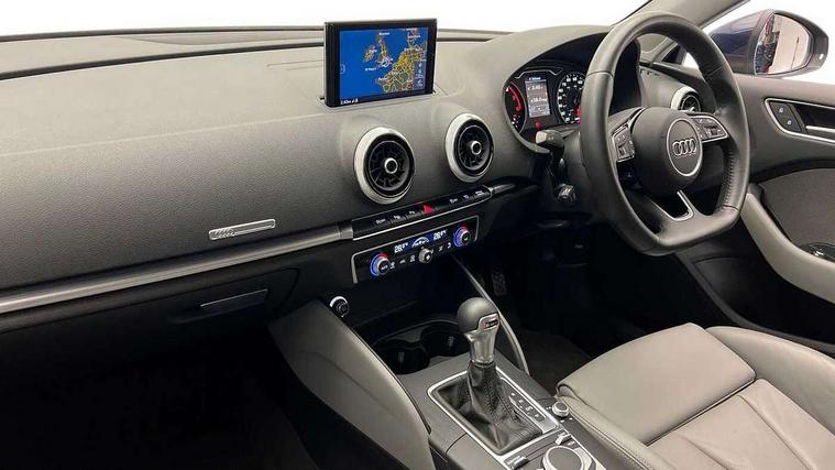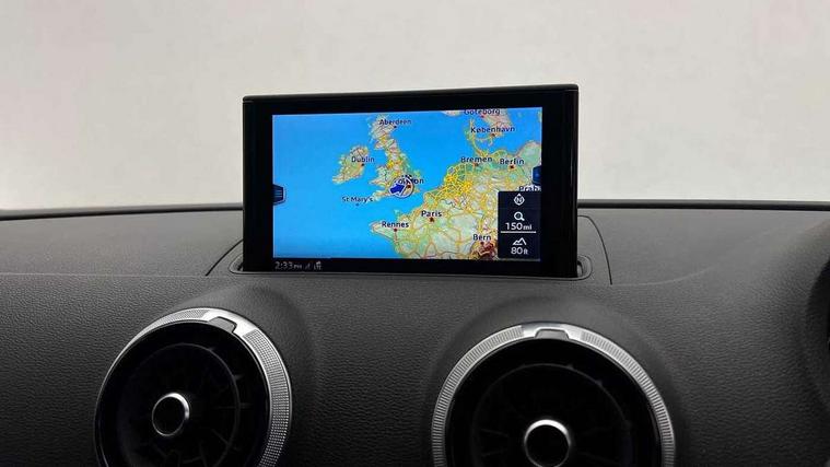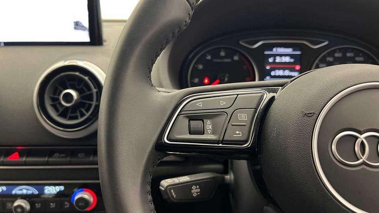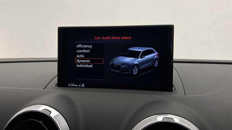 Audi connect, Audi drive select, Audi smartphone interface, Automatic start/stop system, Colour driver's information system display, Electro - mechanical power assisted steering, Mobile telephone preparation - bluetooth interface, SD card based MMI navigation, Service interval indicator, Speed limit display, Voice control system, Voice recognition for navigation system, 2 USB interfaces and Aux-In jack, Audi music interface, CD player, DAB Digital radio, MMI radio plus with 7" colour MMI screen and MMI controller, Aluminium window trim, Auto dimming rear view mirror with light and rain sensors, Body colour bumpers, Body colour door mirrors, Body colour roof spoiler with aerodynamic inserts in high gloss black, Chrome exhaust tailpipes, Electric front windows, Electric rear windows, Electrically adjustable and heated door mirrors with integrated LED side indicators, Heated windscreen washer jets, Matt black radiator grille, Rear wiper, Sport specific side air inlet grille and diffuser insert, Xenon headlights with LED Daytime running light, 3 adjustable rear headrests, 4 lashing points to secure luggage, Adjustable front centre armrest, Aluminium door sill trims, Dual zone electronic climate control, Front and rear interior lights with delay, Front/rear floor mats, Glovebox light, Height and reach adjustable steering wheel, Isofix child seat preparation for front passenger/outer rear seats inc passenger airbag deactivation, Rock grey headlining, Storage compartments in doors side trims, centre console and under front drivers seat, Non smoking pack - A3, Storage and luggage pack - A3/RS3, 3 point seatbelts on all seats, ABS/EBD, Active bonnet, Active front headrests, Airbags - front driver/passenger, front & rear side, curtain, drivers knee, ASR, EDL, Electromechanical parking brake, ESC - Electronic Stability Control + traction control, Front passenger airbag deactivation, Hill hold assist, Manual rear child locks, Multi-Collision braking, Seatbelt warning, Tyre pressure warning, Warning triangle and first aid kit, Anti theft alarm, Anti-theft wheel bolts, Remote control central locking, Thatcham category 1 alarm + immobiliser, Aluminium air vent surrounds, Aluminium mistral silver inlay, Aluminium trim elements, Tool kit, Tyre repair kit,