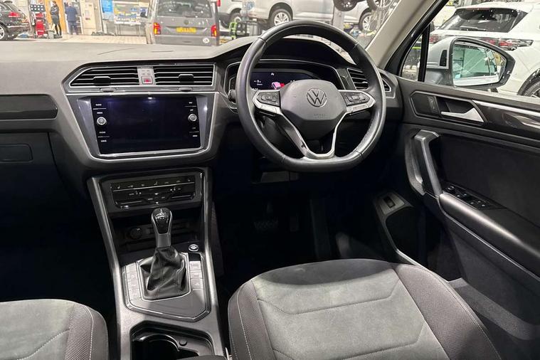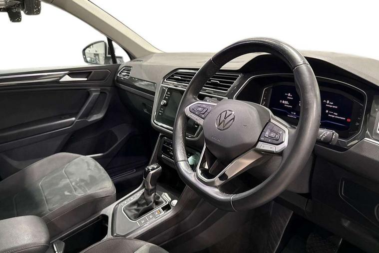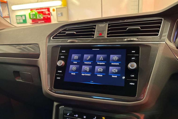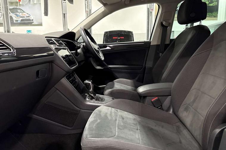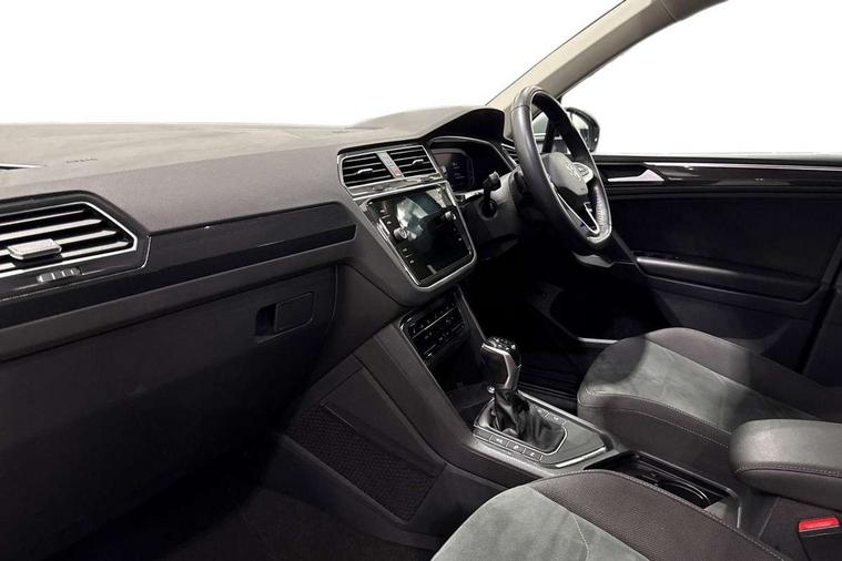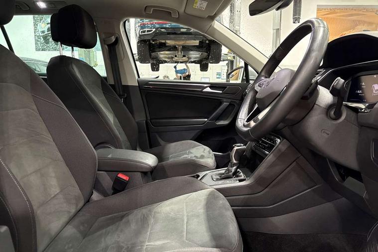 Adaptive cruise control ACC stop and go including speed limiter, App-Connect incl. App-Connect Wireless for Apple CarPlay and Android Auto, Bluetooth phone integration system, Digital Cockpit Pro - Active info display, Distance control assist, Driver alert system, Driver profile selection, Dynamic road sign display, eCall emergency call system, Electromechanical speed sensitive power steering, Engine start/stop button, Lane keeping system Lane Assist, Lights on warning, Motorised electric tailgate operated via key fob, drivers door and foot movement under tailgate, Multifunction front facing camera, Outside temperature display, Premium multifunction display with multi colour display, Remote control boot opening, Rev counter, Revision / skills operating concept travel assistant, Service interval indicator, Speed limit display, Start/stop system with regenerative braking, Tailgate/trunk lid unlocking from outside, Trip computer, Warning sound and light for doors and tailgate open, Battery regeneration during braking, XDS electronic differential lock for improved traction and handling, 2 USB-C ports in the front, 1 USB-C charging socket on the center console in the rear, Diversity antenna for FM reception, Radio, SD card slot, Simultaneous pairing of 2 compatible mobile devices, SMS functionality - read, compose and send SMS messages using touch-screen display, Title and cover art display, Aluminium door sill protectors, Auto dimming interior rear view mirror, Automatic headlight control system, Body colour door handles, Body coloured bumpers, Body coloured door mirrors with integrated indicators, Coming/leaving home lighting function, Dynamic headlight range control, Front and rear electric windows, Heated rear window, High level 3rd brake light, IQ light-Adv high beam, Dynamic light assist for LED matrix headlamp+LED separate DRL+DCL, dark red rear LED tech, Poor weather light+ cornering light, Laminated safety glass windshield, heat and sound insulating, LED rear number plate lights, Poor weather light and cornering light, Privacy glass for rear side windows and rear window, Rain sensor windscreen wipers, Rear exhaust tailpipe, Rear fog lamp, Rear side wing doors, Rear windscreen washer and wiper with interval delay, Side and rear windows in heat insulating glass, Tilting and sliding panoramic sunroof with rear panoramic sunroof, Trailer Stability Programme, Windscreen wipers/ intermittent wipe + 4 position delay, 12V outlet in center console rear and in luggage compartment, 12V outlet in front and tray, 2 cup holders in front, 2 LED front reading lights, 2 LED rear reading lights, 3 bench rear seats in 2nd row, 3 rear headrests, 4 load lashing points, 40:20:40 split folding rear seats, Air Care Climatronic 3 zone automatic climate control with enhanced air filter and controls in the rear, Backrest release for left front seat, Climate control unit rear with touch function, Door and side trim panel in foam film and woven fabric, Front + rear carpet mats, Front centre armrest, Front footwell illumination, Front seats head restraints (x-adjustment), Height adjustable front seats, Height/reach adjust steering wheel, Instrument lighting white adjustable panel illumination, Interior light with delay, Isofix Preparation 2 Rear child seats, Leather gear knob, Lockable cooled glovebox, Luggage compartment lighting, Luggage net, Rear bench seat asymetrically split folding, longitudinally movable and folding with load-through hatch and center armrest, Remote unlocking for rear seat backrest, Removable luggage cover, Removable rear headrests, Safety optimised front head restraints, Single front passenger seat, Sliding/reclining rear seats, Standard rear seat release, Storage compartment in driver's door, Storage compartment in passenger's door, Storage compartment in rear doors, Storage compartments in luggage area left and right, Storage tray on dashboard, Sun visors with illuminated vanity mirrors, Top front comfort seats, Variable boot floor, height adjustable and removable, Ambience pack - Tiguan, Chrome pack - Tiguan, Easy open and close pack with safelock - Tiguan, 3 point seat belt for centre rear seats, 3 point seat belts with seat belt pretensioners for the outer rear seats, Active bonnet, Curtain airbags for front and rear passengers, Driver/Front Passenger airbags, Drivers knee airbag, Electronic parking brake with auto hold, Electronic Stability Control with driver steering recommendation, ABS, ASR, EDL, EDTC and trailer stabilization, Front assist with autonomous emergency braking (for Adaptive Cruise Control ACC up to 130 mph), Front disc brakes, Front passenger airbag deactivation, Front side airbags, Height adjustable front 3 point seatbelts + pretensioners, Hill hold control, Manual child proof rear door locks, Pedestrian monitoring system, Power assisted brakes, Proactive passenger protection system in combination with front assist, Rear disc brakes, Rigid safety cell with front and rear crumple zones, Two tone horn, Warning sound and light for front seat belts if unfastened, Anti theft alarm system with interior monitoring, backup horn and towing protection, Anti theft wheel bolts, Central locking system with safelock radio remote control and 2 remote control folding keys, Electronic engine immobiliser, Tool kit,