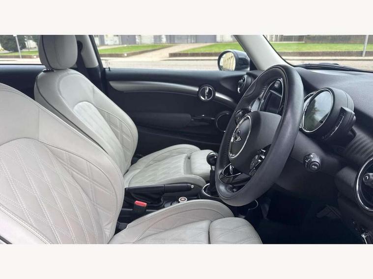 Automatic start/stop function with brake energy recuperation, Compatible mobile phone bluetooth with audio streaming, Electro-mechanical speed dependant steering assistance, Instrument cluster, Mini E-call, MINI TeleServices, On board computer, Service interval indicator, 6 Speed manual transmission including gear change indicator display, Double Vanos system, Fully variable valve control, High precision injection, 6.5" touchscreen with LED ring, FM tuner and DAB digital radio, Automatic headlight activation switch, Body colour fuel filler cap, Chrome border high gloss black slats radiator grille, Chrome line exterior, Dynamic brake lights, Electric front+rear windows, Heated rear window, Heated windscreen washer jets, LED headlight with closed ring and daytime driving lights, Left exhaust tailpipe with chrome finisher, Metal door sill strips with MINI imprint, Model logo Cooper on right of tailgate, Radiator grille bars, tailgate handle, lower front grille grating, rear central fog light in chrome, Rain sensor window wipers, Rear fog lights, Rear LED lights with union jack design, Rear window wiper, Side scuttle panel with integrated indicator, Sun/heat protection glass, White indicator lenses, 12V Accessory socket in centre console, 4 lashing eyes in luggage compartment, 60/40 split folding rear seat, Air vents, gear lever base, speakers in doors, door handles in chrome, Chrome interior highlights, Cupholders, Front and rear head restraints, Front and rear isofix with front passenger airbag deactivation, Glove compartment, Height and length steering column adjustment, Interior lighting with 12 basic colours selectable via toggle switch in roof, Knee roll and door armrests, Leather gearshift lever and handbrake gaiters, LED reading lights, vanity mirror lights, front foot well light and spotlight on front seats, Manual air conditioning, Mechanical seat adjustment, driver seat height adjust, forward/back and front seats backrest, Mini logo projection on floor from drivers exterior mirror, MINI Yours leather steering wheel with silver contrasting stitching with MINI Yours badge, Multifunction steering wheel, Storage compartments in doors, Sunvisors with vanity mirrors, 3 point seatbelts on all four seats, 6 Airbags - front, side, head and seat belt tensioners, Anti-lock braking system (ABS), DSC - Dynamic Stability Control, Front and rear disc brakes, Hill start assist, Single tone fanfare horn, Tyre pressure monitoring system, Alarm system with tilt sensor, monitoring doors, bonnet interior and tailgate, Electronic vehicle immobiliser, Start/stop toggle with keyless go, Chrome line interior, Tool kit,