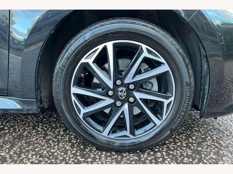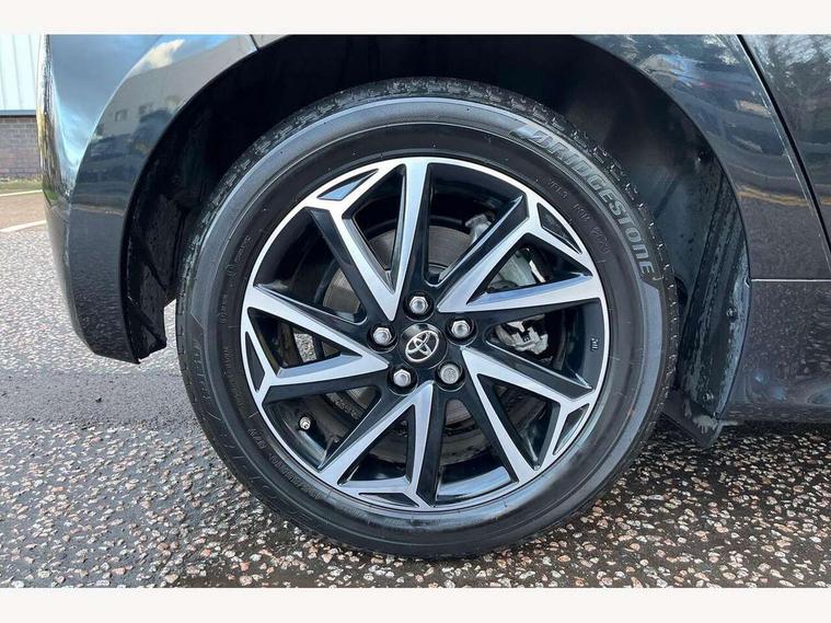 7" Digital Combimeter, Adaptive cruise control, Adjustable speed limit with speed warning, Bluetooth connectivity, Colour binocular inspired displays with digital speedometer, E-call, Electric power steering, Hybrid energy display, Multi information display switches on steering wheel, Reversing camera, Smartphone integration with Apple CarPlay and Android auto, Tailgate, Voice recognition, Vehicle Stability Control (VSC), 4 speakers, 9" Multimedia touch display, Toyota Touch 3 system with DAB radio, USB connection, Acoustic windscreen glass, Auto windscreen wipers, Automatic headlights, Body coloured door mirrors, Electric adjustable heated door mirrors, Follow me home headlights, Front auto power windows with anti jam protection, Full LED rear lights, LED daytime running lights, LED front fog lights, LED front light guide, LED Headlights, LED High mounted stop lamp, LED Indicators, LED rear light guide, Manual headlight levelling, Painted chequered front grille, Rain sensor, Rear auto power windows with anti jam protection, Rear privacy glass, Rear side wing doors, Rear spoiler, Rear wiper, Shark fin antenna, Turning signal integrated indicators in door mirrors, Variable front intermittent wipers, 3 adjustable rear headrests, 3 seat bench in 2nd row, 3 spoke leather steering wheel, 60/40 split folding rear seat, Active headrests, Adjustable boot height, Auto air conditioning, Coat hooks in rear grab handles, Cup holders (2 front & door), Data Communication Module (DCM) connected services, Fabric upholstery, Front armrest, Glovebox, Grey roof lining, Height adjustable driver's seat, Isofix seat fixing, Leather gearshift, Pollen filter, Shopping bag hooks, Single front passenger seat, Tilt/telescopic steering column, 3 point seatbelts on all rear seats, ABS+EBD+Brake assist, Electronic parking brake, Emergency brake light system (EBS), Front passenger airbag on/off switch, Front seatbelt reminder, Hill start assist control (HAC), Rear child proof door locks, Rear seat belt reminder, Supplemental Restraint System (SRS) 8 airbags: Driver & passenger's airbags, dual side curtain airbags, side impact airbags, front centre airbag, Toyota Safety Sense 3 with over the air updates, Tyre pressure warning system, 2x Master key, Alarm/immobiliser, Remote powered central double locking doors, Soft touch instrument panel, Space saver spare wheel,
