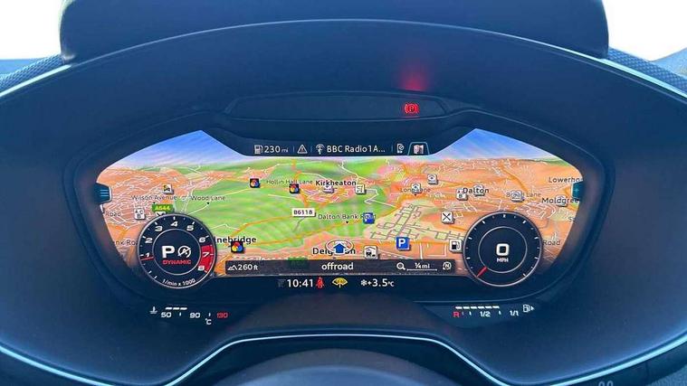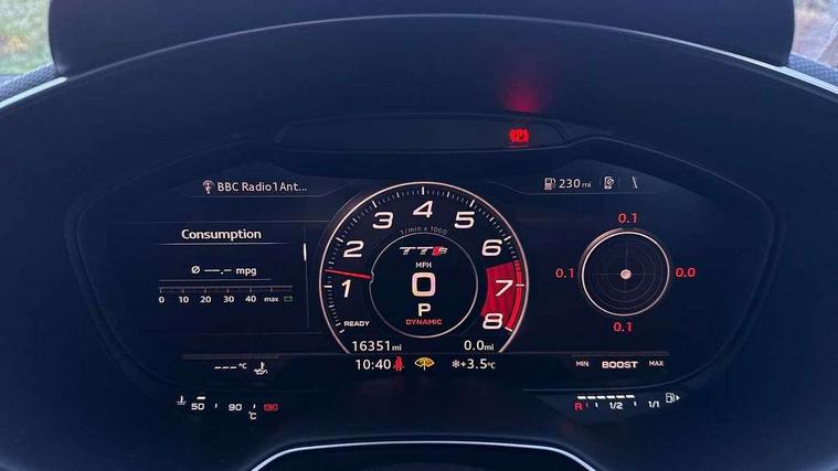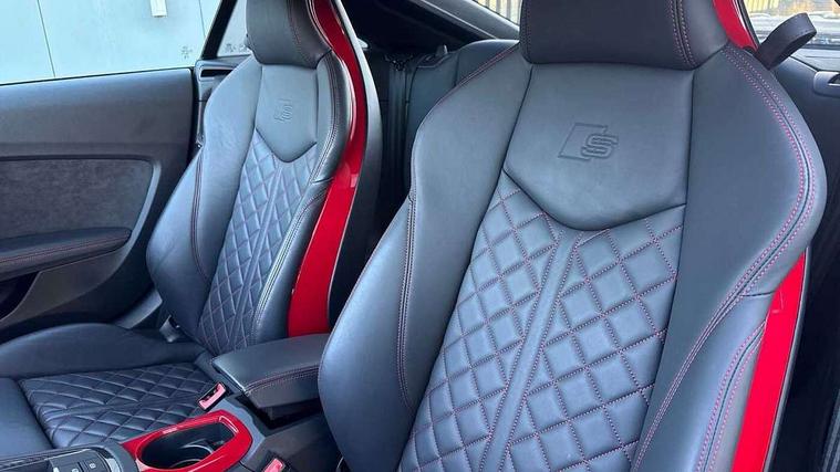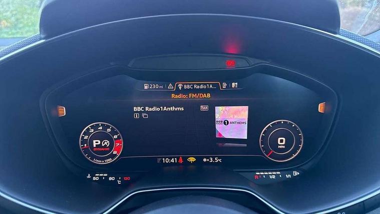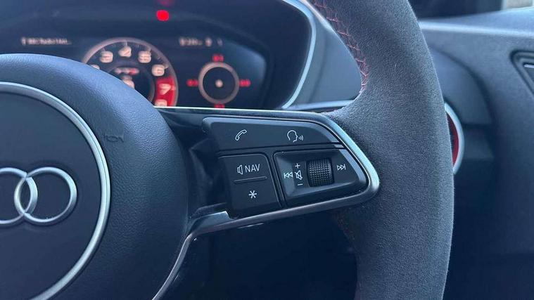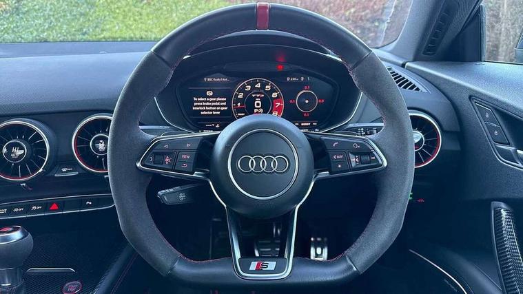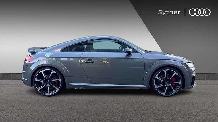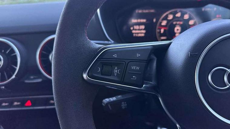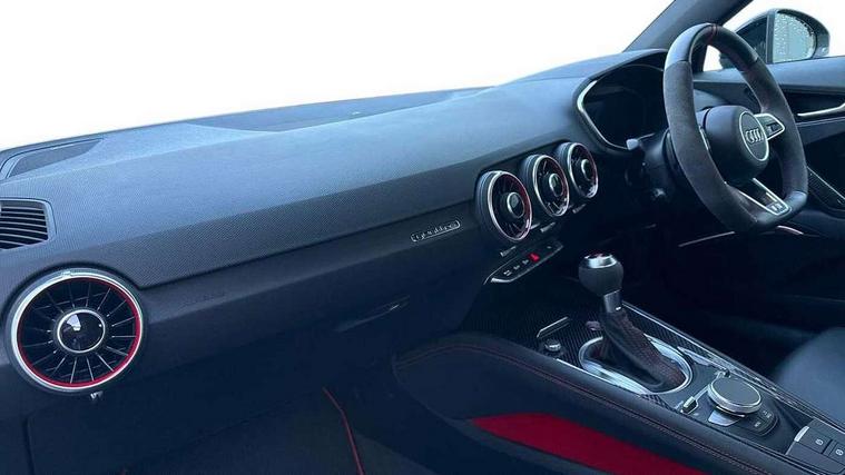 Audi drive select with 4 Pre configured modes, Audi Phone Box with wireless charging - Qi enabled compatible phone and additional bluetooth interface, Audi smartphone interface, Audi virtual cockpit - 12.3" high-resolution LCD display with fully customisable instrument cluster, Cruise control + speed limiter, Emergency call service, Progressive power assisted steering, Service interval indicator, Start/Stop system with energy recuperation, TP memo, Audi magnetic ride, TTS suspension, AM/FM radio, Bluetooth audio streaming, DAB Digital radio, Aluminium door mirror housings, Audi Beam uses LEDs to project the Audi Sport logo, Audi rings decals, Auto dimming rear view mirror, Auto headlight range control, Dark privacy glass from B-pillar backwards, Electric folding door mirrors, Electric front windows, Electrically adjustable and heated door mirrors with integrated LED side indicators, Heat insulating glass in windshield, Heat reflecting windows, LED 3rd brake light, LED daytime running lights, LED headlights with LED rear lights + dynamic rear indicators, Light and rain sensors, Rear boot, 12V socket, 2 rear seats, 3 spoke flat bottomed contour leather multi-function TTS sport steering wheel and TTS badging, 4 way electric lumbar support for driver and front passenger, Alcantara leather with 12o'clock marker and express red contrast stitching in steering wheel, Black headlining, Door sill trims with aluminium inlay and TTS logo, Fine nappa leather upholstery with S embossing + contrasting express red stitching on upholstery, Steering wheel and gear knob gaiter, Front centre armrest, Front passenger seat, Front super sports seats, Heated front seats, Integrated head restraints, ISOFIX child seat mounting for front passenger seat with airbag deactivation, Manual adjustment of seat height, fore/aft position, seat angle, seat depth and backrest angle, Rear head restraints, Rear top tether child seat ISOFIX attachment, Red piped floor mats, Split folding rear seat, Tool kit, Black styling package - TT, Comfort and sound pack - TT, Leather pack - TT, Non smoking pack - TT/TT RS, Plus pack - TT Black Edition/Final Edition Coupe, S design body styling pack - TTS, Technology pack without Audi phone box - TT, 3 point front seat belts, ABS, ASR traction control, Curtain airbags, Driver and front passenger airbag with front passenger airbag deactivation, EDL traction control, Electromechanical parking brake, ESP, First aid kit, Front side airbags, Head airbags, Hill hold assist, Red brake callipers, Seatbelt warning, Tyre pressure loss indicator, Warning triangle, Anti theft alarm, Anti theft wheel bolts, Immobiliser, Remote central locking, Carbon inlays, 20" 7 spoke anthracite black, gloss-turned Audi sport alloy wheels, Tyre repair kit,