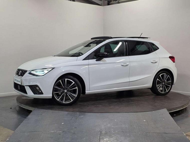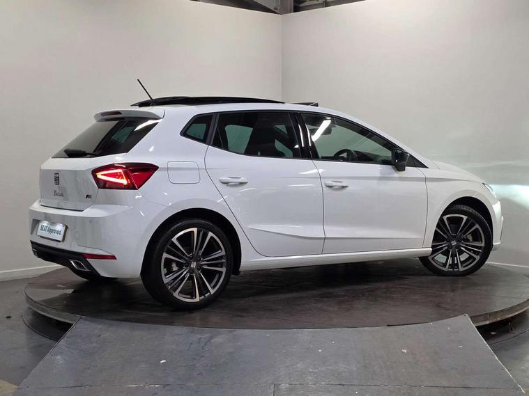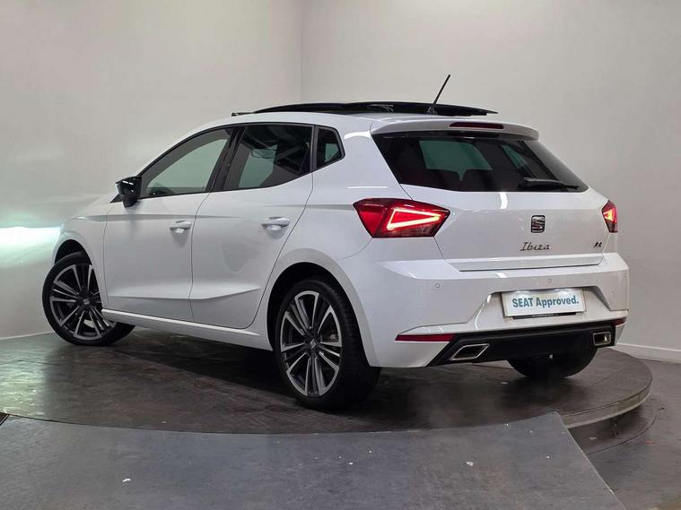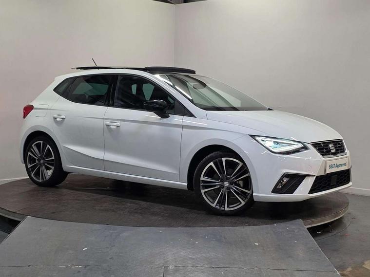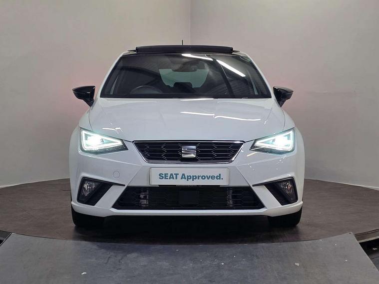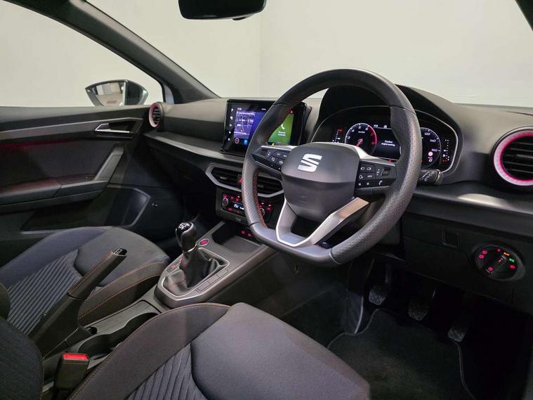 'Lights On' Reminder warning buzzer, 10" Digital cockpit, 9.2" touchscreen navigation system with type C USB socket, Voice control and DAB/AM/FM radio, Auto start and stop system, Bluetooth audio streaming with handsfree system, Digital clock, E-call, Full link smartphone integration with mirror link, wireless apple carplay, Google android auto + USB Type C cable for apple and android devices, Lane assist, Low fuel warning light, Outside temperature gauge, Power Steering, Rear parking sensor, Seat connect plus with safety, service, remote and online, SEAT drive profiles and ECO function, SEAT logo boot release, Speed limiter, Traffic sign recognition, Trip computer, Sports suspension, Auxiliary input socket, Beats audio system with 18" space saver spare wheel and luggage compartment lining, Radio/MP3 player, SD card slot, Steering wheel mounted controls, Anti theft roof antenna, Auto dimming rear view mirror, Automatic rain sensing wipers, Black door mirror caps, Body colour bumpers, Body colour door handles, Brilliant black window surrounds, Dark tinted rear windows, Doorstep with anniversary limited edition, Electric adjustable/heated/folding door mirrors, Electric front windows, Electric headlight adjustment, Electric panoramic sunroof, Electric rear windows, Front/rear fog lights, FULL LED automatic headlights with dynamic headlight range control, coming and leaving home, LED daytime running lights, Lassered lettering Anniversary Edition in B pillar, LED 3rd brake light, LED tail lights, Rear roof spoiler with FR twin exhausts, Rear side wing doors, Rear wiper, 3 seat bench in 2nd row, 60/40 split folding rear seat, Ambient interior lighting, Chrome detailing and black headlining, Dual zone climate control with combination filter, Front courtesy lights, Front cupholders x 2, Front reading lights, Gear shift indicator, Glovebox, Grey interior air vents, Grey interior styling, Height adjustable front and rear headrests (five), Height adjustable front seats, Height/reach adjust steering wheel, Illuminated air vent surrounds, Illuminated boot, Instrument lighting with brightness control, Isofix, Leather multifunction flat bottomed sports steering wheel, Microsuede cloth upholstery, Passenger sunvisor, Single front passenger seat, Sports bucket seats, Storage pockets on back of front seats, Sunvisors with mirror and driver side card holder, Safety and driving pack (S) - Ibiza, 3 point seatbelts on all 3 rear seats, ABS, Active front headrests, Child locks on rear doors, Electronic stability control, Energy recovery system, Front driver and passenger side airbags with curtain airbag and front passenger airbag deactivation, Hill hold control, Multi-Collision braking, Seat belt reminder for front and rear seats, Tiredness recognition system, Tyre pressure monitoring system, KESSY Keyless entry and go, Locking wheel bolts, Perimeter alarm and interior monitoring inc.backup horn, tow away protection and electronic engine immobiliser, Remote central locking + deadlocks, 18" Alloy wheels in cosmo grey,