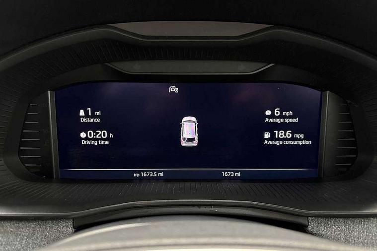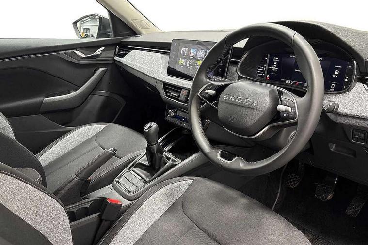 Advanced driver attention and drowsiness monitor, Bluetooth system, E-call, Front assist system, PAS, Rear parking sensors, Rear view camera, Service indicator, Speed limiter, Traffic sign recognition, Virtual cockpit with 10.25" display, Voice control system, Wireless smartlink, 4 USB C ports, 8 Speakers, 9.2" Skoda navigation display, DAB Digital radio, Auto dimming rear view mirror, Automatic headlight control with coming home and leaving home feature, Black roof rails, Body colour bumpers, Body colour door mirrors and handles, Chrome grille surround, Front and rear electric windows, Full LED headlights, Heated rear window, LED brake lights, LED daytime running lights, LED front turning lights, LED high beam, LED low beam, LED third brake light, Rear LED fog light, Rear side wing doors, Rear wiper, Ticket holder inside windscreen, 12V socket in luggage compartment, 3 seat bench in 2nd row, Black hotstamping, Cargo elements, Chrome inner door handles, Driver and passenger sun visors with vanity mirror, Dual zone climate control, Front and rear roof lights, Front centre armrest, Front head restraints, Glove compartment with illumination, Height adjustable driver seat, Height adjustable front passenger seat, Ice scraper, Inner circulation control with pollen filter, ISOFIX on front passenger seat, Isofix preparation for back seats, Krepp recycled decor inserts, Leather gearknob and handbrake lever, Loft cloth upholstery, Manual lumbar support for front seats, Net package and top tether hooks in boot space, Net under rear shelf, Overhead glasses storage compartment, Pocket on the back of both front seats include mobile phone pockets, Rake/reach adjustable steering wheel, Reading lights, Satin black door inserts, Single front passenger seat, Textile floor mats, Third rear headrest, Top tether for front passenger seat, Umbrella in driver's door, 3x3 point rear seatbelts, Airbags - driver and front passenger, Disc brakes, ESP, Extended and predictive pedestrian/cyclist protection, Front passenger airbag deactivation switch, Front side airbags with curtain airbags, Hill hold control, Manual leather parking brake, Manual rear child locks, One tone horn, Seatbelt reminder for driver an co-driver, Traction control, Tyre pressure monitor, Anti-theft alarm system with interior monitoring, backup horn, towing protection and remote central locking with SAFE system, Anti-theft wheel bolts, Electronic engine immobilizer,
