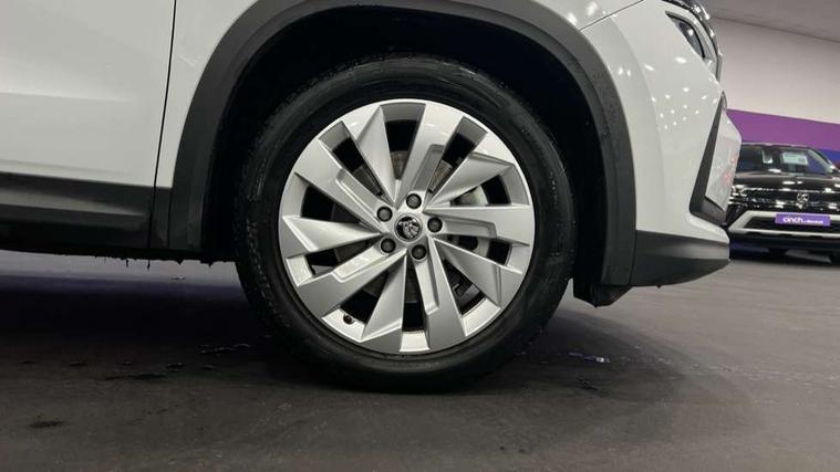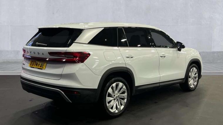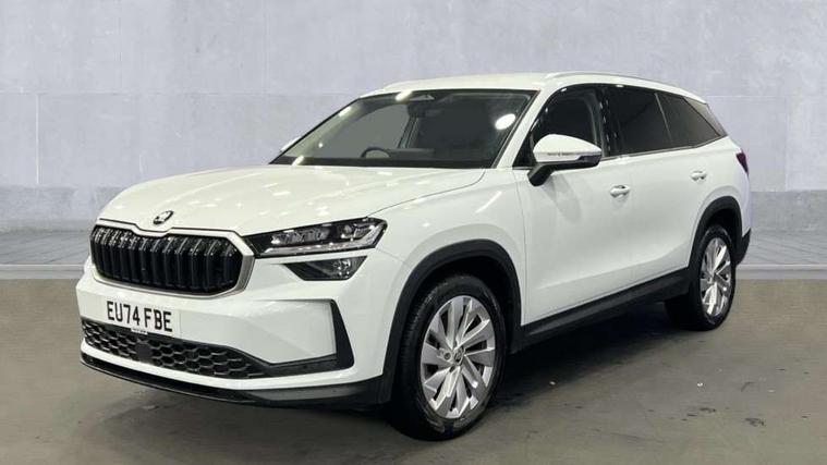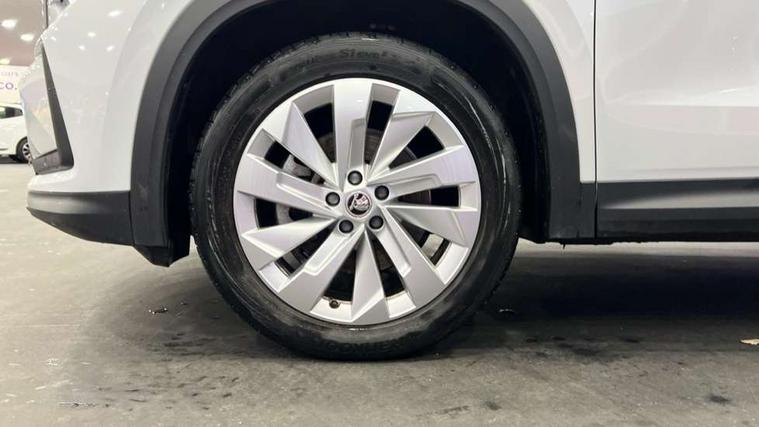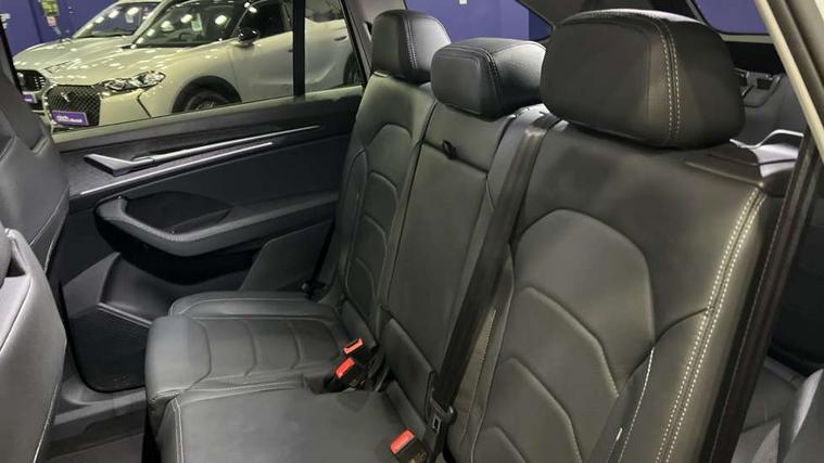 13" satellite navigation touchscreen display, Blind spot detection with door exit warning, Bluetooth system, ChatGPT functionality, Drive mode selector, Driver alert with fatigue sensor, Driver drowsiness alert system, Dry display cleaner, e call+, Front cross traffic assist, Lane assist, PAS, Rear traffic assist, Tailgate unlocking from outside, Traffic sign recognition, USB C Port x 2 in front centre console, Virtual Cockpit - 10.25" digital display, Voice control system, Wireless charging for two smartphones (15W) with cooling function, Wireless SmartLink for Apple CarPlay and Android Auto, Stop/start function, 2x USB-C in the rear, DAB Digital radio, Aero front windscreen wipers with intermittent function, Auto dimming rear view mirror, AWL (all weather lighting) and all weather light with cornering function, Black wheel arch surrounds, Body colour bumpers, Body colour door mirrors and handles, Cornering light and poor weather light, Electric folding /adjustable/separted heated/folding door mirrors, auto dimming with boarding sports and memory function, Electric front and rear windows, Exterior black decorative trims, Heat insulating glass in windshield, Heated rear window, Ice scraper in fuel tank cap, Invisible tailpipe, LED daytime running lights, LED third brake light in rear spoiler, Light assistant with automatic headlight control and coming home feature, Logo projection in door mirrors, Privacy glass, Rear side wing doors, Rear spoiler, Rear window wiper, Red decorative strip between rear LED lights, Safety reflectors on front and rear doors, Unique dark chrome design logo on alloy wheels, Window control switches with black trim, Windscreen wipers with rain sensor, Without engine designation, 1.5l bottle holder points in all door, 12V socket in boot, 1x centre rear reading light, 2 seat bench in 3rd row, 3 configurable smart dials with 32mm coloured display, 3 seat bench in 2nd row, 4 foldable roof handles with rear coat hooks, Ambient interior lighting - Dashboard, front-door stowage compartments, front and rear door panels and footwell lighting, Automatic gear selector on steering wheel, Chrome interior door handles, Driver/front passenger reading lights, Fabric headlining, Fixed bench 40:60:40 split folding backrests, Front and rear floor mats, Front centre armrest with jumbo box storage compartment, cup holder and 12V socket, Front courtesy lights, Height adjustable front headrests, Isofix child seat fittings in outer middle row rear seats and front passenger with top tether, Manually adjustable steering column, Pollen filter, Rear centre armrest with cupholders, Rear seat boot backrest release, Retractable luggage compartment cover, Single front passenger seat, Skoda lettering on steering wheel, Sliding trunk cover, Small Bags on the inner sides of the front backrests, Storage pocket including mobile phone pockets on the backs of the front seats, Sunvisors with illuminated vanity mirrors, Three rear height adjustable headrests, Ticket holder on A Pillar, Tri zone climate control, Umbrella in door panel x1 made from sustainable materials, Upper and lower glovebox with card holder and coin compartment, USB C port by rear view mirror for charging only (15W), Exterior styling pack - Kodiaq, Auto door release and activation of warning lights in the event of an accident, Driver and front passenger airbag with knee airbag and front passenger airbag deactivation, Electric child locks, Electronic parking brake, ESC (incl. ABS+EMD+MSR+ASR+EDL+HBA+DSR+RBS+ESBS+MCB+TSA+XDS), Front assist with braking reaction to vehicles, pedestrians and cyclists, Front disc brakes, Fuel cut off safety device, Height adjustable front 3 point seatbelts + pretensioners, Hill hold control, Junction assist with automatic emergency braking, Rear disc brakes, Safety vest holder in door, Seat belt reminder for all seats, Three point rear seat belts, Two tone horn, Tyre pressure monitor, Anti-theft wheel bolts, Immobiliser, Remote central locking with 2 keys, Breakdown kit,