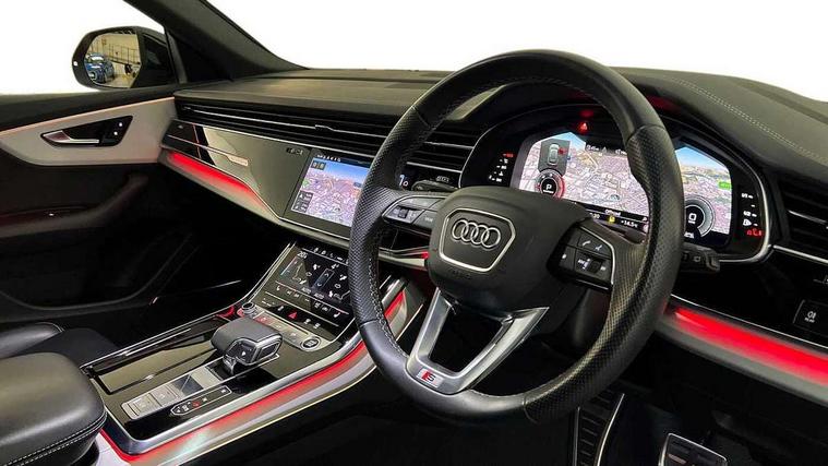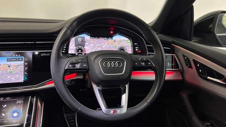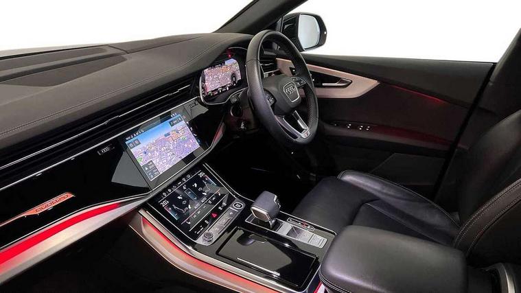 10.1" and 8.6" Dual colour touchscreens, Audi connect safety and service (e-call), Audi connect with Amazon Alexa Integration, Audi drive select, Audi parking system plus includes 360 degree display with front and rear sensors, Audi phone box light with wireless charging, Audi virtual cockpit - 12.3" high resolution LCD display with fully customisable instrument cluster, Automatic start/stop system, Electro-mechanical PAS, Low washer fluid indicator, MMI - Multi Media Interface control system, MMI navigation plus with MMI touch, Natural voice recognition, On board computer, Operating buttons in black, glass look with haptic feedback, Power operated tailgate, Rear view camera, Service interval indicator, Smartphone interface includes wireless Apple carplay/Android Auto, 48V Mild hybrid technology, Adaptive sport air suspension, Diesel particulate filter, Quattro all wheel drive with self locking centre differential, Audi music interface with 2 USB ports with charge and data functions, Audi sound system with 6 channel amplifier, 180 watt amplifying capacity and 10 loudspeakers including subwoofer, Aux-in socket, DAB Digital radio, 3rd brake light, Acoustic windscreen, Aluminium window trim, Audi beam, Audi HD Matrix LED headlights with dynamic front and rear indicators, Auto dimming frameless rear view mirror, Black Audi rings and black badging, Coming/leaving home lighting function, Electric front+rear windows, Electrically folding auto dimming/adjustable/heated door mirrors with memory function, LED side indicators and kerb view function for passenger side, Headlight washers, Heat insulating glass in windshield, LED signature daytime running lights, Platinum grey front spoiler lip and diffuser insert with honeycomb grille in black, Privacy glass - dark tinted rear and rear side windows from B-pillar backwards, Rain and light sensors, Rear side wing doors, Rear wiper, 2 zone automatic climate control, 3 bench rear seats in 2nd row, 4-way lumbar support for front seats, 40:20:40 split folding rear bench seat, Audi phone box light, Black cloth headlining, Comfort front centre armrest, Driver seat memory function, Electrically adjustable front seats, Front head restraints, Front/rear floor mats, Heated front seats, ISOFIX child seat mounting for front passenger seat and 2 outer rear seats with top tether child seat mounting for all 3 rear seats, LED interior ambient lighting, Luggage compartment sill protection in stainless steel, Rear centre armrest with 2 cupholders, Rear headrests, Seat cushion displaceable by 100mm in the ratio 60:40, Single front passenger seat, Stainless steel pedals, Sunvisors with illuminated vanity mirrors, 3 point seatbelts on all seats, Audi pre sense front, Child locks on rear doors, Driver and front passenger, front side and curtain airbags, Electromechanical parking brake, Electronic Stability Control (ESC) including ABS, ASR and EDL, Front passenger airbag deactivation, Hill descent control, Hill hold assist, Predictive pedestrian protection, Seatbelt monitoring, Traction control, Tyre pressure loss indicator, Warning triangle and first aid kit, Anti theft alarm with tow away protection, Anti-theft wheel bolts and wheel loosening detection, Immobiliser, Keyless go with remote central locking, Polished oak trim with grey finish inlay, Tool kit, Tyre repair kit,