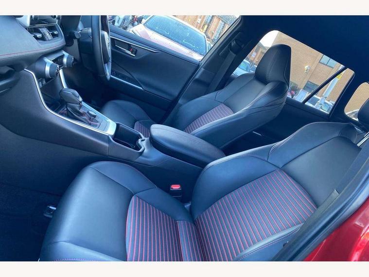 7" Coloured TFT multi informational display, Analog tachometer, Apple car play and Android auto, Blind spot monitoring with rear cross traffic alert, Bluetooth system, Cyclist Detection, Day and night time pedestrian detection, Digital speedometer, Drive mode selector, Driver attention alert system, eCall emergency call system, ECO-driving indicator, Electric power steering, EV audible alert, Front parking sensors, Hybrid system indicator, Intelligent adaptive cruise control, Lane departure alert with steering control, Lane trace assist, Lights on warning, Memory on adjustable speed limiter, MirrorLink, My T Connected services, Power boot opening and closing, Push button start, Rear parking camera, Rear parking sensors, Remote boot door release in cabin, Remote boot door release in key, Road sign assist - RSA, Smartphone integration, Touch 2 Go navigation system, Traffic sign recognition, Trip computer, Voice control system, Wireless Mobile Phone Charger, 6.6 kw fast charger, 7.5m cable with home charging plug, Vehicle Stability Control (VSC), 2x USB sockets in front armrest, 2x USB sockets in rear, 6 speakers, 9" Multimedia display, Auxiliary socket for external MP3 player, DAB audio, Toyota touch 2 multimedia system, USB in front centre console, Anti-jam protection on power windows, Auto high beam, Auto up and down function on all power windows, Automatic headlamp levelling, Automatic headlights, Automatic wipers, Automatically retractable door mirrors, Bi-tone black roof, Black door mirrors, Black door moulding, Black front bumper, Black front grille, Black front under-run, Black rear bumper, Black rear spoiler, Black rear under-run, Black roof rails, Black Shark-fin antenna, Body colour door handles, Chrome window surround, Door mirror puddle lights, Dual exhaust pipes, Electric adjustable door mirrors, Emergency brake-light signal (EBS), Follow me home headlights, Framed electrochromatic rear view mirror, Front fog lights, Front wipers with variable intermittent facility, Heated door mirrors, Honeycomb upper front grille, LED daytime running lights, LED dual beam projector headlights, LED front light guide, LED High mounted stop lamp, LED rear lights, Power front windows, Power rear windows, Privacy glass, Rear side wing doors, Rear windscreen defogger, Rear wiper, Trailer sway control, Turning signal integrated indicators in door mirrors, 1.5L front and rear bottle holder, 12V socket in boot, 12V socket in front, 220v power socket in boot, 2x Rear coat hooks, 3 rear headrests, 3 seat bench in 2nd row, 60/40 split fold rear seat back with toyota easy flat system, Adjustable speed limiter switch on steering wheel, Array microphone, Black roof lining, Blue ambient lighting on front cupholders and open tray on passenger dashboard, Boot light, Clean air filter, Driver and front passenger personal light, Driver and front passenger Whiplash Injury Lessening seats, Driver and passenger seatback pockets, Driver and passenger sunvisors with illuminated vanity mirrors, Dual sided deck board in boot, Dynamic sports seats, Floor mats, Folding rear centre armrest, Front centre armrest, Front cupholders, Front footwell lights, Front headrests, Front passenger seat, Front/rear roof mounted assist grips, Heated driver and front passenger seats, Heated rear seats, Illuminated entry system, Isofix child seat preparation, Leather gearshift, Lockable glovebox, Luggage area tonneau cover, Manual telescopic and tilt 3-spoke nappa leather steering wheel, Manually reclining and sliding front passenger seat, Multimedia switches on steering wheel, Pollen filter, Power height-adjustable sliding reclining and lumbar support for driver seat, Rear console box, Rear door armrests with cupholder, Rear passenger air vents, Rear view display in display audio screen with dynamic guide lines, Reclining rear seats, Remote dual zone automatic air conditioning, Retractable tonneau cover, Satin chrome interior door handles, Silver gear shift surround on centre console, Sunglasses holder, Synthetic leather upholstery, Telephone and voice recognition switches on steering wheel, Under floor storage in luggage area, 3x3 point rear seatbelts, ABS/EBD, Acoustic vehicle alerting system, Adjustable front driver and passenger seat belt extender, Brake assist function, Brake hold function, Child proof door locks, Collision mitigation braking system, Driver/Front Passenger airbags, Driver/front passenger side airbags, Drivers knee airbag, Electronic parking brake, Electronic Stability Programme (ESP), Front and rear curtain airbags, Front and rear seatbelt reminder, Front passenger airbag detector, Hill start assist, Passenger airbag cut-off device, Pedestrian detection, Pre collision system, Seatbelt pretensioners with load limiters, Toyota safety sense, Traction control, Tyre pressure warning, Glass-breaking alarm sensors, Immobiliser, Intrusion alarm, Light - on and Key in reminder, Motion sensor alarm, Remote central locking, Smart entry + Smart start, Speed sensitive auto door locking, Tilt detection sensors, Black centre air vent surround, Black centre console, Soft-touch black upper dashboard with silver insert, Soft-touch texture on lower dashboard, 19" 5 spoke black machined face alloy wheels, Tyre repair kit,