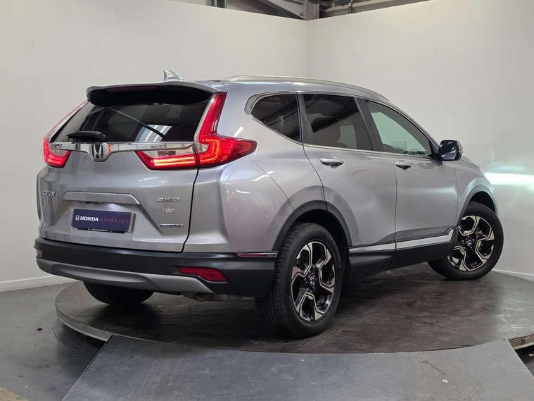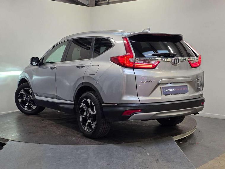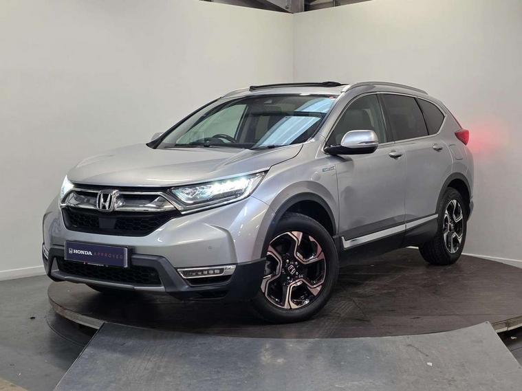 Adaptive cruise control, Agile handling assist, BLIS (Blind Spot Information System) with dual power heated blind spot mirrors, Bluetooth hands free telephone connection, Economy mode, Electric power steering, Emergency stop signalling system, Forward collision warning, Front and rear parking sensors, Hands free tailgate, Head up Display, Honda CONNECT with GARMIN Navigation + 7" touchscreen, DAB radio, Apple CarPlay, Android Auto, Aha app integration and internet browsing, Intelligent multi info display, Lane departure warning system, Lane keep assist system, Low speed following, Rear view camera, Road departure mitigation, Speed limiter, Traffic sign recognition, Vehicle stability assist, 2 USB sockets in rear, 2x USB sockets in front, 8 Speakers, DAB Digital radio, Steering wheel mounted controls, Subwoofer, Aspheric door mirrors, Auto dimming rear view mirror, Automatic headlights with dusk sensor, Body colour bumpers, Body colour door handles, Cornering light, Door mirrors tilt when reversing, Electric front windows/one touch facility, Electric rear windows + one touch facility, Electrically adjustable and heated door mirrors, Electrically retractable door mirrors, Front windscreen de-icer, High beam assist, LED daytime running lights, LED front fog lights, LED Headlights, LED rear lights, Panoramic opening glass sunroof, Rain sensor, Rear privacy glass, Rear wiper, Roof rails, Shark fin roof aerial, Welcome home function, 60/40 split folding rear seat, 8 way electrically adjustable drivers seat + mirror memory, Accessory sockets, Ambient interior lighting, Ambient light in roof, AWD emblem rear, Cargo hooks, Courtesy lights, Driver's electric adjustable lumbar support, Driver/passenger front seatback pockets, Driver/passenger sunvisors with illuminated vanity mirrors, Dual zone automatic climate control, Electric lumbar adjustment on passenger's seat, Footwell ambient lighting, Front centre armrest, Front map lights, Front passenger seat height adjust, Heated front seats, Heated rear seats, Heated steering wheel, Hybrid emblem, Illuminated glovebox, Instrument panel with garnish wood film, Isofix child seat preparation, Leather steering wheel, Leather upholstery, Paddle shift controls, Rear air vents, Rear centre armrest, Rear headrests, Rear reading lights, Silver interior door handles, Sunglasses holder with mirror, Tilt/telescopic adjustable steering wheel, Tonneau cover, Trunk light, 5 x 3 point seatbelts, ABS/EBD, Anti-whiplash front headrests, Brake assist function, Collision mitigation braking system, Deflation detection system, Driver airbag, Electronic parking brake with auto hold, Front and rear curtain airbags, Front side airbags, Hill start assist, Passenger airbag deactivate switch, Honda super locks, Immobiliser, Remote keyless entry, Security alarm, Ultrasonic sensor and tilt sensor, Tyre repair kit,