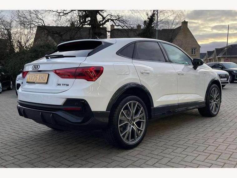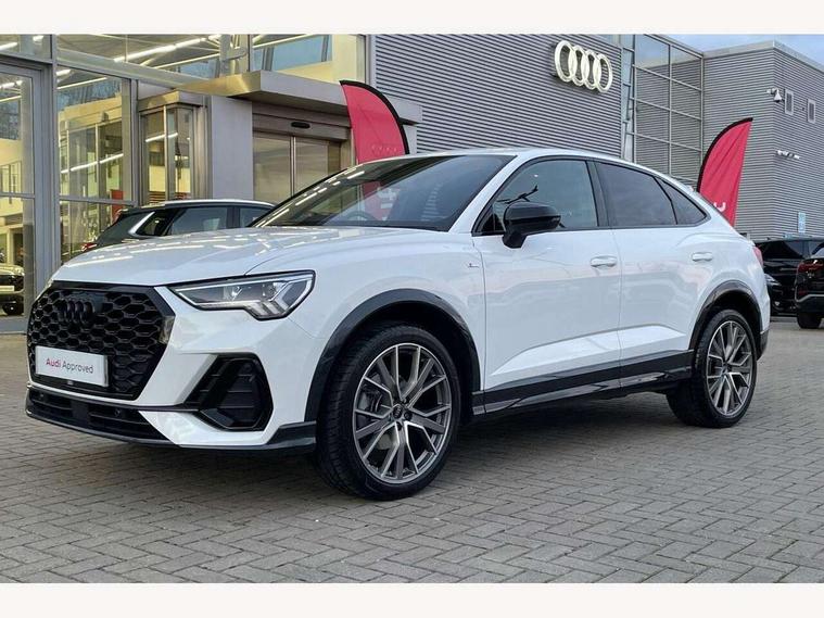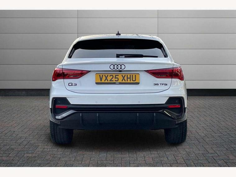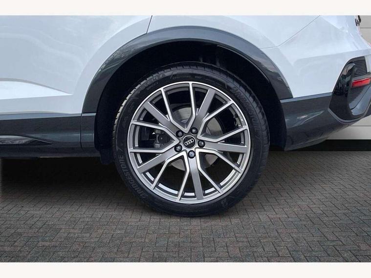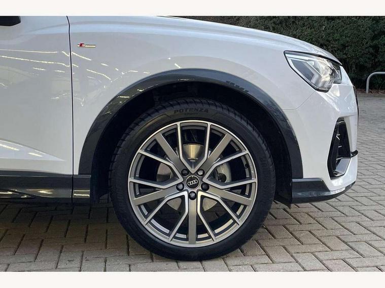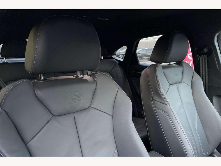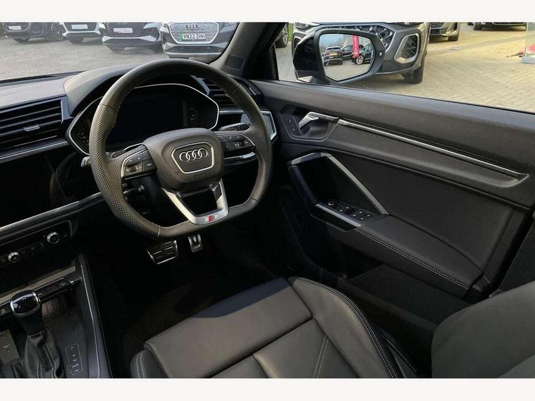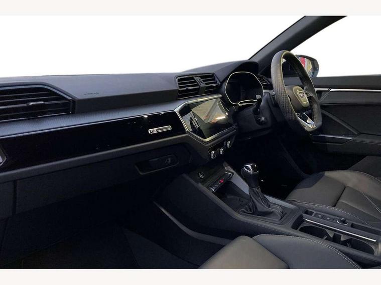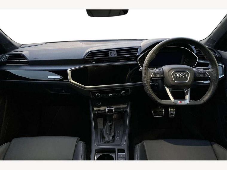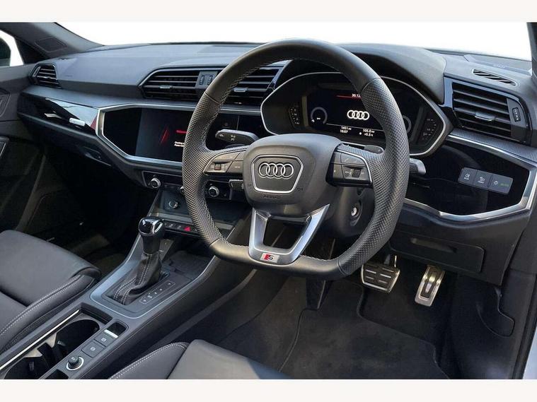Audi connect safety and service, Audi drive select, Audi lane departure warning, Audi Virtual Cockpit - 10.25" display, Bluetooth interface, Camera based traffic sign recognition, Distraction and Fatigue warning, Legal emergency call, MMI Navigation Plus with high resolution 10.1 inch touchscreen colour display, Power operated tailgate, Progressive steering, Service interval indicator, Smartphone interface includes wireless Apple carplay/Android Auto, Start stop system with recuperation, Voice control system with natural language interaction, Sports suspension, 2 USB-C ports with charge and data functions, 6 passive loudspeakers, DAB digital radio module, Acoustic windscreen, Audi Beam uses LEDs to project the Audi logo onto the ground as you exit your Q3, Auto dimming door mirrors, Auto dimming frameless rear view mirror, Electrically folding, adjustable and heated door mirrors with integrated LED side indicators and kerb view function for passenger side, Front and rear electric windows, Front fog lights, Front underbody protection in manhattan grey paint finish, High gloss black finish B and C pillars, Honeycomb design radiator grille in matt anthracite black, LED Dynamic rear indicators, LED headlights with LED daytime running lights, LED rear lights, LED third brake light, Privacy glass dark tinted rear and rear-side windows (from B-pillar backwards), Rain and light sensors, Rear diffuser grille in grained matt black, Rear diffuser strip in matt anthracite black, Rear side wing doors, Rear underbody protection in matt black, Rear wiper, S line front and rear bumpers and side skirts in contrasting Manhattan grey paint finish, Variable front intermittent wipers, 12V socket in rear centre console, 3 seat bench in 2nd row, 40:20:40 folding with manual adjustment for 60:40 forwards/backwards position and backrest angle, Adjustable rear seat bench/backrest with centre armrest and cupholder, Black carpet mats, Black cloth headlining, Dual zone electronic climate control, Electric lumbar support, Front and rear black floor mats with contrast stitching in rock grey, Front and rear headrests, Front centre armrest, Height and reach adjustable steering wheel, Illuminated door sill trims with S logo, ISOFIX child seat mounting for front passenger with airbag deactivation and outer rear seat including top tether attachment point for outer rear seats, Luggage compartment sill protection in stainless steel, Manual front seats with height adjustment, Perforated leather gearknob, Single front passenger seat, Stainless steel pedals, Twin leather upholstery with front sport seats + S embossing, Black styling pack - Q3, Non smoking pack - Q3, 3x3 point rear seatbelts, 6 airbags - Driver, front passenger, curtain and side windows, Audi pre-sense front with pedestrain and cyclist recognition, Electrically operated child locks on rear doors, Electromechanical parking brake, Electronic stabilisation control including ABS, ASR and EDL, Front seatbelt reminder, Hill descent control, Hill hold assist, Pre sense basic, Seatbelt monitoring, Tyre pressure warning, Warning triangle and first aid kit, Anti theft wheel bolts, Immobiliser, Remote central locking, Thatcham approved category 1 anti theft alarm, Aluminium look interior elements, Detail dashboard around MMI touch colour display in glass look, black with surround in aluminium look, Leatherette door armrest, Piano black inlay,