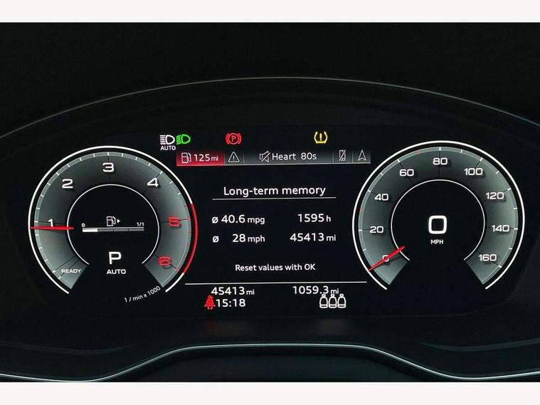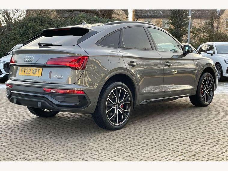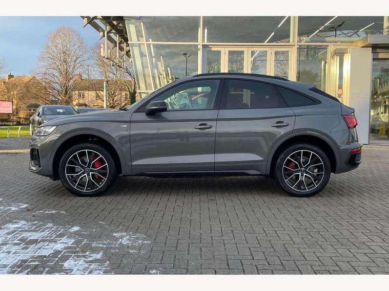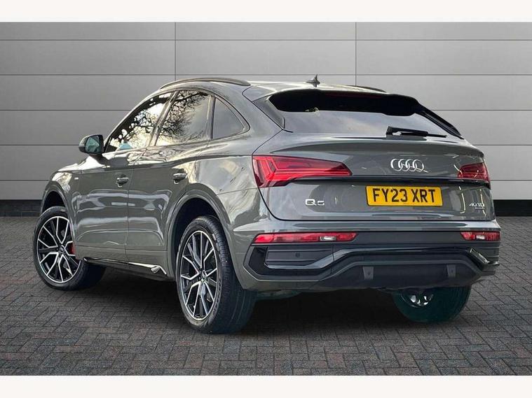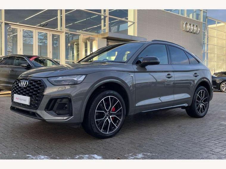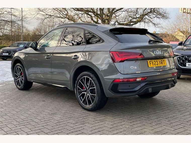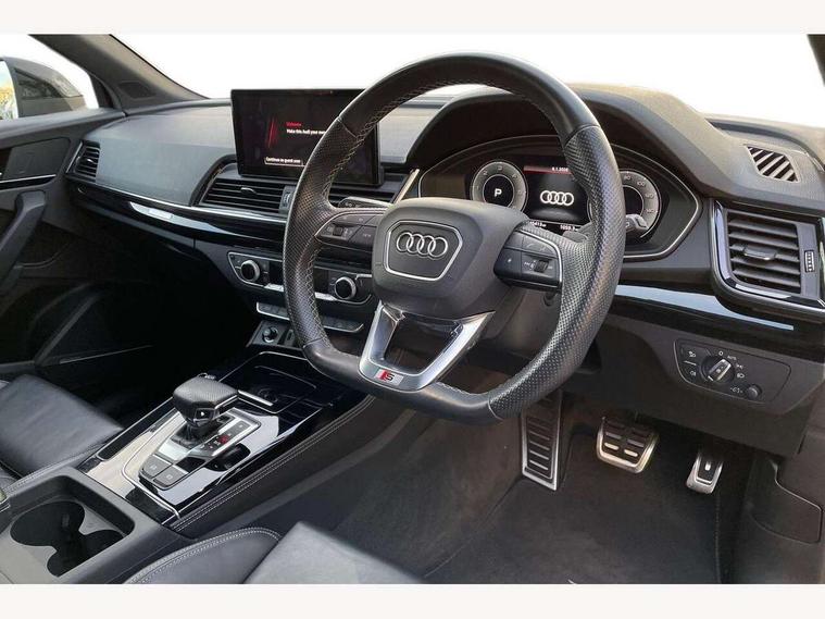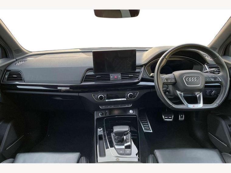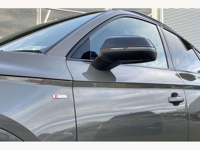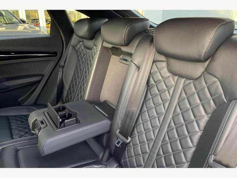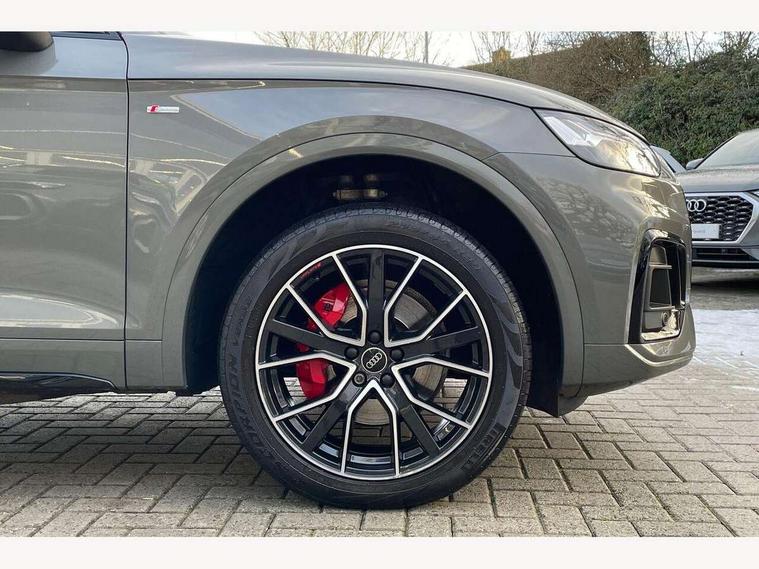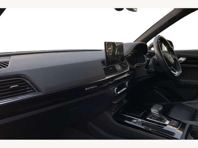 Acoustic front and rear parking sensor, Audi connect safety and service (e-call), Audi connect with Amazon Alexa Integration, Audi drive select, Audi virtual cockpit plus with 12.3" screen and three different layout designs, Audi wireless smartphone interface, Automatic start-stop system with coasting functionality and efficiency programme, Bluetooth interface, Electro - mechanical power assisted steering, MMI navigation plus with 10.1" touch screen, Power tailgate, Reversing camera, Service interval indicator, Voice control system with Audi hotword activation "Hey Audi", Diesel particulate filter, Quattro on demand, S line sports suspension, 2 x USB charging port with aux input socket, 8 loudspeakers, DAB Digital radio, Acoustic windscreen, Audi beam with Audi rings logo, Audi matrix LED headlights with dynamic front and rear indicators, Audi rings at front and rear in black, Audi rings decal on rear doors, Auto dimming door mirrors, Auto dimming frameless rear view mirror, Automatic headlight adjustment, Automatic headlights and windscreen wipers, Black roof rails, Body colour underbody protection, Chrome plated exhaust trims, Daytime running lights, Door sills in Selenite silver, Electric adjustable/heated/folding door mirrors, Front air inlet surrounds in anthracite black, Front and rear electric windows, Headlight washers, High gloss black B pillar trims and triangular rear door trim, High level LED brake light, Rear chrome trim strip below lights, Rear privacy glass and rear side windows, Rear side wing doors, Rear spoiler, Rear wiper, Roof bars, Without model and engine badging at rear, 3 rear headrests, 4 way electric lumbar support for driver and front passenger, 40:20:40 split folding 3 rear bench seat in 2nd row with rear centre armrest, Black cloth headlining, Comfort front centre armrest, Contrast stitching on seats, steering wheel and gear lever gaiter, Deluxe 3 zone electronic climate control, Electrically adjustable front seats, Fine Nappa leather upholstery with diamond pattern contrast stitching + front sport seats with S embossed logo, Front head restraints, Front/rear floor mats, Gear lever in black leather, Heated front seats, Height/reach adjustable steering column, Illuminated door sill trims with S logo, Rear seat bench plus-adjust for forwards/backwards position/backrest angle, cupholders in the armrest, load through hatch and remote backrest release, Removable luggage compartment floor, Single front passenger seat, Stainless steel pedals, Sunvisors with vanity mirrors, Trunk roller cover, Black styling package - Q5 Edition 1, Extended LED Interior multi coloured Lighting Pack - Q5, 3 point seatbelts on all seats, 6 airbags - Driver, front passenger, curtain and side airbags, Electrically operated child locks on rear doors, Electromechanical parking brake, Electronic stabilisation control including ABS, ASR and EDL, First aid kit with warning triangle and vests, Front and rear brake calipers painted in red, Front passenger airbag deactivation, Hill descent control, Hill hold assist, ISOFIX child seat mounting for front passenger seat and ISOFIX child seat mounting with Top Tether for outer rear seats, Multi collision brake assist, Pop-up bonnet for pedestrian protection, Pre sense city, Seat belt force limiter, Seatbelt monitoring, Tyre pressure warning, Anti theft alarm, Anti-theft wheel bolts, Keyless Go access/ignition system, Remote central locking, Air vents inserts and centre console in gloss black, Piano black finish inlay,
