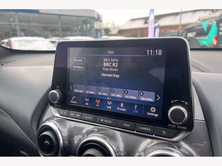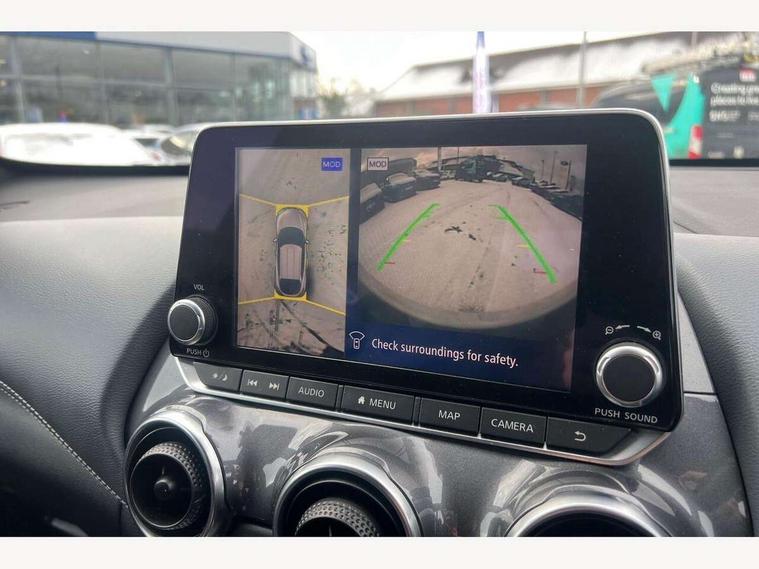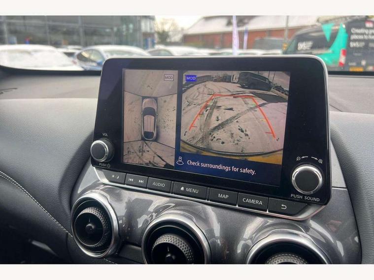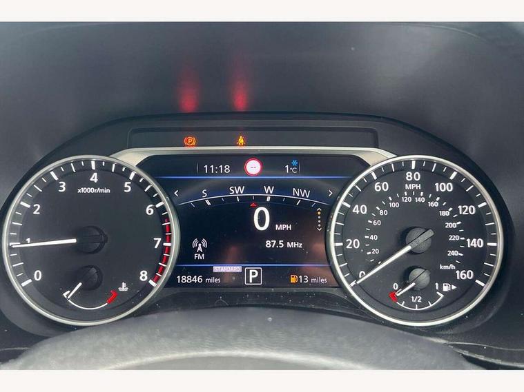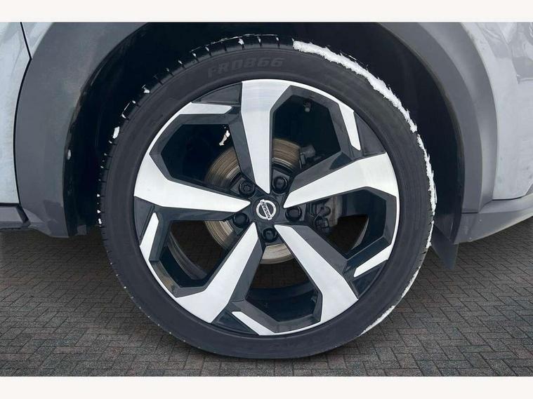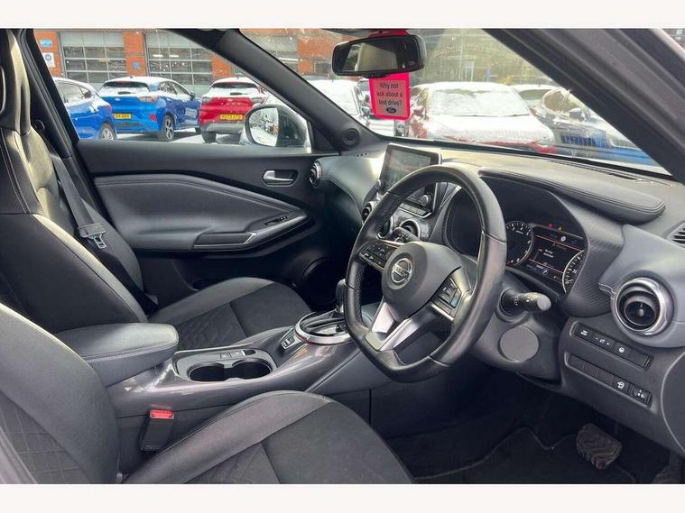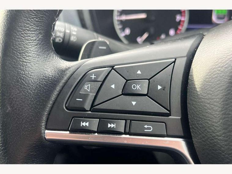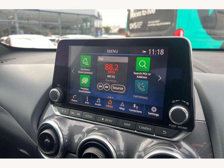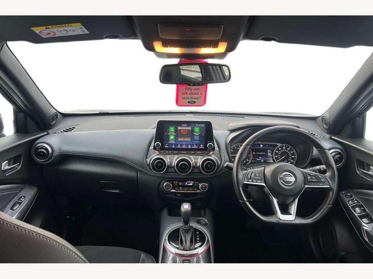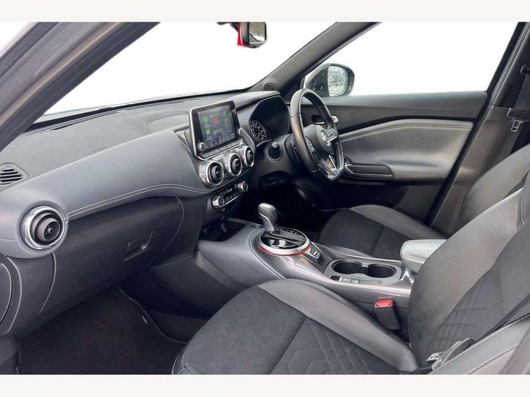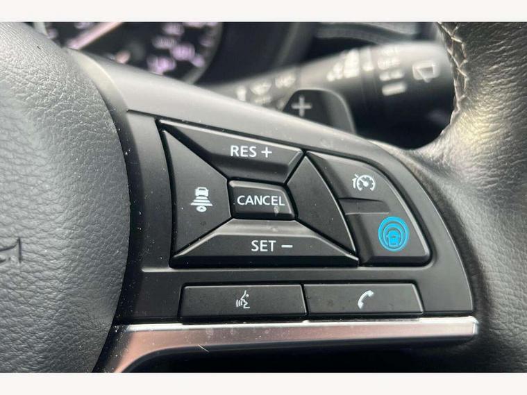 7" full colour TFT screen combimeter, Apple CarPlay and Google Android auto, Drive modes select (Eco, normal and sport), eCall emergency call system, Emergency and breakdown call, Front parking sensor, Idle start/stop system, Intelligent lane intervention, Lane departure warning system, Nissan connect 8" touch screen entertainment system, Nissan connect nav with TomTom traffic, Nissan connect services and Wifi connection, Outside temperature sensor, Power Steering, Rear parking sensor, Traffic sign recognition, Trip computer, Voice recognition, Gasoline particulate filter, Bluetooth system, USB, Aux-in and 12V socket, Bose personal plus audio system with 8 speakers(4 speakers and 2 headrest speaker for driver and passenger seats), Bose personal sound stage control, DAB Digital radio, Rear console USB port, Auto dimming interior rear view mirror, Auto headlights, Automatic hazard signal with emergency stop signal, Body colour bumpers, Body colour door handles, Electrically adjustable door mirrors with integrated indicators, Follow me home headlights, Front and rear electric window with one touch driver window, Heated and auto folding door mirrors, High beam assist, LED daytime running lights, LED front fog lights, LED headlamps, LED rear fog lamp, LED rear lamps, Rain sensor windscreen wipers, Rear privacy glass, Rear side wing doors, Rear wiper, Thermaclear heated windscreen, Three blink turn signal, 3 height adjustable rear headrests, 3 seat bench in 2nd row, 60/40 split folding rear seat, Automatic climate control, Card holder on driver sunvisor, Cloth/Synthetic leather upholstery, Door ambient lighting, Driver and passenger sliding and reclining seats, Driver seat back pocket, Driver side rear coat hanger, Driver/passenger sunvisors and vanity mirrors, Front and rear cabin lighting, Front armrest, Front door pockets with bottle holders, Front head restraints, Front passenger isofix child seat anchorage point, Front/rear passenger grab handles, Gear console ambient circle lighting, Grey synthetic leather kneepad, Heated front seats, Height adjustable driver's seat, Height adjustable passenger seat, Internal chrome door handles, Leather gearshift knob, Leather steering wheel, Luggage board, Luggage space lighting, Monoform sporty seats, Multifunction steering wheel, Passenger seat back pocket, Rear door bottle holders, Single front passenger seat, Steering wheel mounted gearshift paddles, Telescopic steering wheel adjustment, Two cupholders in front centre console, Two rear isofix child seat anchorage points with top tether, Welcome light and console tray ambient lighting, ProPilot pack - Juke, ABS with EBD and brake assist, Active ride control, Active Trace Control, Driver and passenger airbags, Driver and passenger side airbags, Electric handbrake with auto hold function, Electronic Stability Programme (ESP), Front and rear curtain airbags, Height adjustable seatbelts, Hill start assist, Intelligent emergency braking with pedestrian and cyclist recognition, Rear door child safety locks, Seatbelt reminder for driver/front passenger and rear seats, Single tone horn, Three 3 point rear seatbelts, Traction control, Tyre pressure monitoring system, VDC Dynamic Vehicle Control, Ventilated rear brake discs, Alarm, Immobiliser, Intelligent Key with push button starter, Remote central locking,