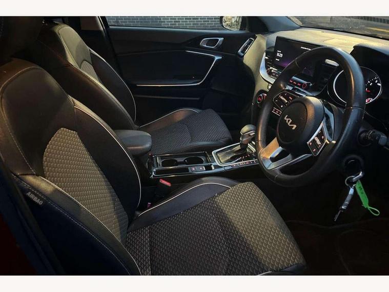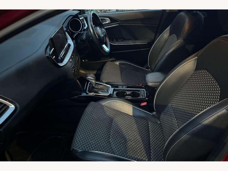 10.25" touchscreen satellite navigation including telematics, 4.2" supervision colour cluster display, Apple car play/Android Auto with voice control, Bluetooth with Voice Recognition & Music Streaming, Drive mode selector, Driver attention warning, Emergency stop signalling system, Kia connected services featuring TomTom live, Lane Following Assist (LFA), Lane keep assist, Motor driven power steering, Outside temperature gauge, Rear parking sensor, Reversing camera with dynamic guide lines, Service interval indicator, Speed limit information function (SLIF), Trip computer, Intelligent Stop and Go, 6 speaker audio system, DAB Radio with MP3, Illuminated USB ports, Steering wheel mounted controls, USB Fast Charger in Front Centre Console, USB port for connection of a media device, All-round Electric Windows with Front Auto Up & Down Function, Auto dimming rear view mirror, Automatic defog system, Automatic headlights, Body colour bumpers, Body colour door mirrors, Body colour exterior door handles, Body coloured rear spoiler, Chrome window surround, Electric adjustable/heated/folding door mirrors with LED Indicators, Front fog lights, Heated rear window with timer, High beam assist, High gloss black radiator grille, LED daytime running lights, LED High-mounted Brake Light, LED rear lights, Privacy glass (rear side windows and rear screen), Projection headlights with cornering lights, Rain sensing front wipers, Rear wash/wipe, Roof rails, Tinted glass, Wide view drivers door mirror, Windscreen Washer Level Warning, 12V socket in luggage compartment, 3 x passenger assist grips, 40:20:40 Split Folding Rear Seats with Remote Folding, All-round height adjustable headrests, Cloth/faux leather bolsters upholstery, Cupholders in centre console, Cupholders in rear armrest, Dash illumination dimmer switch, Driver & Front Passenger Sunvisors with Vanity Mirror Illumination & Ticket Holder, Driver + front passenger electric lumbar support, Driver's seat height adjuster, Dual Height Luggage Area Floor, Dual zone automatic air conditioning, Faux leather door trim, Front and rear door storage, Front map light with sunglasses case, Front Passenger Seat Height Adjuster, Front seat and rear pockets, Gear shift indicator, Headlining in Light grey, Illuminated ignition key hole, Interior door lock/unlock function, ISOFIX Child seat top tethers and anchor fixings, Leather handbrake, Leather steering wheel and gearshift, Luggage area light, Luggage area parcel shelf, Luggage hooks, Rear centre armrest, Rear coat hooks, Satin chrome interior door handles, Tilt/telescopic adjustable steering wheel, ABS with Electronic Brakeforce Distribution (EBD) and Brake Assist System (BAS), All round 3-point seatbelts, Dual front side airbags, Dual horn, Electronic stability control (ESC) and vehicle stability management (VSM), Front passenger airbag deactivation, Height adjustable front seatbelts, Hill start assist control (HAC), Impact sensing auto door unlocking, Rear door child safety locks, Seatbelt reminder warning, Traction control, Twin curtain airbags, Twin front airbags, Tyre pressure monitoring system, Alarm system, Engine Immobiliser & Deadlocks, Locking wheel nuts, Remote central door locking with fold away key, Speed sensitive auto door locking, Black high gloss front console tray garnish & door trim, Satin Chrome Fascia Trim, 17" Alloy wheels, Tyre mobility kit,
