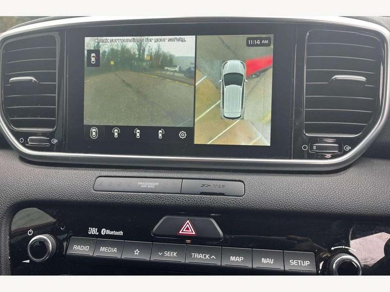 360 degree surround camera, 4.2" supervision colour cluster display, 8" touchscreen satellite navigation with European mapping and traffic messaging channel, Android auto with voice control, Apple car play with voice control, Blind spot collision warning, Bluetooth connectivity with voice control, Cruise control + speed limiter, Digital clock, Driver attention warning, Emergency stop signalling system, Forward collision avoidance assist, Front parking sensor, Kia connected services featuring TomTom live, Lane keep assist, Rear parking sensor, Speed limit information, Speed sensitive power steering, Trip computer, Windscreen washer level indicator, Intelligent Stop and Go, Bluetooth audio streaming, DAB Radio with MP3, JBL Premium sound system with 8 speakers, external amp, subwoofer and front centre speaker, Steering wheel mounted audio controls, USB/iPod/auxiliary input connections, All round electric windows with drivers auto up/down function, Auto dimming rear view mirror, Automatic defog system, Automatic headlights, Black wheel arch body mouldings and side sills with chrome insert, Body colour door handles with chrome inserts, Body colour door mirrors, Chrome front bumper insert, Chrome grille surround, Chrome window surround, Cornering light, Electrically adjustable/heated/folding door mirrors with LED indicators, Front fog lights, High beam assist, High gloss black diamond mesh radiator grille, LED Bi-Function headlights, LED daytime running lights, LED rear lights, Metallic paint, Privacy glass (rear side windows and rear screen), Rain sensing front wipers, Rear spoiler, Rear wiper, Roof rails, Shark fin antenna, Silver painted front and rear skid plates, Speed sensitive front wipers, Tinted glass, Trailer stability assist, Welcome and follow-me home light functionality, Wide view drivers door mirror, Windscreen wiper de-icer, 10 way driver/8 way passenger electrically power adjustable seats, 12V power in front and rear centre console, 3 x passenger assist grips, 60/40 split folding rear seat, Air filter, All-round height adjustable headrests, Centre cabin light, Centre console storage box, Cloth/leather upholstery, Door armrest in leather, Driver and front passenger side sunvisors with illuminated vanity mirrors, Drivers seat power lumbar support, Dual zone automatic air conditioning, Front and rear door storage, Front cabin LED map light with sunglasses case, Front door courtesy reflectors, Front seat and rear pockets, Front/rear centre armrests, Gear shift indicator, Glovebox illumination, Heated front and outer rear seats, Heated steering wheel, Illuminated glovebox, Interior door lock/unlock function, ISOFIX Child seat top tethers and anchor fixings, Leather steering wheel, Leather trimmed gearshift, Light grey headlining, Luggage area light, Luggage area load cover, Luggage net with hooks, Rear centre armrest with cupholder, Rear coat hooks, Rear headrests, Satin chrome interior door handles, Stainless Steel Scuff Plates, Tilt/telescopic adjustable steering wheel, Ventilation ducts to rear compartment, 3x3 point rear seatbelts, Active front headrests, All round 3-point seatbelts, Anti-lock braking system with electronic brakeforce distribution, Dual front side airbags, Electronic parking brake, Electronic stability control with downhill brake control, ESP + traction control, Front passenger airbag cut-off switch, Front seatbelt pretensioners + load limiters, Height adjustable front seatbelts, Hill start assist control (HAC), Impact sensing auto door unlocking, Rear door child safety locks, Twin curtain airbags with roll over sensor, Twin front airbags, Tyre pressure monitoring system, Advanced anti-theft system including immobiliser and alarm, Door deadlocks, Engine Start/Stop Button with Smart Entry System, Locking wheel nuts, Speed sensitive auto door locking, Visible vehicle identification number, High gloss black centre fascia, 17" Alloy wheels, Tyre mobility system,
