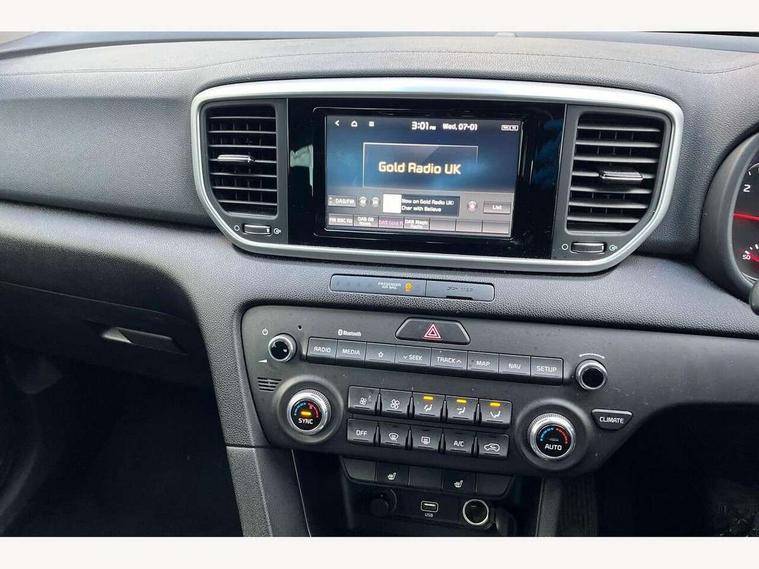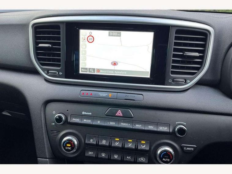 3.5" supervision cluster display, 7" touchscreen satellite navigation with European mapping and traffic messaging channel, Android auto with voice control, Apple car play with voice control, Bluetooth connectivity with voice control, Cruise control + speed limiter, Drive mode selector, Driver attention warning, Emergency stop signalling system, Kia connected services featuring TomTom live, Lane keep assist, Rear parking sensor, Reversing camera, Speed limit information, Speed sensitive power steering, Trip computer, Windscreen washer level indicator, Intelligent Stop and Go, 6 speaker audio system, Bluetooth audio streaming, DAB Radio with MP3, Rear USB port, Steering wheel mounted audio controls, USB/iPod/auxiliary input connections, All round electric windows with drivers auto up/down function, Auto dimming rear view mirror, Automatic headlights, Automatic lighting control, Bi-Function halogen headlights, Black side sill and wheel arch body mouldings, Body colour door handles with chrome inserts, Body colour door mirrors, Chrome front bumper insert, Chrome grille surround, Chrome window surround, Electrically adjustable/heated/folding door mirrors with LED indicators, High beam assist, High gloss black diamond mesh radiator grille, LED daytime running lights, Privacy glass (rear side windows and rear screen), Projection front fog lights, Rain sensing front wipers, Rear spoiler, Rear wiper, Roof rails, Shark fin antenna, Speed sensitive front wipers, Tinted glass, Trailer stability assist, Welcome and follow-me home light functionality, Wide view drivers door mirror, 12V power in front and rear centre console, 3 x passenger assist grips, 60/40 split folding rear seat, Air filter, All-round height adjustable headrests, Centre cabin light, Centre console storage box, Door armrest in leather, Driver and front passenger side sunvisors with illuminated vanity mirrors, Driver's seat manual height adjust, Drivers seat power lumbar support, Dual zone automatic air conditioning, Front and rear door storage, Front cabin LED map light with sunglasses case, Front door courtesy reflectors, Front seat and rear pockets, Front/rear centre armrests, Gear shift indicator, Glovebox illumination, Heated front and outer rear seats, Ignition key lock illumination, Interior door lock/unlock function, ISOFIX Child seat top tethers and anchor fixings, Leather steering wheel, Leather trimmed gearshift, Light grey headlining, Luggage area light, Luggage area load cover, Luggage net hooks, Premium cloth upholstery, Rear centre armrest with cupholder, Rear coat hooks, Satin chrome interior door handles, Tilt/telescopic adjustable steering wheel, Ventilation ducts to rear compartment, Active front headrests, All round 3-point seatbelts, Anti-lock braking system with electronic brakeforce distribution, Dual front side airbags, Electronic parking brake, Electronic stability control with downhill brake control, ESP + traction control, Front passenger airbag cut-off switch, Front seatbelt pretensioners + load limiters, Height adjustable front seatbelts, Hill start assist control (HAC), Impact sensing auto door unlocking, Rear door child safety locks, Twin curtain airbags with roll over sensor, Twin front airbags, Tyre pressure monitoring system, Advanced anti-theft system including immobiliser and alarm, Door deadlocks, Locking wheel nuts, Remote central door locking with fold away key, Speed sensitive auto door locking, Visible vehicle identification number, Metallic finish centre fascia, 17" alloy wheels, Tyre mobility kit,