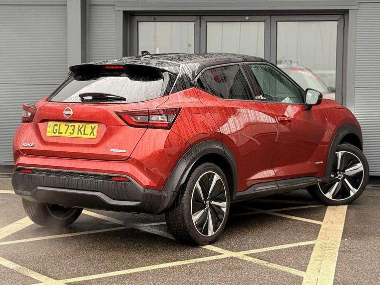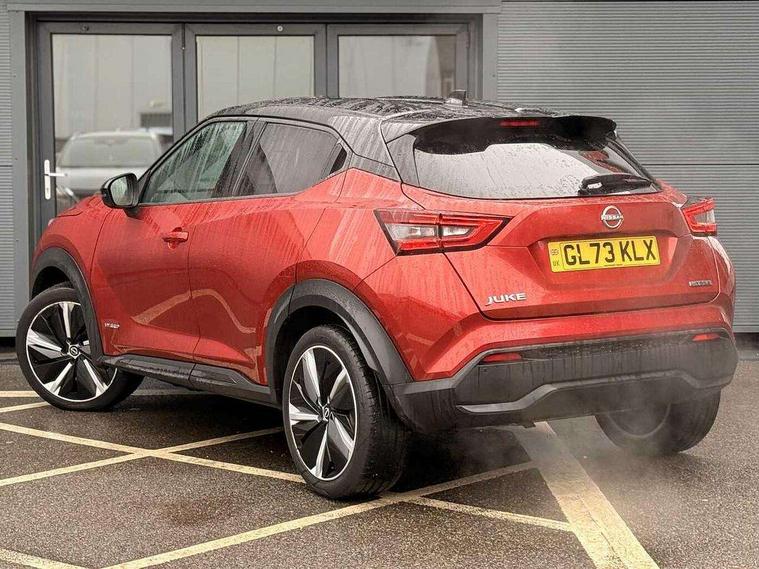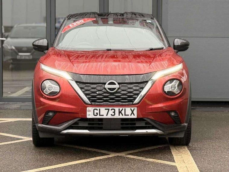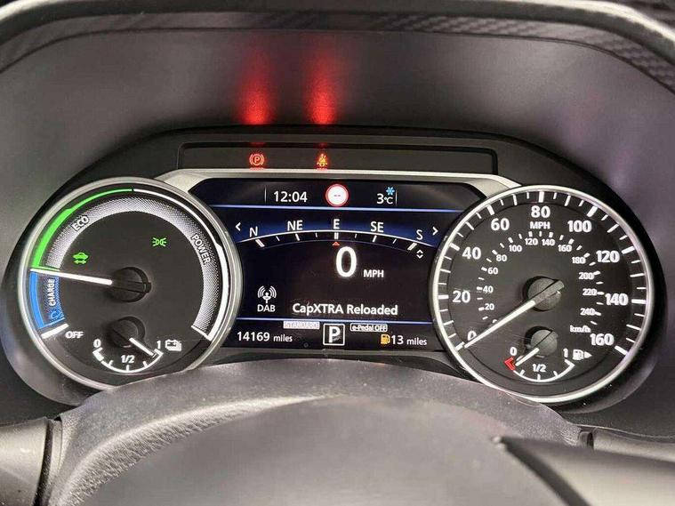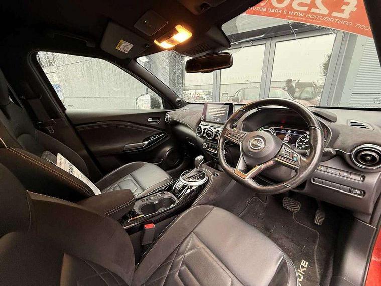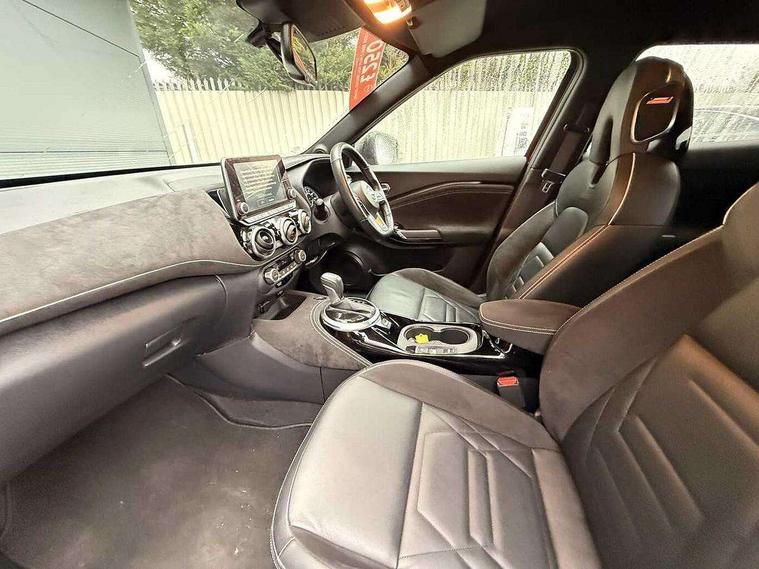 7" full colour TFT screen combimeter, Apple CarPlay and Google Android auto, Drive modes select (Eco, normal and sport), e-Pedal step, Emergency and breakdown call, EV mode selector, Front parking sensor, Intelligent lane intervention, Lane departure warning system, Nissan connect 8" touch screen entertainment system, Nissan connect nav with TomTom traffic, Nissan connect services and Wifi connection, Outside temperature sensor, Power Steering, Rear parking sensor, Traffic sign recognition, Trip computer, Voice recognition, Gasoline particulate filter, 10 Bose speakers 6 speakers and 2 headrest speakers for driver/passenger seats, Bluetooth system, USB, Aux-in and 12V socket, Bose personal sound stage control, DAB Digital radio, Rear console USB port, Auto dimming interior rear view mirror, Auto headlights, Automatic hazard signal with emergency stop signal, Body colour bumpers, Body colour door handles, Electrically adjustable door mirrors with integrated indicators, Follow me home headlights, Front and rear electric window with one touch driver window, Heated and auto folding door mirrors, High beam assist, LED 3rd brake light, LED daytime running lights, LED front fog lights, LED headlamps, LED rear fog lamp, LED rear lamps, Rain sensor windscreen wipers, Rear privacy glass, Rear side wing doors, Rear wiper, Roof spoiler, Satin silver front bumper finisher, Thermaclear heated windscreen, Three blink turn signal, 3 height adjustable rear headrests, 3 seat bench in 2nd row, 60/40 split folding rear seat, Automatic climate control, Card holder on driver sunvisor, Door ambient lighting, Driver and passenger sliding and reclining seats, Driver seat back pocket, Driver side rear coat hanger, Driver/passenger sunvisors and vanity mirrors, Front and rear cabin lights, Front armrest, Front door pockets with bottle holders, Front head restraints, Front passenger isofix child seat anchorage point, Front/rear passenger grab handles, Gear console ambient circle lighting, Grey synthetic leather kneepad, Heated front seats, Height adjustable driver's seat, Height adjustable passenger seat, Internal chrome door handles, Leather gearshift knob, Leather steering wheel, Luggage board, Luggage space lighting, Monoform sporty seats, Multifunction steering wheel, Passenger seat back pocket, Rear door bottle holders, Single front passenger seat, Steering wheel mounted gearshift paddles, Telescopic steering wheel adjustment, Two cupholders in front centre console, Two rear isofix child seat anchorage points with top tether, Welcome light and console tray ambient lighting, ProPilot pack - Juke, ABS with EBD and brake assist, Active ride control, Active Trace Control, Driver and passenger airbags, Driver and passenger side airbags, Electric handbrake with auto hold function, Electronic Stability Programme (ESP), Front and rear curtain airbags, Height adjustable seatbelts, Hill start assist, Intelligent emergency braking with pedestrian and cyclist recognition, Rear door child safety locks, Seatbelt reminder for driver/front passenger and rear seats, Single tone horn, Three 3 point rear seatbelts, Traction control, Tyre pressure monitoring system, VDC Dynamic Vehicle Control, Ventilated rear brake discs, Alarm, Immobiliser, Intelligent key and start push button with walk away lock and approach unlock functions, Remote central locking, 19" Aero alloy wheels,