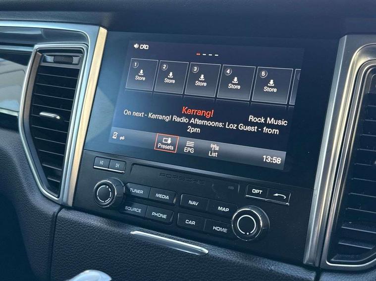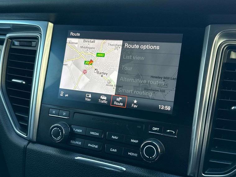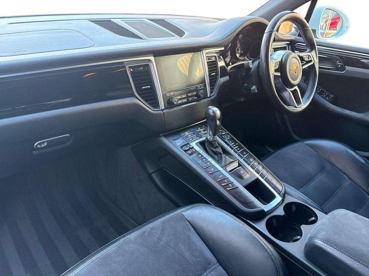 Brake pad wear sensors front and rear, External temperature gauge, Front/rear park distance control, Instrument cluster with high-resolution 4.8-inch TFT colour display, Mobile telephone preparation, Off-road button, On board computer, PCM navigation module, Porsche communications management, Porsche Connect Plus, Power tailgate, Service interval indicator, Sports button in centre console, 75 litre fuel tank, Porsche stability management (PSM), Connect Plus with Apple CarPlay, wireless internet access, Carfinder, Remote Vehicle Status and Remote Services, DAB Digital radio, USB interface in rear, 2 speed front wipers + intermittent wipe, Adaptive brake lights, Automatic headlights, Black side window trim, Colour coded bumpers, Electric front and rear windows + anti trap + one touch, Electric/heated/folding door mirrors, Headlamp cleaning system, Heat insulating laminated glass, Heated rear window with auto timer, Heated washer jets, Intermittent rear wash/wipe, LED daytime running lights, LED fog lights, Painted side air intakes, Rain sensor, Tinted LED tail lights, Towbar preparation, Trailer Stability Programme, Welcome home function, 3 zone climate control, 4 12v Sockets, 4 way adjustable front head restraints, 40:20:40 split folding rear bench seat, Active carbon filter, Air quality sensor, Automatic air recirculate, Clothes hooks on front seat backrests, Folding rear centre armrest, Front and rear cupholders x 2, Front armrest, Front reading lights, Ignition Lock illumination, Illuminated air conditioned glovebox, Illuminated centre console storage, Illumination of luggage compartment, Isofix system on outer rear seats, Pollen filter, Rear headrests, Rear reading lights, Retractable Loadspace Cover, Retractable luggage net, Steering wheel gearshift paddles, Storage bins on all doors, Storage compartments in cargo area side walls, Sport design pack with side skirts - Macan, 3 point automatic seatbelts, 3 point rear seatbelts, ABS+ABD, ASR, Curtain airbags, Electronic parking brake, Front seat belts warning, Front seatbelt pretensioners + load limiters, Front side airbags, Full size driver and passenger airbags, Height adjustable front seatbelts, Hill hold control, Motor Slip Regulation (MSR) - Engine Drag Torque Control, Passenger airbag deactivation system, PTM (Porsche Traction Management), Red painted brake calipers, Two tone horn, Tyre pressure monitoring system, Alarm system, Electronic transponder immobiliser, Remote central locking, Trim strip in silver, Wheel centres with full colour Porsche crest,