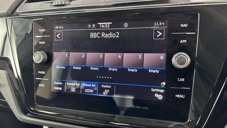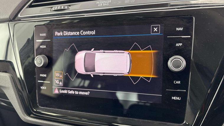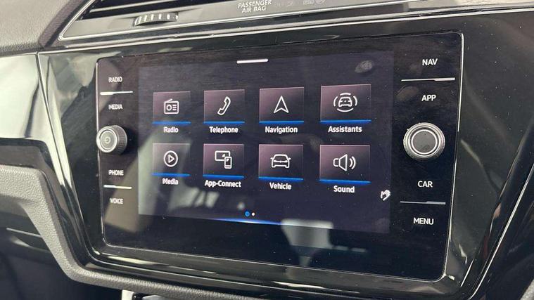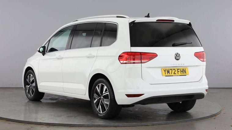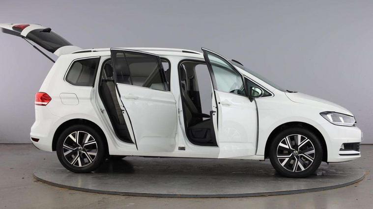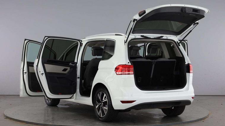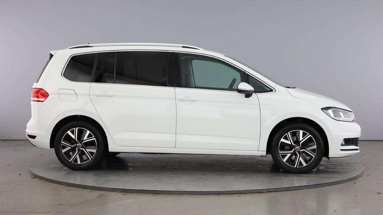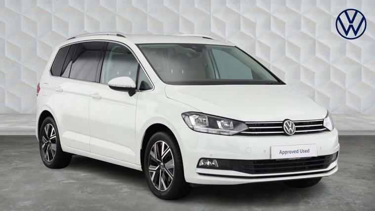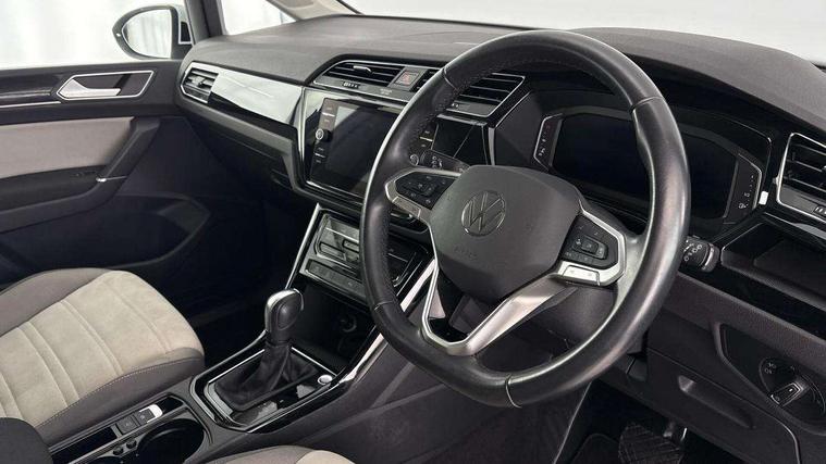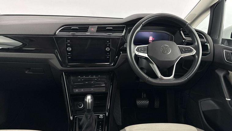 Adaptive cruise control, Audible lights on warning, Bluetooth telephone connectivity, Car information display, Digital cockpit, Discover nav, Euro 2D/3D map view+6.5" colour touchscreen CD + Radio, European map data, Car net guide/inform, Driver alert system, Driver electronic voice amplification function, Driver profile selection, Electronic odometer, Emergency services call system, Extended, crash-active and proactive Pedestrian and cyclist monitoring, External temperature gauge, Lane change system side assist and rear traffic alert, Lane keep assist, Mobile pairing with SMS function, Multifunction colour display, Rev counter with fuel gauge, Speed limiter, Speed sensitive power steering, Stop/start system, Think blue trainer driver tips and journey analysis, Trip and service interval display, Wireless app connect, Petrol Particulate Filter, XDS electronic differential lock, 4x20 watt output, 8 Speakers, Audio Connectivity System, DAB Digital radio, External USB-C data socket with increased charging performance - 2 USB sockets 45W, MP3/WMA compatability, SD card slot, Title and cover art display, USB connection, Aerial integrated into side window, Auto dimming door mirrors, on driver side, surround lighting and front passenger side mirror lowering function, Auto dimming rear view mirror, Automatic coming/leaving home lighting function, Body colour bumpers, Body colour door handles, Body colour door mirrors with integral indicators, Chrome fog light surround, Chrome lower front bumper insert, Chrome trimmed front air intake surrounds, Chrome trimmed radiator grille louvre inserts, Chrome trimmed side windows, Dusk sensor + auto driving lights, Front and rear electric windows, Front fog lights with static cornering function, Fully galvanised body, Gloss black finish B pillar, Green tinted heat insulating glass, High level third brake light, Rain sensor, Rear side wing doors, Rear tinted glass from B-pillar backwards approx 65% tinted, Rear wash/wipe with intermittent wipe setting, Silver roof rails, Tailgate wiper- reverse gear activation, Twin chrome exhaust tailpipes, Volkswagen roundel, Windscreen wipers intermittent wipe, 12V power point for Row 2, 12V socket in luggage compartment, 2 individual fold flat 3rd row seats, 2 three point seatbelts in 3rd row, 2nd row centre armrest, 2nd row centre seat converts into table, 3 single slide/fold/removable 2nd row seats, 3 spoke steering wheel, 3 Zone electronic climate control with automatic air recirculation, 3x3 point seatbelts on 2nd row with height adjust on outer seats, 4 boot load lashing points, 4 way adjustable front head restraints, 5 headrests, Ambient lighting in door trim and foot well, Art velour/Microfibre cloth upholstery, Driver and front passenger under seat drawer, Dust/pollen filters, Foldable front passenger seat backrest, Front + rear carpet mats, Front and rear reading lights, Front centre armrest with storage compartment, Front comfort seats with lumbar support, Front cupholders x 2, Front passenger seat height adjust, Front seat storage pockets, Front seatback folding tables, Height adjustable driver's seat, Height/reach adjust steering wheel, Illuminated glovebox, Illuminated vanity mirrors, Instrument lighting white adjustable panel illumination with red night time illumination, Interior light with delay, Isofix on 2nd row outer seats, Isofix on 3rd row seats, Large storage compartment in roof console, Leatherette on rear of front seats, Low tunnel 2nd row seat, Luggage compartment lighting, Media box in dashboard on passenger side, Multi storage in passenger/luggage areas, Multi-function centre console with storage facilities, Multifunction leather trimmed steering wheel including leather trimmed gear knob with 3.5" screen with multifunction computer, Retractable luggage cover, Split folding rear seat backrests, Storage bins on all doors, Mirror pack - Touran, 3 point height adjustable front seatbelts, Auto hold function, Automatic post collision braking system, Door open warning reflectors, Driver/Front Passenger airbags, Drivers knee airbag, EDL + ASR, Electrically operated child locks on rear doors, Electronic parking brake, Energy recovery system, ESC with ABS, First aid kit, Front and rear (row 2) curtain airbags, Front assist including city emergency braking, Front seat side impact airbags, Front seatbelt pretensioners, Front/rear disc brakes, Hill hold control, Hydraulic Brake Assist (HBA), Loose wheel warning function, Manual passenger airbag deactivation function, Pre crash preventive occupant protection, Proactive passenger protection system with front and side assist, Rear child proof door locks, Seatbelt warning lamp and buzzer, Traction control, Two tone horn, Warning triangle, Alarm with remote central locking and interior protection, Electronic engine immobiliser, Chrome plated instrument surrounds, Piano black decorative inserts, 17" Alexandria alloy wheels with self sealing tyres and anti-theft wheel bolts, Run flat tyres,