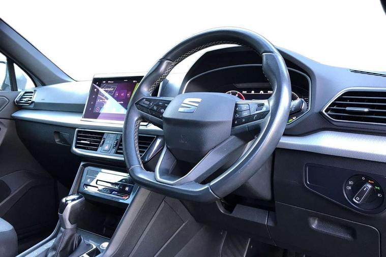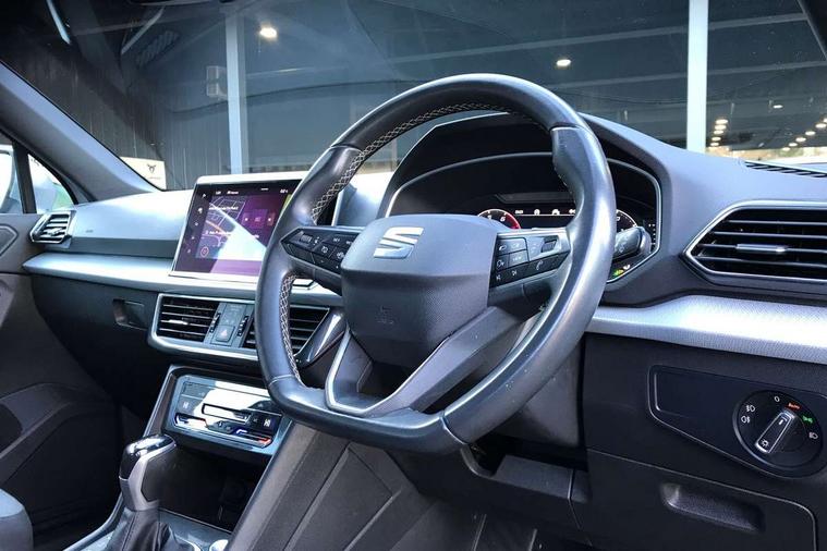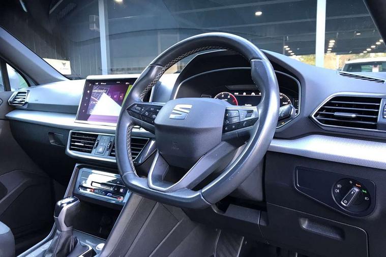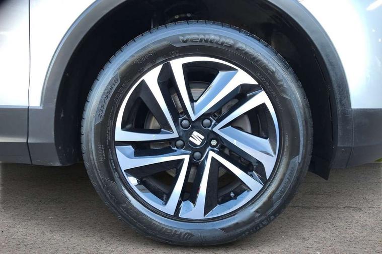 'Lights On' Reminder warning buzzer, 10.25" digital cockpit, Bluetooth audio streaming with handsfree system, Cruise control with speed limiter, Digital clock, Digital cockpit, e-Call (emergency call), Front assist city emergency braking and pedestrian protection, Full Link Wireless Smartphone Integration with Mirror Link, Apple Car Play, Lane assist, Low fuel warning light, Outside temperature gauge, Power assist steering, Rear parking sensor, RPM counter, Seat connect with safety, service, remote and online, SEAT Drive profile-4 different modes, progressive steering, 4Drive versions with off-road/snow, steering response, throttle response, gear shifts mode, Trip computer, Wash water level indicator, Comfort suspension, XDS electronic differential lock, Navigation system with 9.2" colour touchscreen with proximity sensor, 3D Map display, DAB, AM/FM Radio, 3 USB (type C), Aux-in, 8 speakers, SD card, Steering wheel mounted audio/telephone controls, USB (type C) cable for Apple and Android compatibility, Auto dimming rear view mirror, Auto headlights with automatic coming and leaving home function, Automatic headlight adjustment, Black bumpers, Black roof rails, Black window trims, Body colour door mirrors and handles, Chrome front grille frame, Coast to coast lighting, Dark tinted rear windows, Electric front/rear windows, Electrically adjustable and folding door mirrors, Exterior black mouldings, Front halogen fog lights with cornering function, Fuel door linked to central locking, Full LED headlights with LED rear lights, Heated door mirrors, Hidden exhaust pipe, LED daytime running lights, LED licence plate lighting, Rain sensing wipers, Rear fog lights, Rear wash/wipe, Welcome lighting, 3 zone climate control, Ambient spot lighting and front footwell illumination, Black interior roof, Centre armrest in front with air outlet in rear, Comfort front seats, Driver and passenger sunvisor with covered and illuminated mirror, Driver/passenger lumbar adjustment, Easy fold rear seat system - second and third row, Folding table on front seat backrests, Forward and backward adjustable seats 2nd row, Four cargo rings in the boot, Front cupholders, Front seat back storage pockets, Gear shift indicator, Height adjustable driver's seat, Height adjustable front headrests, Height adjustable passenger seat, Illuminated boot, Illuminated glovebox, Instrument lighting with brightness control, ISOFIX points in outer 2nd row seats and front passenger seat with top tether anchorage points, Leather gear knob, Leather wrapped multifunction steering wheel, Luggage compartment floor with split function, Olot cloth upholstery, Rear armrest and easy back seat release mechanism from boot, Rear head restraints, Sliding boot cover, Storage compartment in roof console for sunglasses, Storage draw under front passenger seat, Three 12V sockets, White ambient lighting in front and rear door panels + LED lights in interior door handles, 3x3 point rear seatbelts, ABS, Active front head restraints, Driver/front passenger airbag, Drivers knee airbag, Electronic parking brake with auto hold, Electronic stability control, Front passenger airbag deactivation, Front side airbags, Hill hold control, Seatbelt reminders for all seats, Tiredness recognition system, Traction control, Two curtain airbags, Tyre pressure monitoring system, Alarm, Central locking, Keyless entry and go, Locking wheel bolts, Power locking and remote control with two foldable keys and opening boot selector, Chrome interior detailing - door and dashboard decorative inserts, 18" Performance machined alloy wheels 37/1, Tool kit,