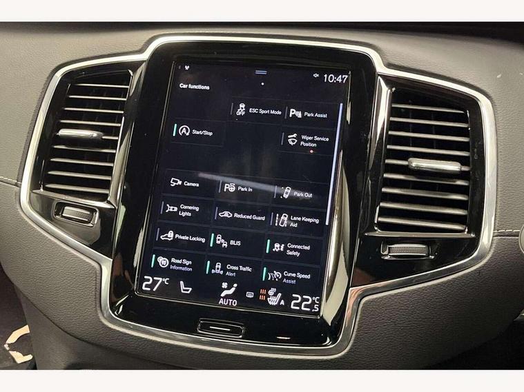 12.3" Active TFT crystal driver's instrument display, 9" centre console portrait touch screen, Adjustable steering wheel force, Bluetooth hands free telephone connection, Drive mode settings, Driver alert control with lane keeping aid, Front and rear park assist, Handsfree power tailgate opening and closing, Intellisafe assist - Adaptive cruise control with pilot assist, Oncoming Lane Mitigation, Sensus navigation with European mapping and traffic information, Service interval indicator, Speed limiter, Speed sensitive steering, Trip computer, Voice activated control for key functions, Volvo on call, Wireless internet connection, 8 speed automatic transmission with start/stop + manual change functions, All wheel drive system, Touring chassis, DAB Radio (Digital Audio Broadcasting), Steering wheel audio controls, Steering wheel remote infotainment controls, Adaptive brake lights with high level LED brake lights, Auto dimming interior + exterior mirrors, Automatic headlight levelling system, Automatic LED Headlights + Active high beam incorporating daytime running lights, Body colour bumpers, Colour coordinated auto folding and heated power door mirrors, Dark tinted windows for rear side windows and cargo area, Dual integrated exhaust pipes with high gloss black surround, Front and rear power windows, Front LED fog lights with cornering function, High gloss black Deco lower front bumper, High gloss black door mirrors, High gloss black mesh front grille with silk metal surround, High gloss black window surround, Home safe and approach lighting, Integrated roof rails in high gloss black, Puddle lights, Rain sensor with automatic windscreen wiper activation, Rear wash/wipe with intermittent wipe setting, Roof antenna, Roof spoiler, Visible VIN plate, 2nd Row centre armrest with storage and cupholders, 3 spoke leather steering wheel and illuminated gear knob with chrome trim, A-pillar parking ticket holder, B Pillar ventilation, Bright metal luggage threshold, Cargo divider with grocery bag holder, Centre console cupholders and storage, Driver's side lower dashboard storage compartment, Front and rear door pocket and front cupholder illumination, Front footwell and side step illumination, Front headrests, Front seat cushion extensions, Heated front seats, Height/reach adjustable steering column, Illuminated front and rear R-Design tread plates, Illuminated luggage compartment, Illuminated tailgate, Illuminated vanity mirrors + ticket holder, Illumination lockable glovebox compartment, Load protection net, Multicolour theatre lighting, Nappa Leather Key Integrated Remote, Outboard armrest with cupholder and storage for third row passengers, Passenger seat electric height adjuster, Passenger seat lumbar support, Power driver seat with multi directional lumbar support and memory for seat and exterior mirrors, Rear footwell and side step illumination, Rear headrests, Semi automatic load cover, Sports floor mats, Sports leather gear knob, Sports pedals, Sports steering wheel with gear shift paddles, Three 2nd row individual folding passenger seats with fore/aft adjustment, Two 3rd row individual folding passenger seats, Underfloor cargo storage, 7 three point seatbelts, City safety includes pedestrian, cyclist and large animal detection and front collision warning with full auto brake, Drivers knee airbag, Dual stage driver/passenger airbags, First aid kit, Front and rear curtain airbags, Front seat side impact airbags, Front seats SIPS airbags, Hill descent control, Hill start assist, IC (Inflatable Curtains) - Full Length, Passenger airbag cut-off switch, Power parking brake with auto hold function, Run off Road Mitigation, Run off Road Protection, Seatbelt reminder and pretensioners for all seats, SIPS (Side Impact Protection System), Slippery road and hazard light alert, Stability and Traction Control with Spin control, Engine Drag Control and Corner Traction Control, Tyre pressure monitoring system, Vehicle deceleration control with Anti-lock Brake System, Electronic Brake Distribution and Emergency Brake Assist, Warning triangle, WHIPS whiplash protection system - front, Anti-theft alarm including immobiliser/volume sensor + level sensor, Key integrated remote control central locking + fuel flap with deadlocking system and auto open/close power windows, Keyless drive (includes keyless entry and keyless start) with remote tag, Locking wheel nuts, Private locking for glovebox and tailgate, Tailored Instrument Panel and Door Tops with Contrast Stitching, Tempa spare wheel and jack,