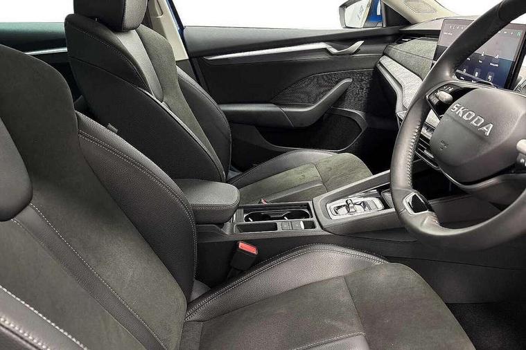 1x USB Typc C port in rear view mirror, 4x USB Type C ports - 2x in front centre console and 2x in rear (45W), Drive mode selection, Driver fatigue sensor, eCall emergency system, Electro-mechanical power steering, Front assist system, Traffic jam assist, Traffic sign recognition, Turn Assist, Virtual Cockpit - 10.25" digital display, Voice control system, Wireless charging (15W) with cooling function, Wireless SmartLink for Apple CarPlay and Android Auto, 13" touchscreen display with navigation, DAB Digital radio, Aero front windscreen wipers with intermittent function, Auto dimming rear view mirror, Body colour bumpers, Body colour door mirrors and handles, Chrome grille surround, Chrome roof rails, Chrome strip in lower front bumper, Chrome window surrounds, Electric front and rear windows, Heated rear windscreen, High level third brake light, Ice scraper in fuel cap, LED daytime running lights, LED Headlights, Logo projection in front doors, Rain and light sensors, Rear fog light on one side, Rear privacy glass, Rear side wing doors, Rear spoiler, Rear window wiper, 12 volt socket in boot, 3 rear headrests, 3 seat bench in 2nd row, 4 foldable roof handles, Electric auxiliary air heater, Front head restraints, Heated front seats, Illuminated glovebox, Interior door handles in dark chrome, Jumbo Box storage, Luggage compartment lighting x2 lights, Mechanical rear seat release from boot, Single front passenger seat, Steering wheel in black leather with black stitching, Storage compartments in left and right of boot, Sun visors with mirrors, Sunglasses storage, Ticket holder, Umbrella in door panel, Unsplit rear bench seat, split folding backrest with centre armrest with cupholder, Comfort package - Octavia Estate, Simply clever package premium with Storage compartment under passenger seat - Octavia, 3x3 point rear seat belts, Alarm with interior monitoring, tilt sensor and back up horn, Curtain airbags and front side airbags, Driver and front passenger airbags, Drivers knee airbag, Electronic parking brake, ESC including ABS, EBV, MSR, ASR, EDS, HBA, DSR, Front central airbag, Hill hold assist, ISOFIX on front passenger seat and outer rear seats, Passenger airbag deactivate switch, Three point seat belts in front and rear, Two tone horn, Tyre pressure monitor, Visual and acoustic seat belt reminder, Warning reflectors in front door, Anti-theft wheel bolts, Keyless start/stop, Remote central locking, Chrome air vent surrounds,