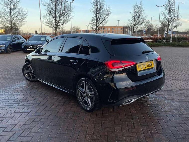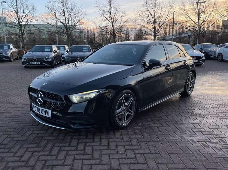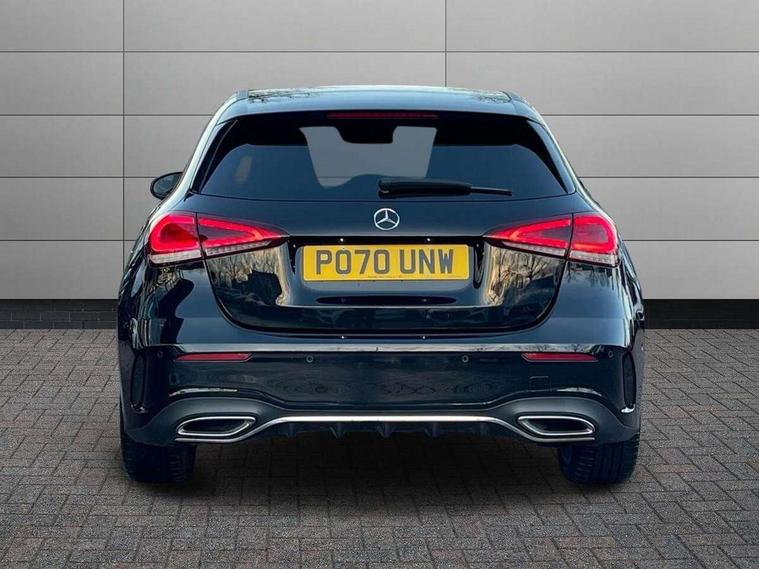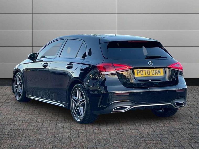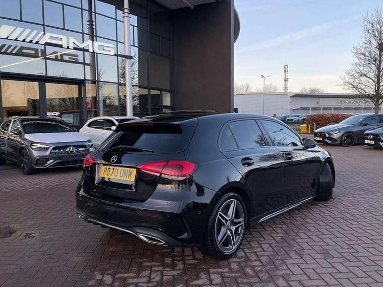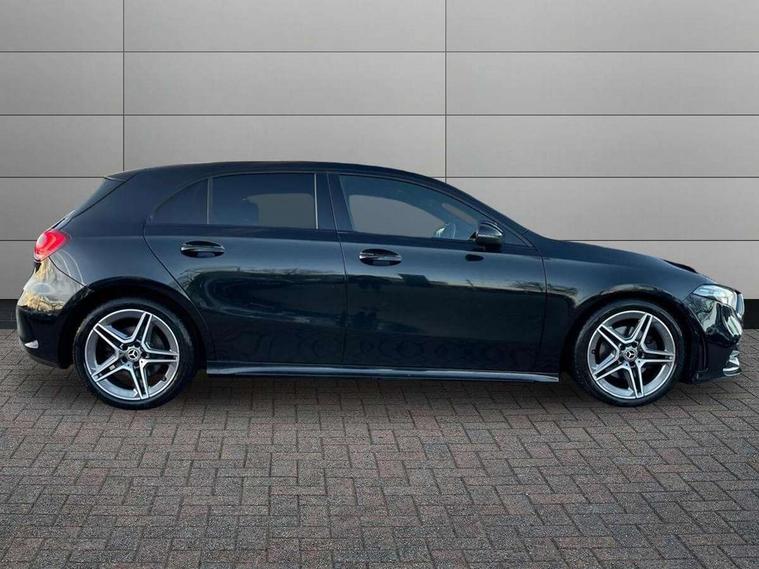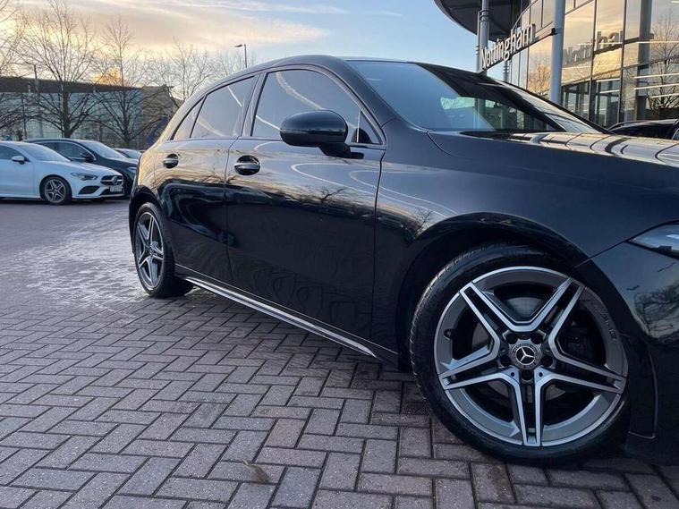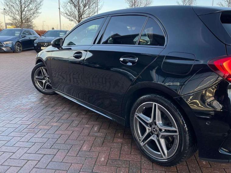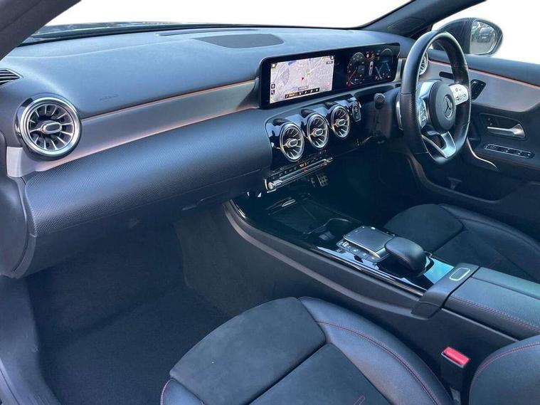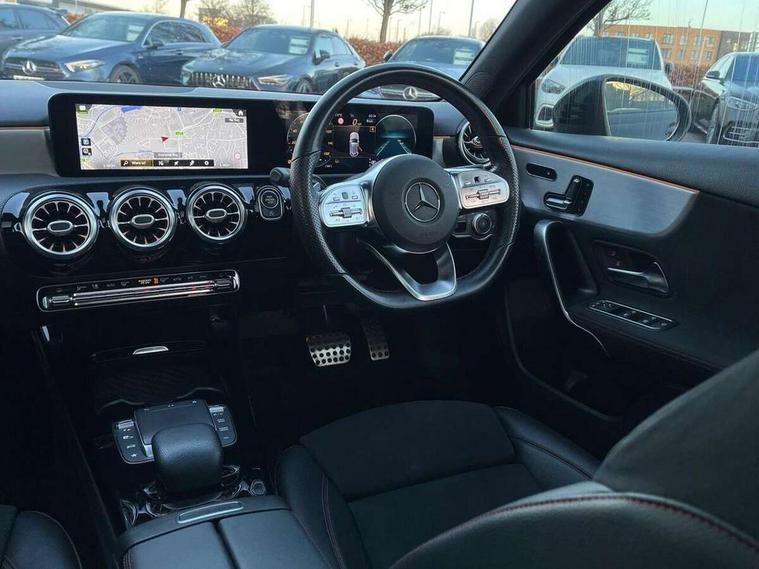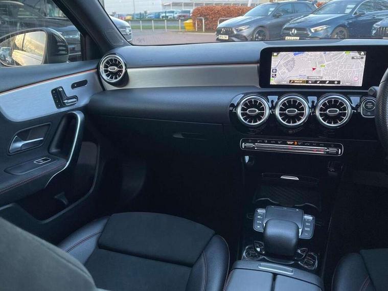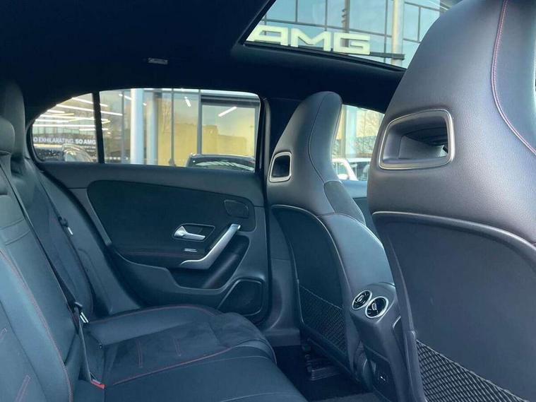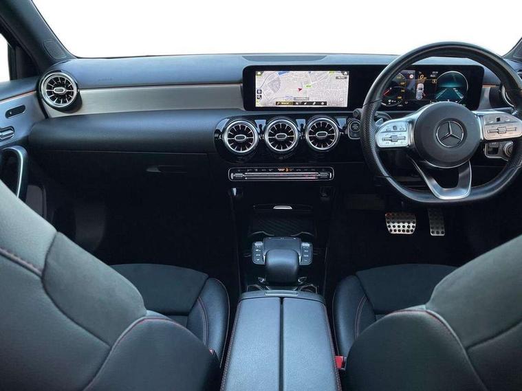 10.25" Digital instrument cluster display screen, 10.25" media display, 180 degree rear view camera with parking guidelines, Active parking assist with visual and audible warning of detected obstacles, Attention assist, Brake pad wear indicator warning light, Car wash mode, Direct steering, Dual bluetooth interfaces, DYNAMIC SELECT with a choice of driving modes (ECO, Comfort, Sport and Individual), ECO start/stop function, Fluid level warning indicator for fuel, oil, coolant and washer fluid, Hard-disk navigation, Hey Mercedes Voice activation, Lamp failure indicator, MBUX augmented reality for navigation, Mercedes me connect including emergency call system, accident recovery, breakdown and maintenance management, Mercedes me remote services, Outside temperature gauge, Owners manual in English, Pre-installation for private car sharing, Preinstallation for Mercedes Benz link, Service indicator (ASSYST), Smartphone integration with Apple CarPlay and Android auto, Traffic sign assist, Trip computer, Ultrasonic sensors positioned in the front and rear bumpers, Wireless charging, Lowered comfort suspension, Rear axle torsion beam, 10 speakers, 2 USB ports (type C) in rear stowage compartment and one in front of center console, DAB Digital radio, MBUX multimedia system with DAB digital radio and touchpad including satellite navigation, Mercedes-Benz advanced sound system - 225W, 4 Electric Front and Rear windows, Adaptive brake lights, AMG bodystyling - Front apron with splitter in chrome, rear apron with chrome trim and chrome visible trim elements in tailpipe, Black weather strip, Body colour bumpers, Body colour door handles, Body colour side skirt, Body coloured door mirrors, Chrome beltline trim, Diamond radiator grille with chrome pins and silver louvre + chrome insert, Electric adjustable and heated door mirrors with integrated LED side indicators, Exhaust system - Twin visible tailpipes in polished stainless steel, Headlamp assist automatic headlamp activation, Heated glass rear windscreen + timer control, LED high performance headlamps with integrated LED daytime running lights, LED tail lamp, LED third brake light, Multibeam LED with adaptive highbeam assist plus, Panoramic sliding sunroof, Privacy glass, Radio aerial, Rain sensing windscreen wipers with two sensitivity settings, Rear fog lights, Rear wiper, Window line trim strip in chrome, 3 Spoke flat bottom leather multi function steering wheel with perforated leather in grip area, 40:20:40 split folding rear seats, Artico man-made leather/Microfibre Dinamica upholstery with red contrast stitching, Auto Mercedes-Benz child seat recognition sensor, Black air vents with surround in silver chrome, Black roof lining, Brushed stainless steel sports pedals with rubber studs, Controller on centre console with chrome surround, Electrically adjustable front memory seats including lumbar support, Floor mats with stitched edging and AMG lettering, Front centre armrest with storage compartment, Front seat backs luggage nets, Front seat cushion length adjustment, Galvanished gear shift paddles on steering wheel, Heated front seats, Height/reach adjustable steering column, Illuminated front door sills with changeable cover, Interior lighting - 64 colour Ambient lighting, Interior mirror with reading lamps in black and frameless, Rear armrest with 2 cupholders, Rear head restraints, Seat occupancy sensor for front passenger seat, Sports seats with integrated headrests, Stowage compartment in centre console with retractable cover, Sunvisors with illuminated vanity mirrors, Touchpad on center console, Twin front cupholders, Two zone thermotronic luxury automatic climate control, Light and sight pack - A Class, Mirror package - A Class, Seat comfort pack - A Class, 3 rear 3 point seatbelts, ABS with Brake Assist, Active bonnet, Adaptive brake assist with hold function and hill start assist, Black seatbelts, Childproof locks manually operated for rear doors and electrically operated for rear power windows, Crash responsive emergency lighting, Driver and passenger head and side airbags, Drivers knee airbag, Dual stage driver/passenger airbags, Electronic parking brake, ESP curve dynamic assist, ESP with ASR, Front and rear seatbelt reminder, Front brake callipers with Mercedes Benz lettering, ISOFIX and top tether child seat fixing points in two outer rear seats, Tyre pressure monitoring system, Warning triangle and first aid kit, Window airbags, Alarm system/interior protection/immobiliser, Keyless entry lock/unlock, Keyless Go, Remote central locking and crash sensor with emergency opening function, Urban guard vehicle protection system with immobiliser and interior protection, Light aluminium with longitudinal grain interior trim, 18" AMG 5 twin spoke light alloy wheels in titanium grey with highsheen finish, Summer tyres, Tirefit sealant kit,